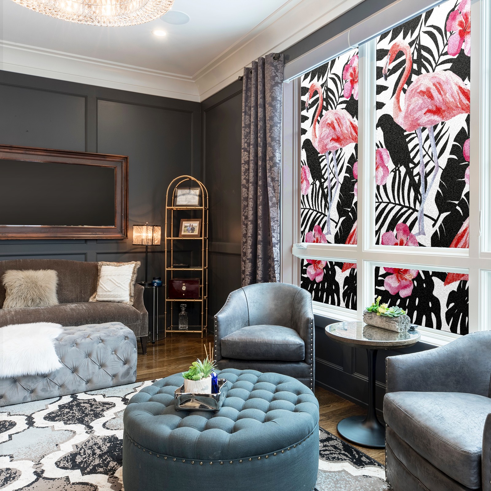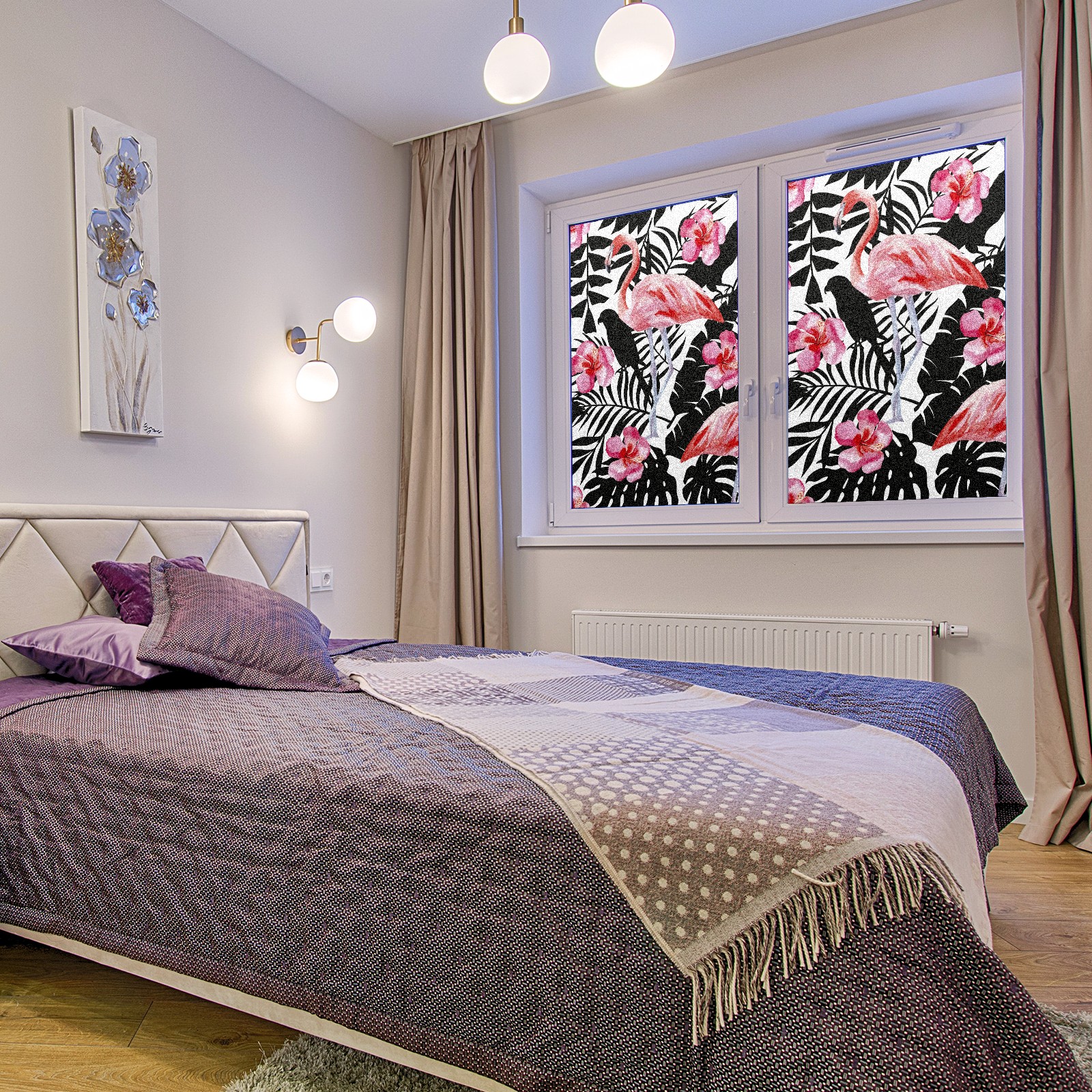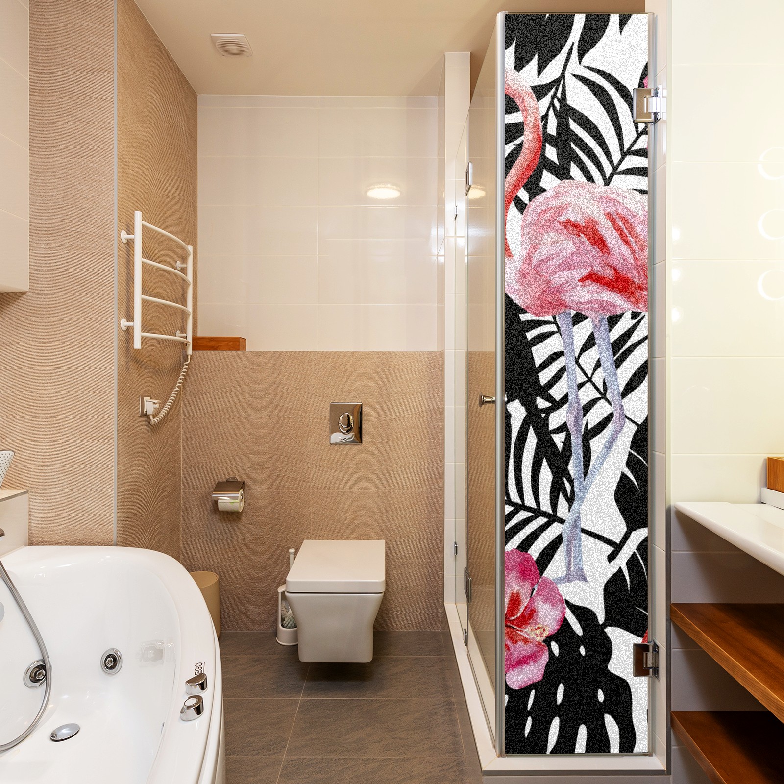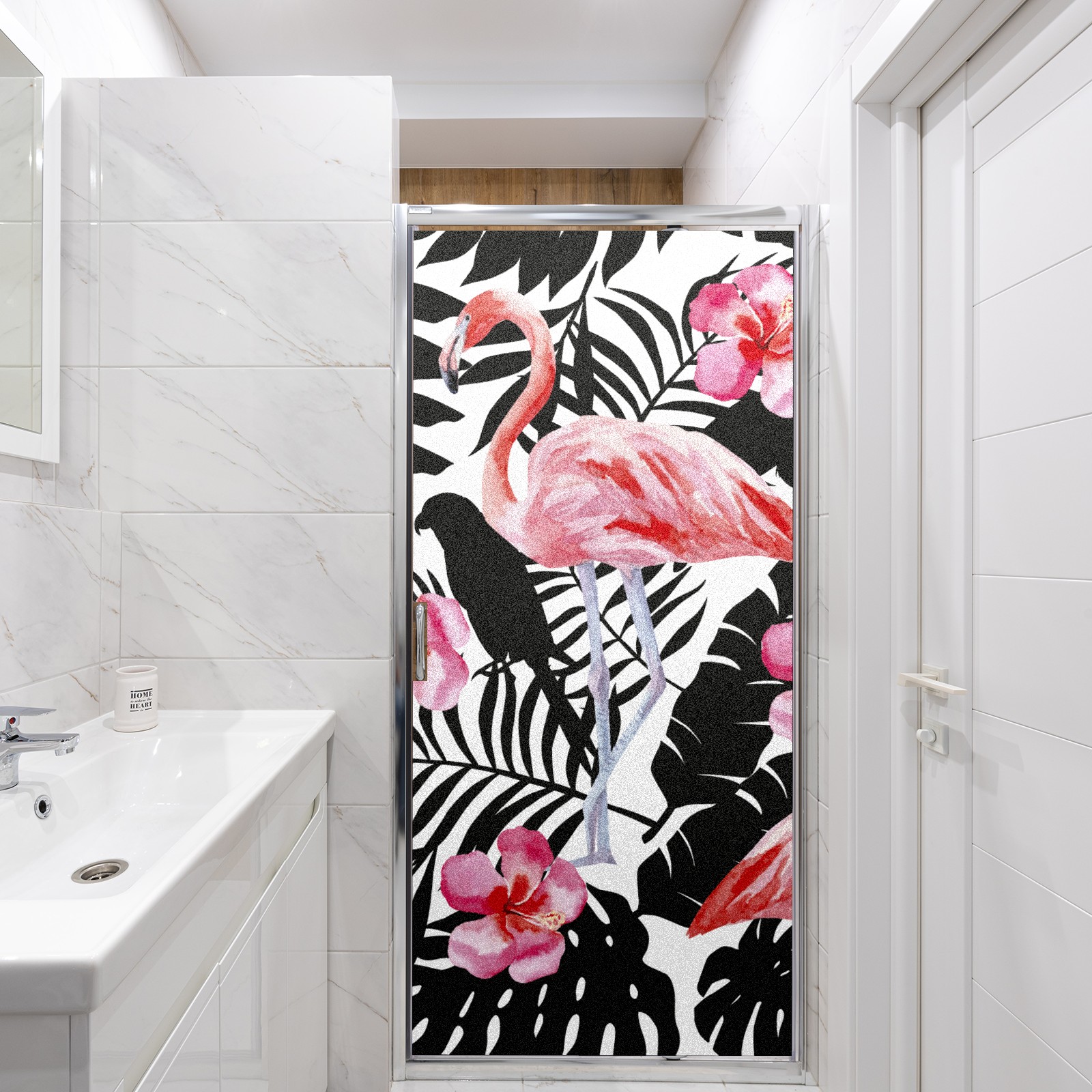 Single sided frosted full screen printed glass sticker soft pink green stripe seamless embroidery pattern privacy decoration Sticker-papier-peint-tropical-dominical-ambiance-sticker-col-mat