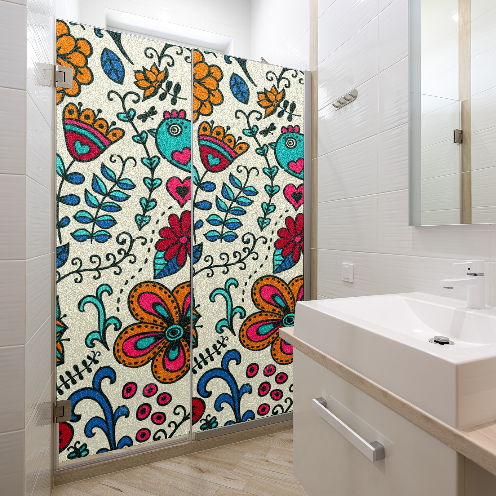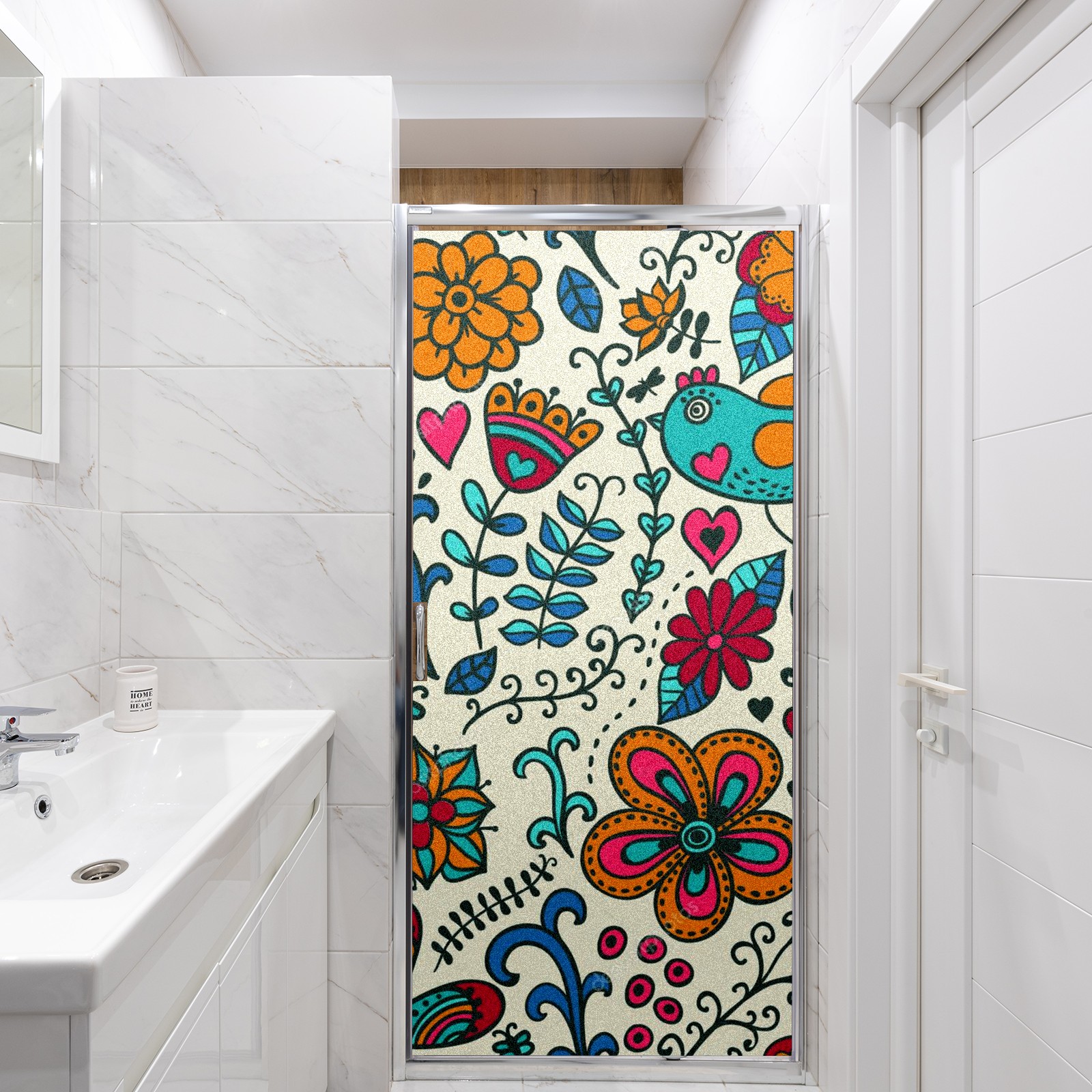 <p>The main body is made of PET single-sided frosted material, with a smooth surface that adheres to the glass. The frosted surface forms a hazy blocking effect, effectively protecting privacy while retaining soft light.The pattern covers the entire surface of the sticker, adopting a seamless design with clear and three-dimensional texture, breaking the traditional sticker's sense of fragmentation.</p>