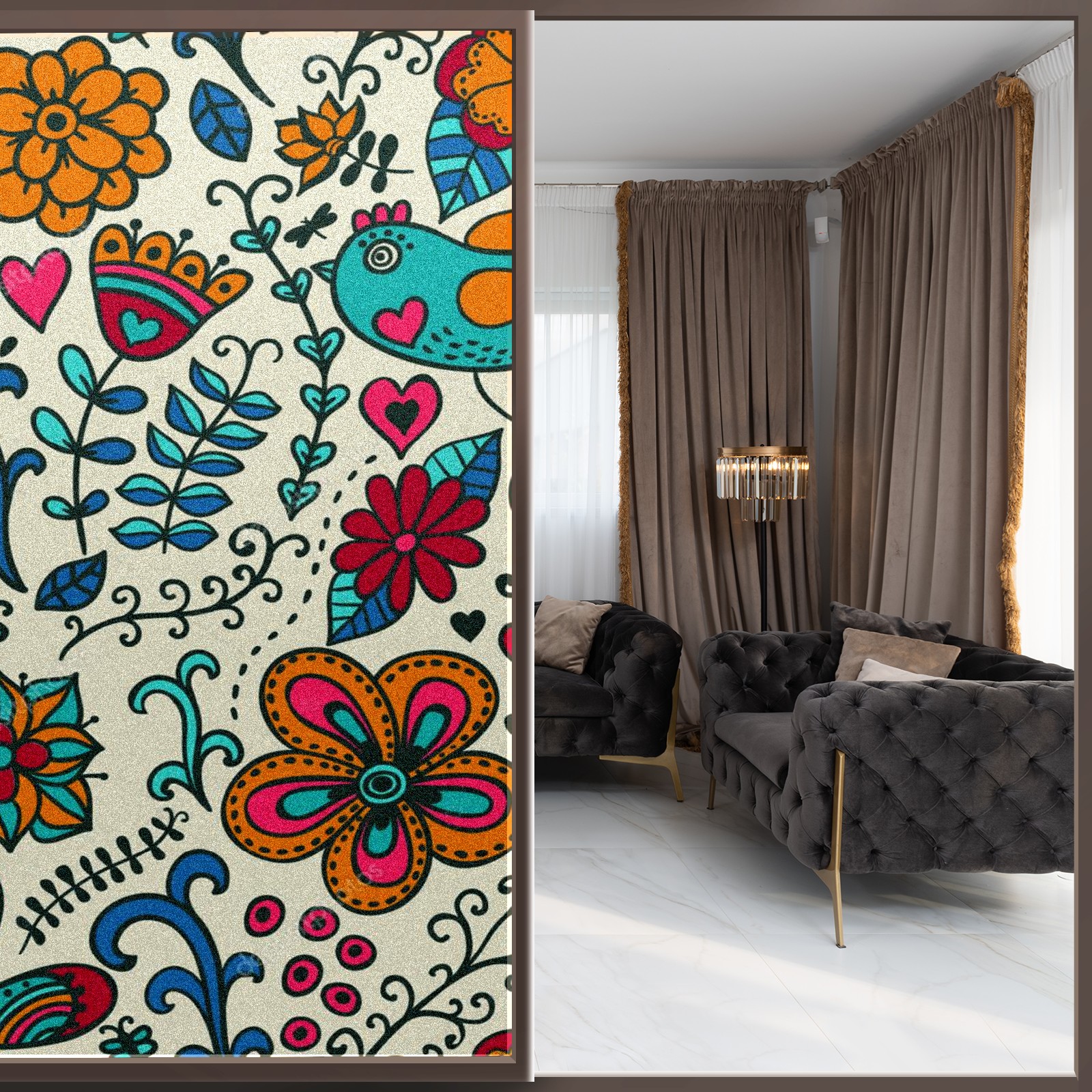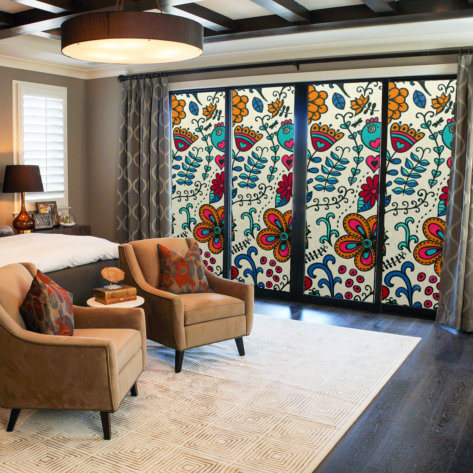 • <p>The main body is made of PET single-sided frosted material, with a smooth surface that adheres to the glass. The frosted surface forms a hazy blocking effect, effectively protecting privacy while retaining soft light.The pattern covers the entire surface of the sticker, adopting a seamless design with clear and three-dimensional texture, breaking the traditional sticker's sense of fragmentation.</p>