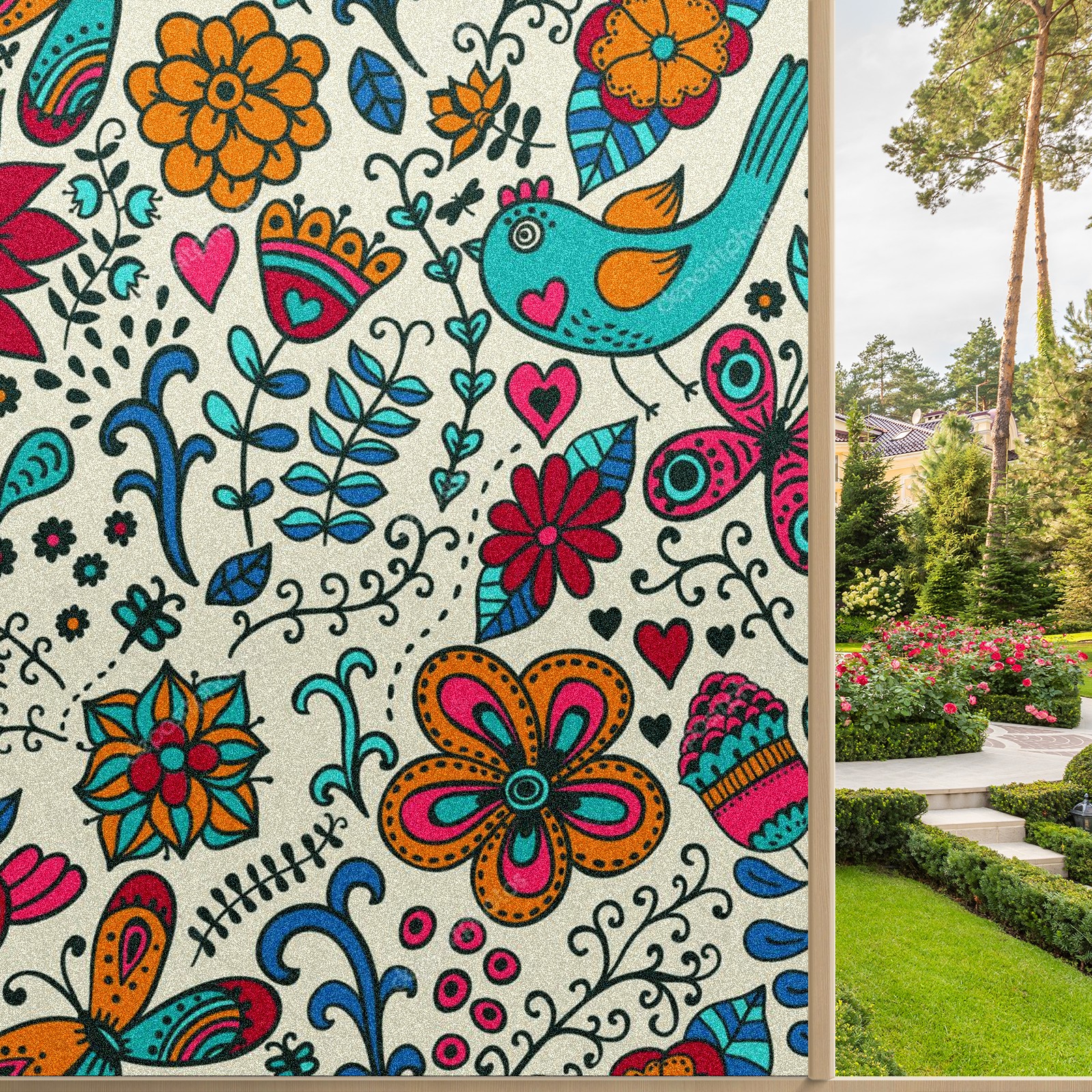 Single sided frosted full screen printed glass sticker soft pink green stripe seamless embroidery pattern privacy decoration Floral-texture