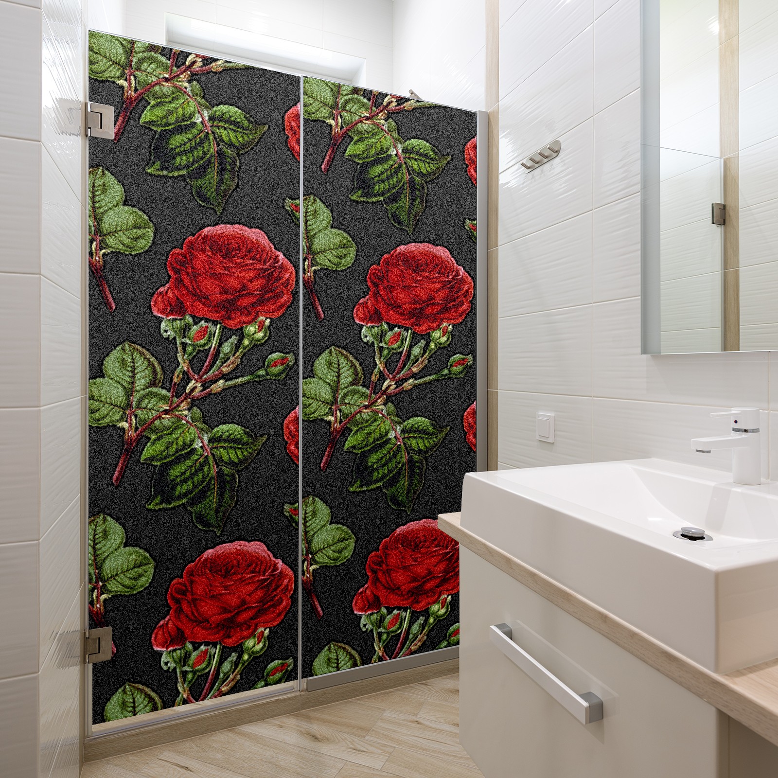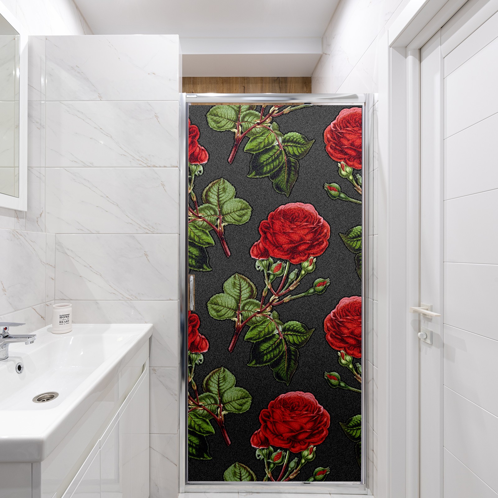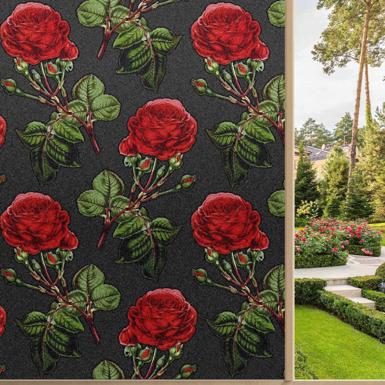 Single sided frosted full screen printed glass sticker soft pink green stripe seamless embroidery pattern privacy decoration Roses