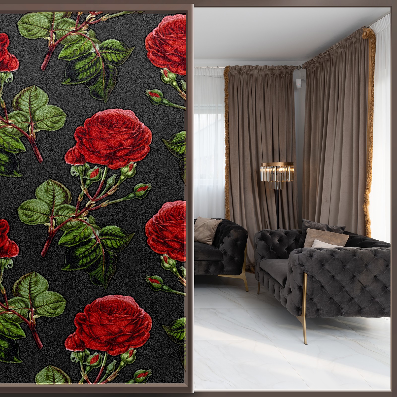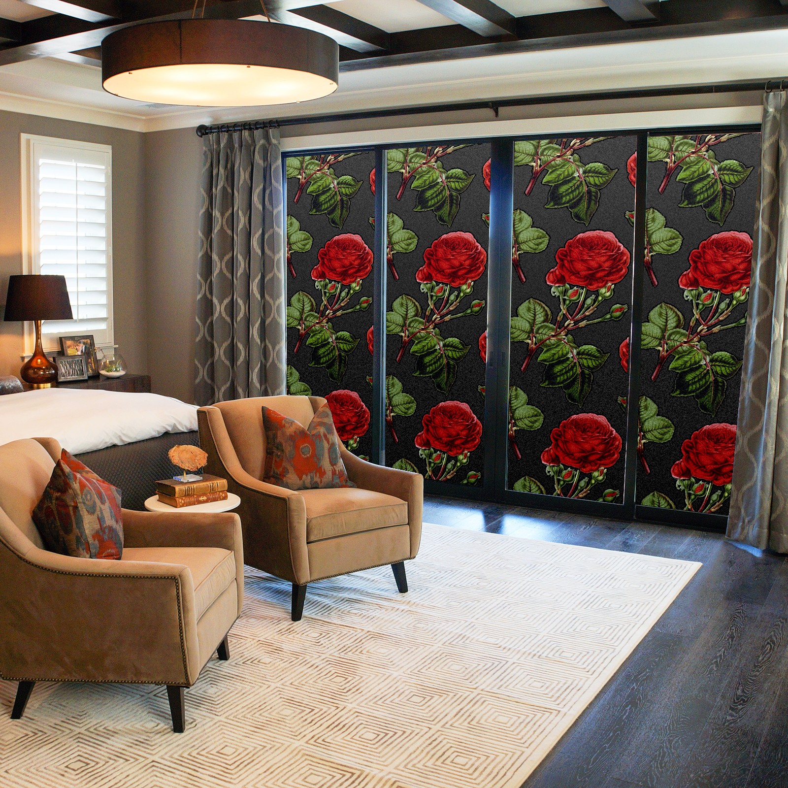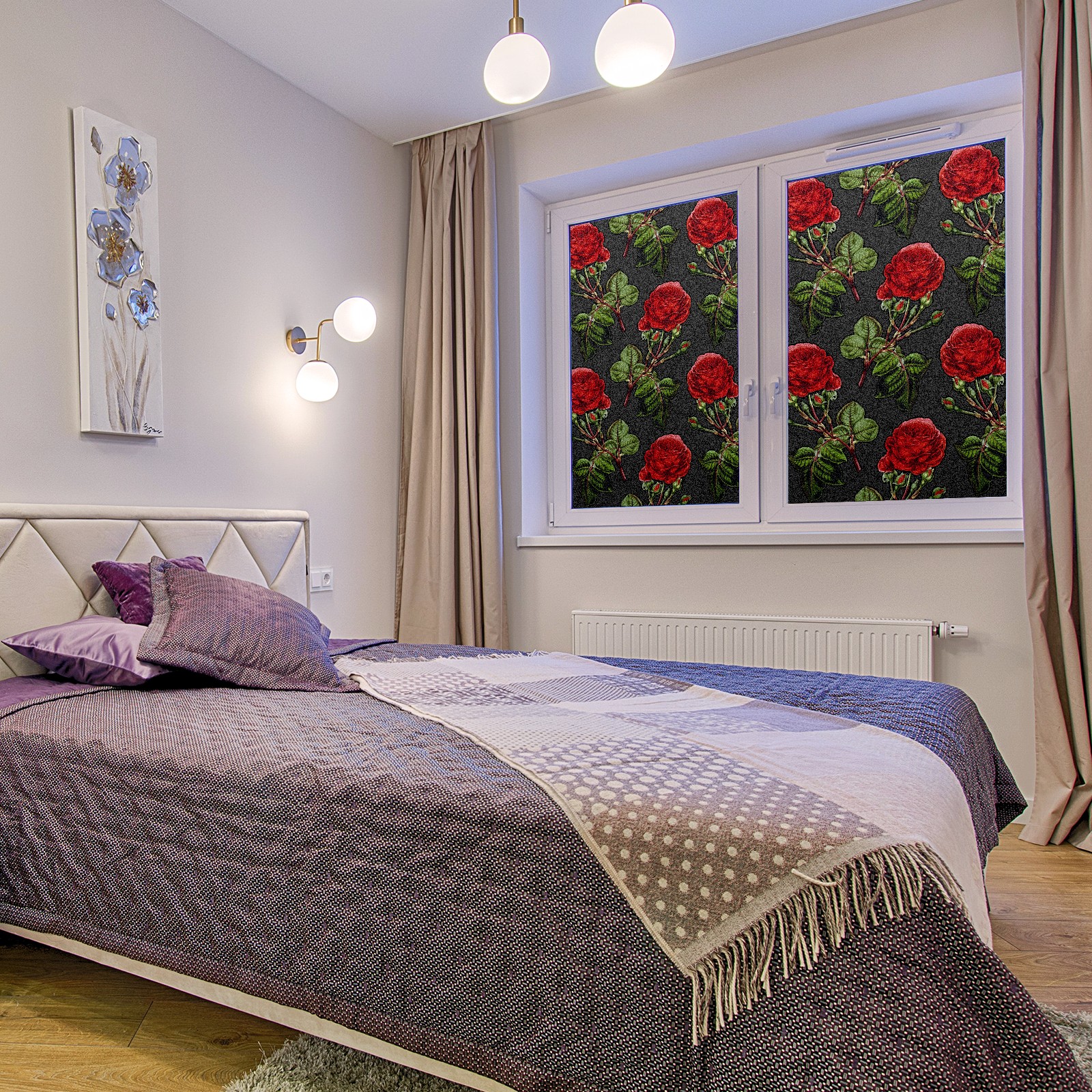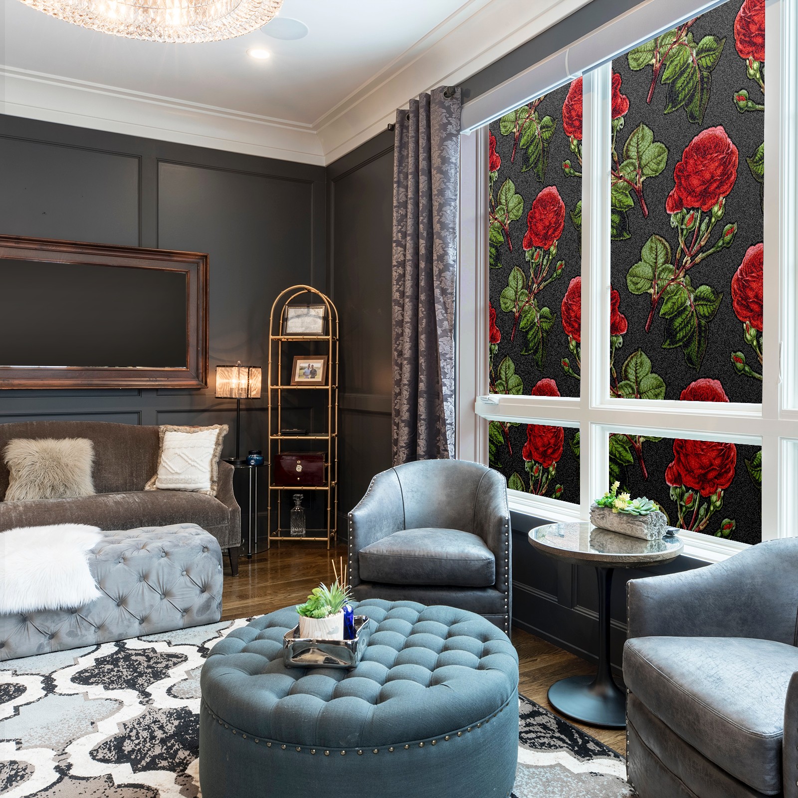 Single sided frosted full screen printed glass sticker soft pink green stripe seamless embroidery pattern privacy decoration Roses