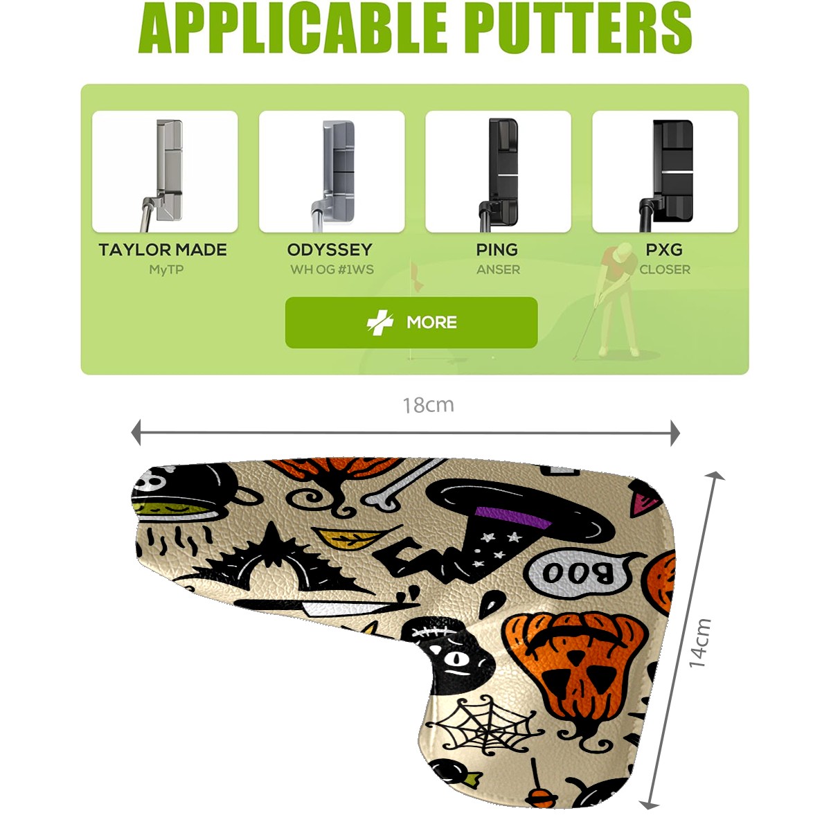 Black Golf Club Head Cover Golf Accessories Head Covers Set for Driver & Fairway Woods Accessories for Men Women Halloween Pumpkin