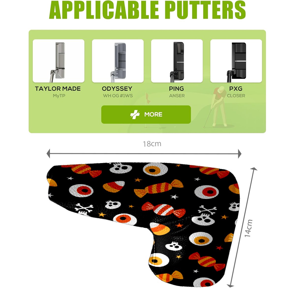 Black Golf Club Head Cover Golf Accessories Head Covers Set for Driver & Fairway Woods Accessories for Men Women Halloween Funny Eyes Skull Candies Pattern