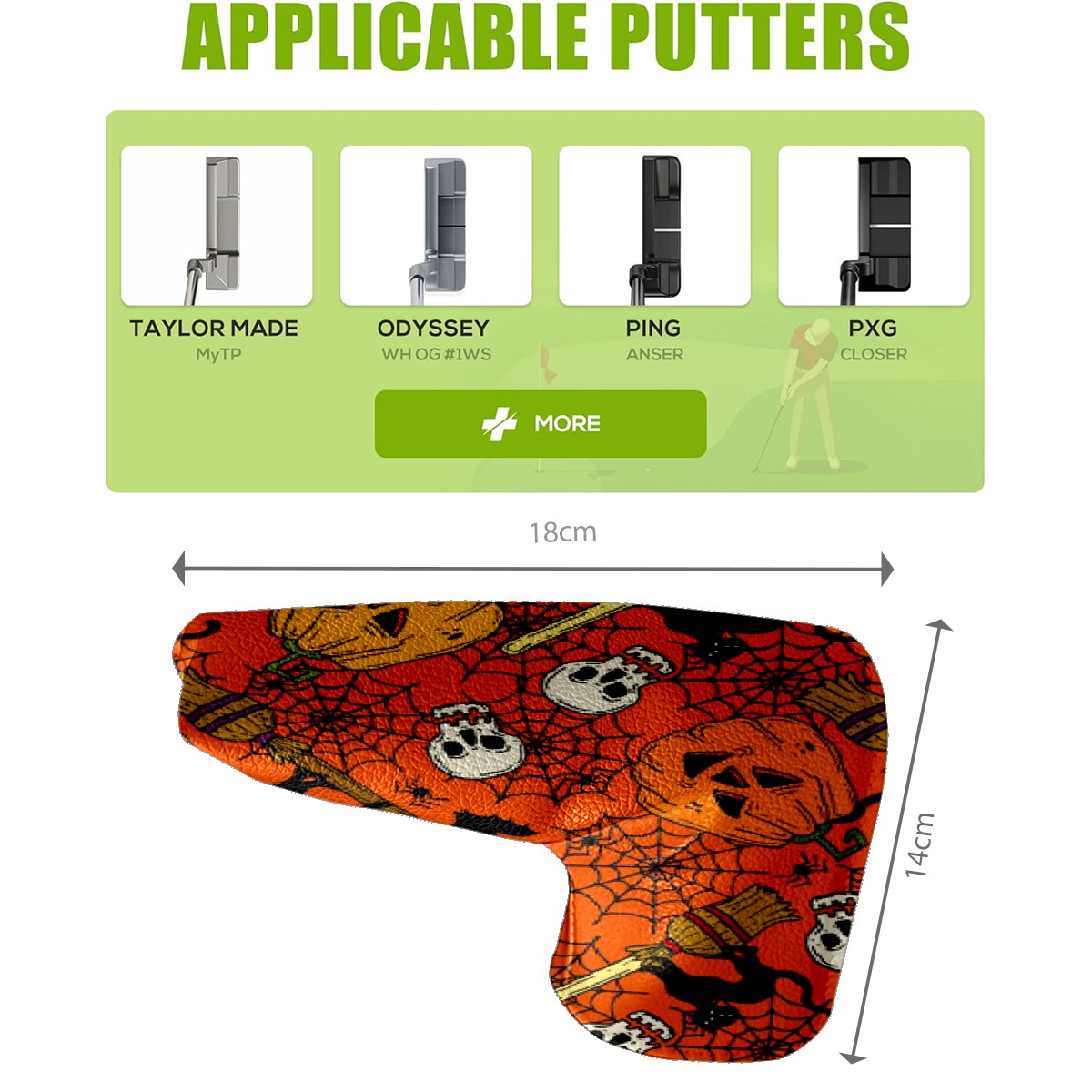 Black Golf Club Head Cover Golf Accessories Head Covers Set for Driver & Fairway Woods Accessories for Men Women Pumpkin