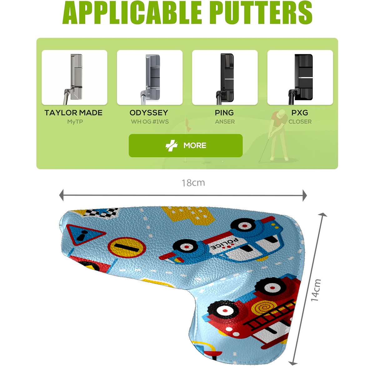 Black Golf Club Head Cover Golf Accessories Head Covers Set for Driver & Fairway Woods Accessories for Men Women Firefighter Police Car Blue