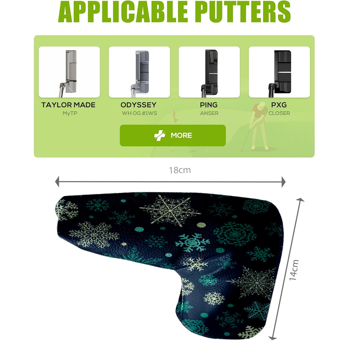 Black Golf Club Head Cover Golf Accessories Head Covers Set for Driver & Fairway Woods Accessories for Men Women Snowflakes