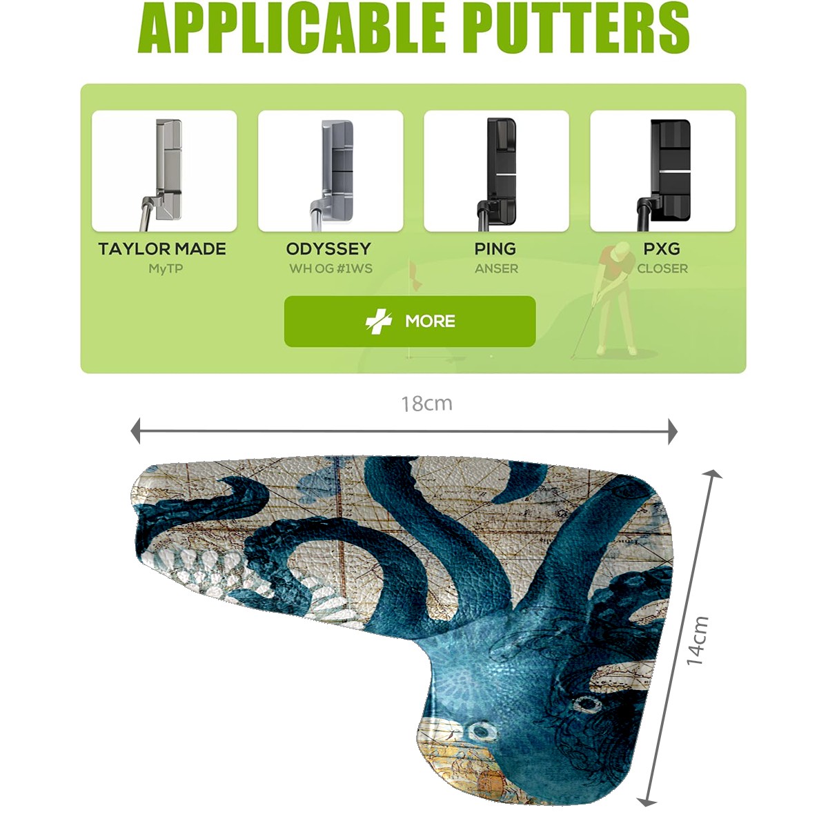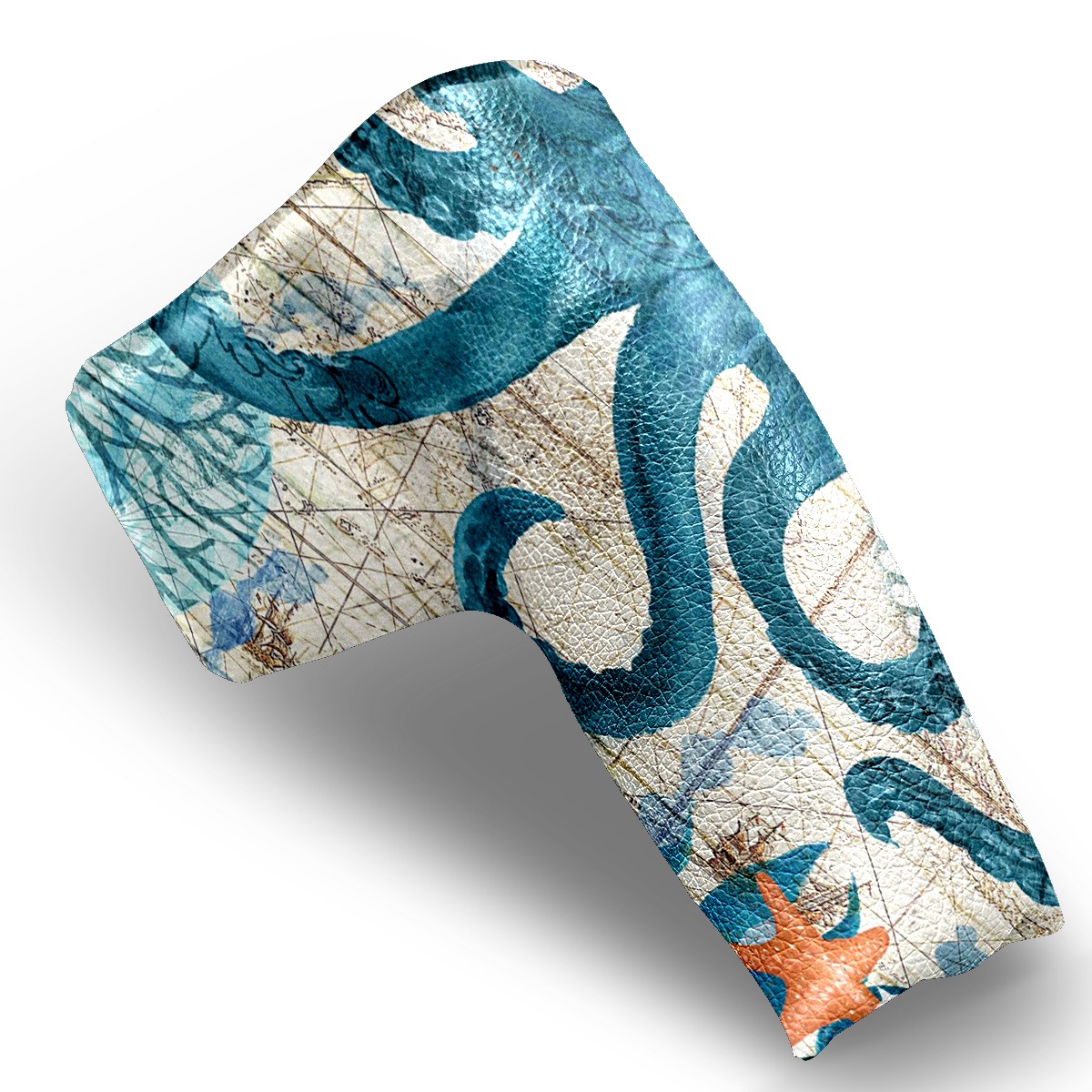 Black Golf Club Head Cover Golf Accessories Head Covers Set for Driver & Fairway Woods Accessories for Men Women Vintage Blue Octopus Coral Starfish