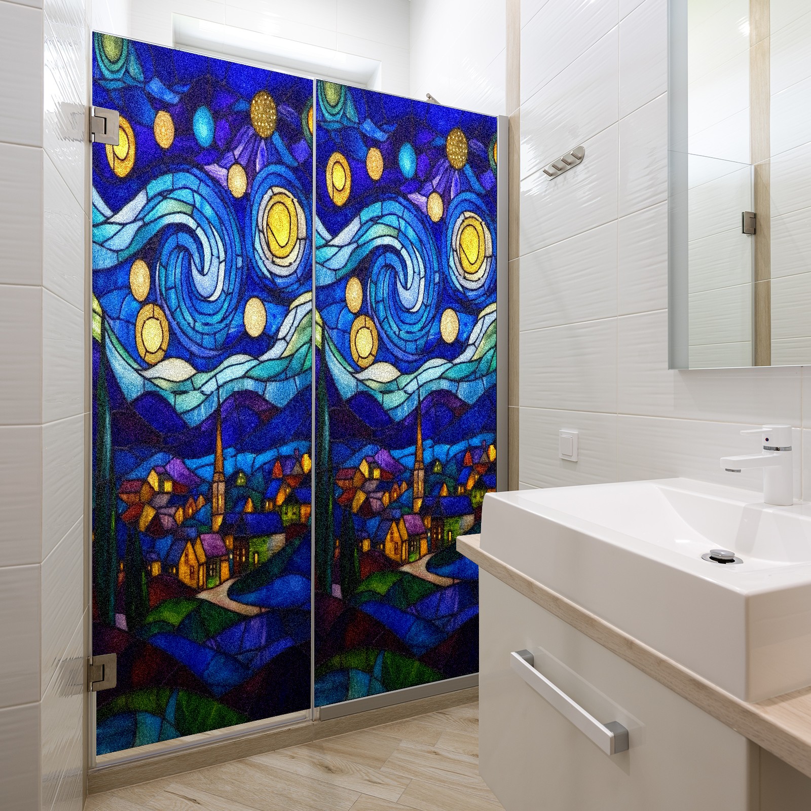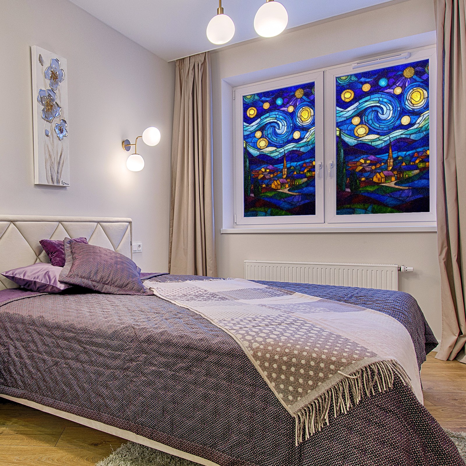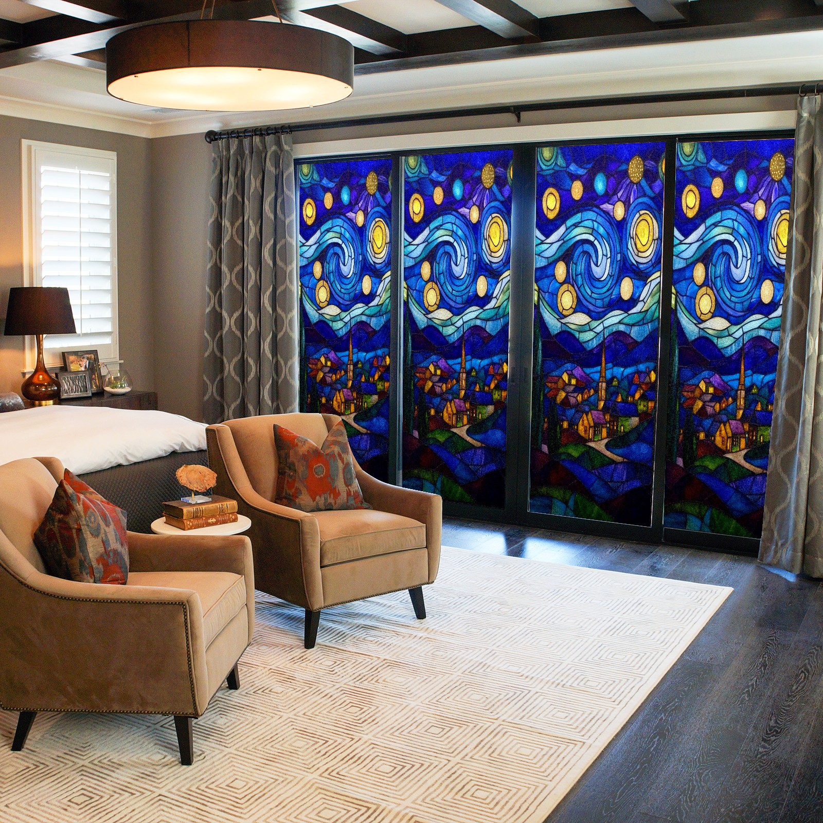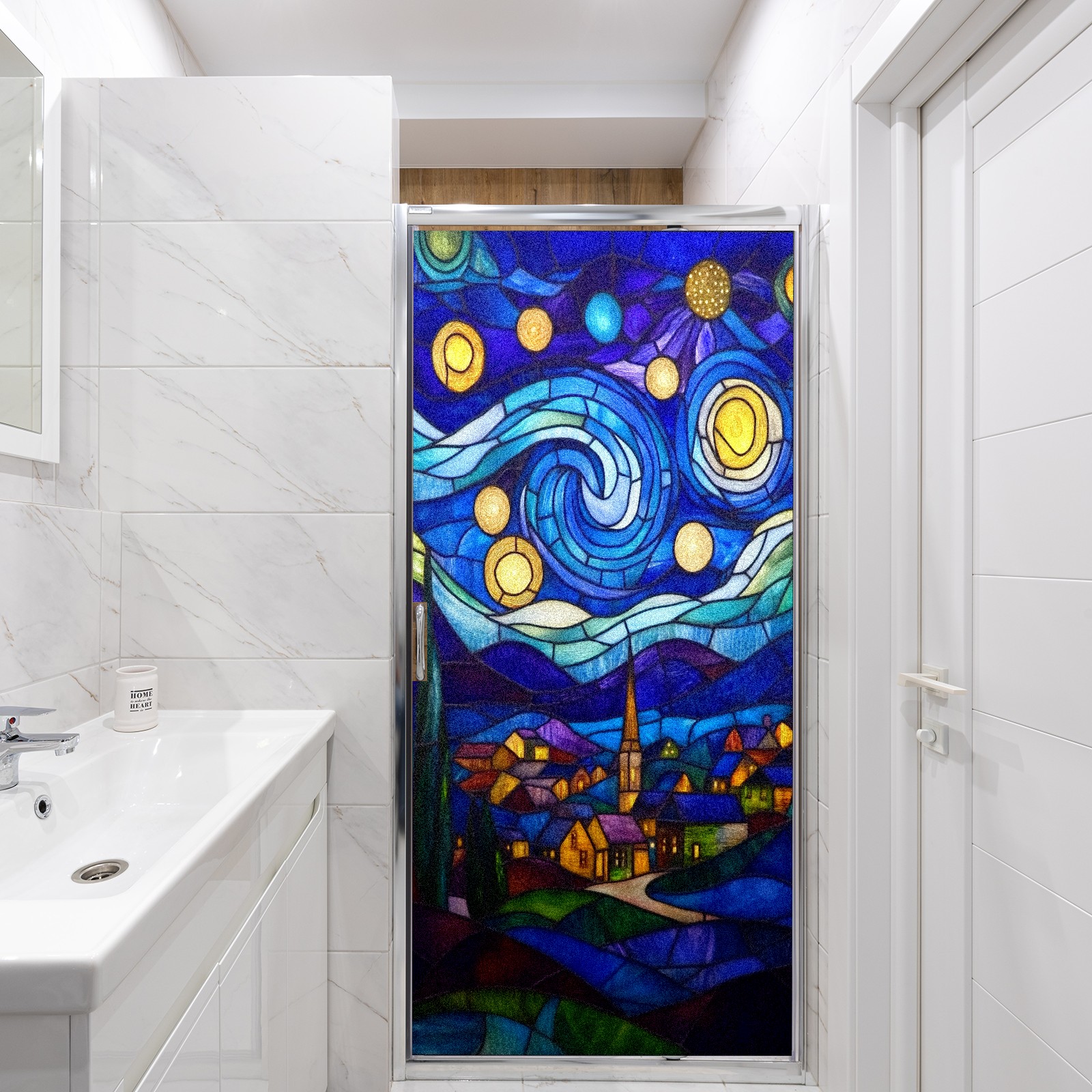 Matte Privacy Window Film | Static Cling, One-Way Glass Insulation Film, UV Blocking & Heat Insulating | Non-Adhesive, Removable for Home, Office & BathroomStarry Night