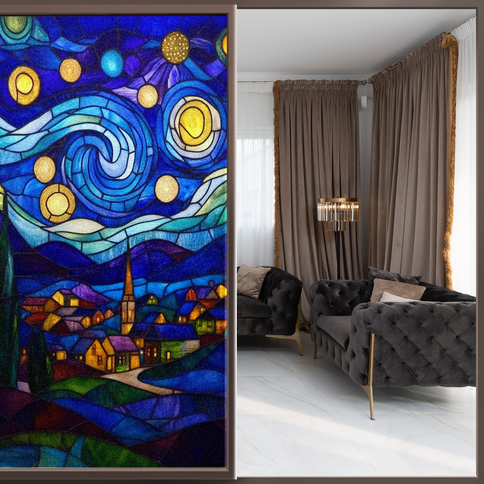 <p>Our film is made of food-grade PET material, safe and odorless, mother and baby families can rest assured that the use of explosion-proof impact resistance more peace of mind. High-definition full-sheet printing, delicate pattern does not fade, easy to enhance the tone of the home, suitable for a variety of decorative styles. Single-sided frosted design, effective protection of privacy, clear view during the day, night anti-peeping without embarrassment. Electrostatic adsorption installation, glue-free without leaving marks, can be repeatedly adjusted for use. It can also block ultraviolet rays, sunscreen insulation, protect furniture from fading, energy saving and more comfortable!&nbsp;&nbsp;</p>
