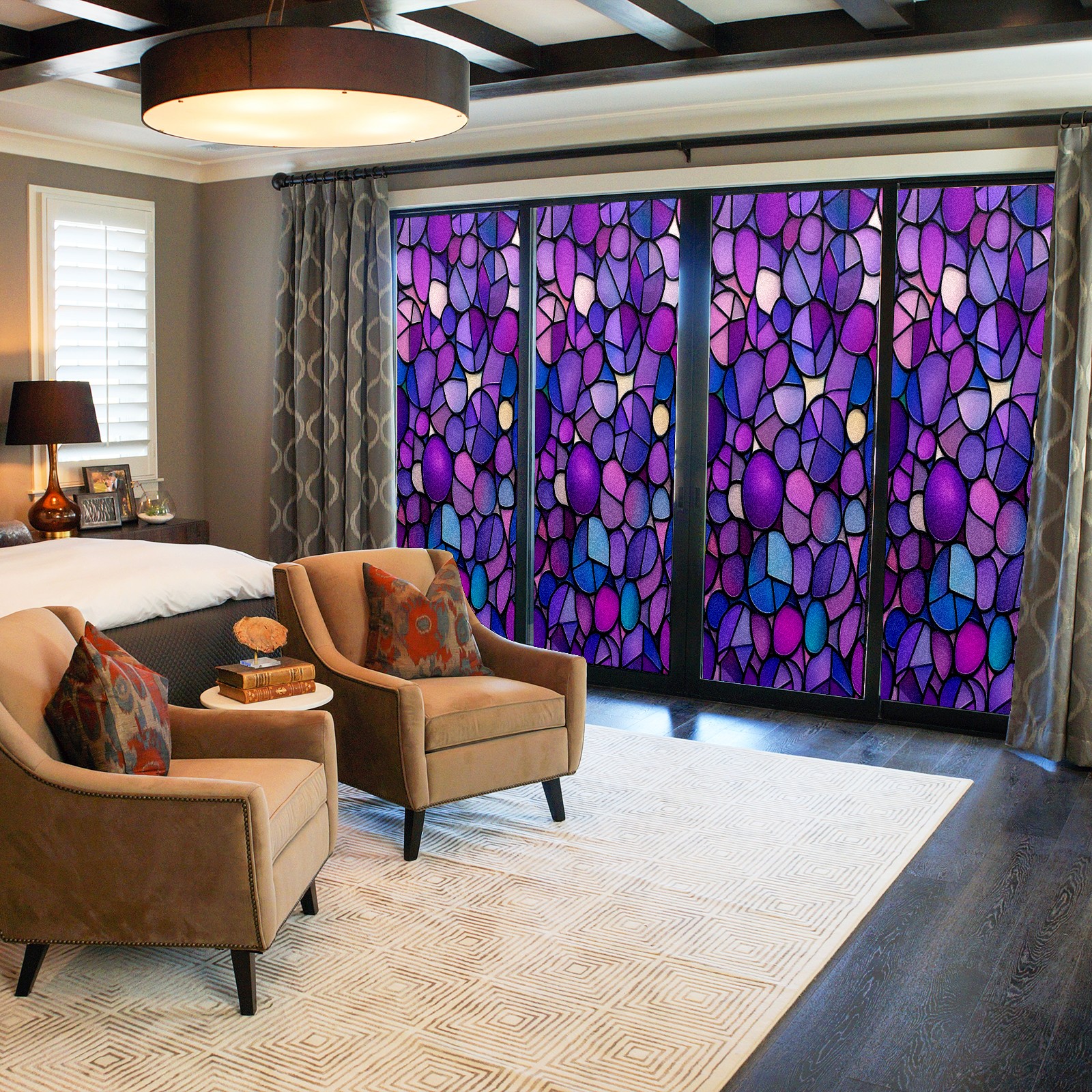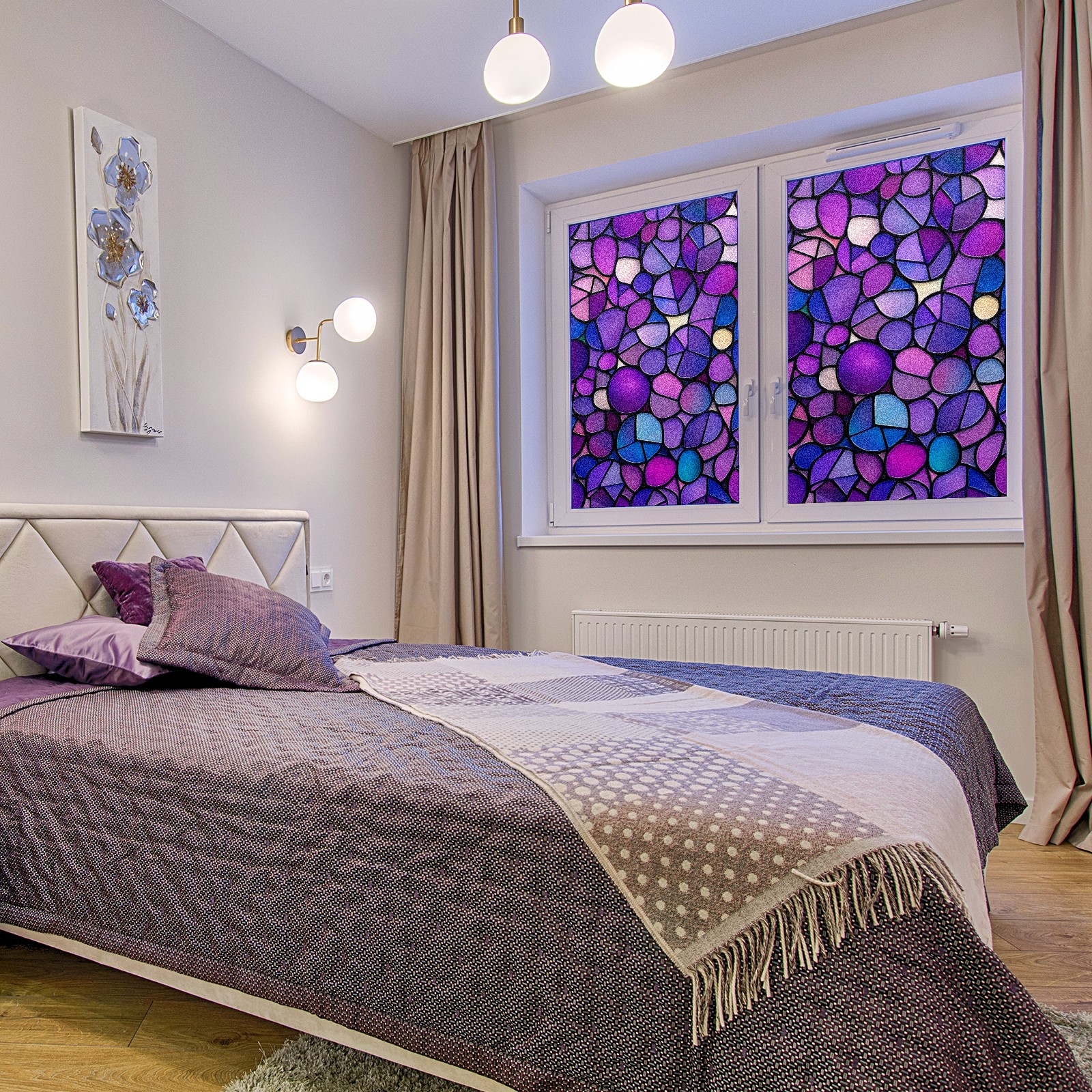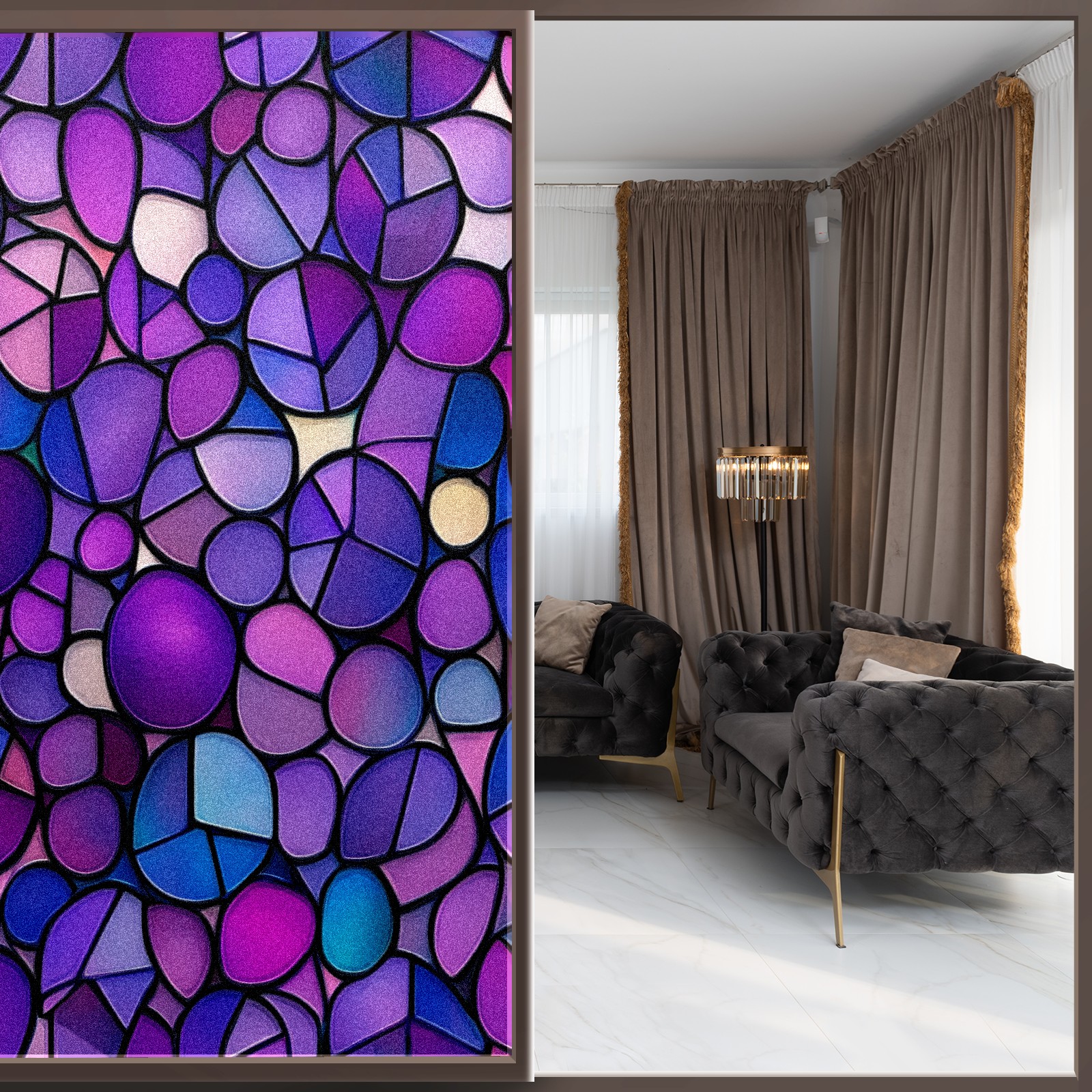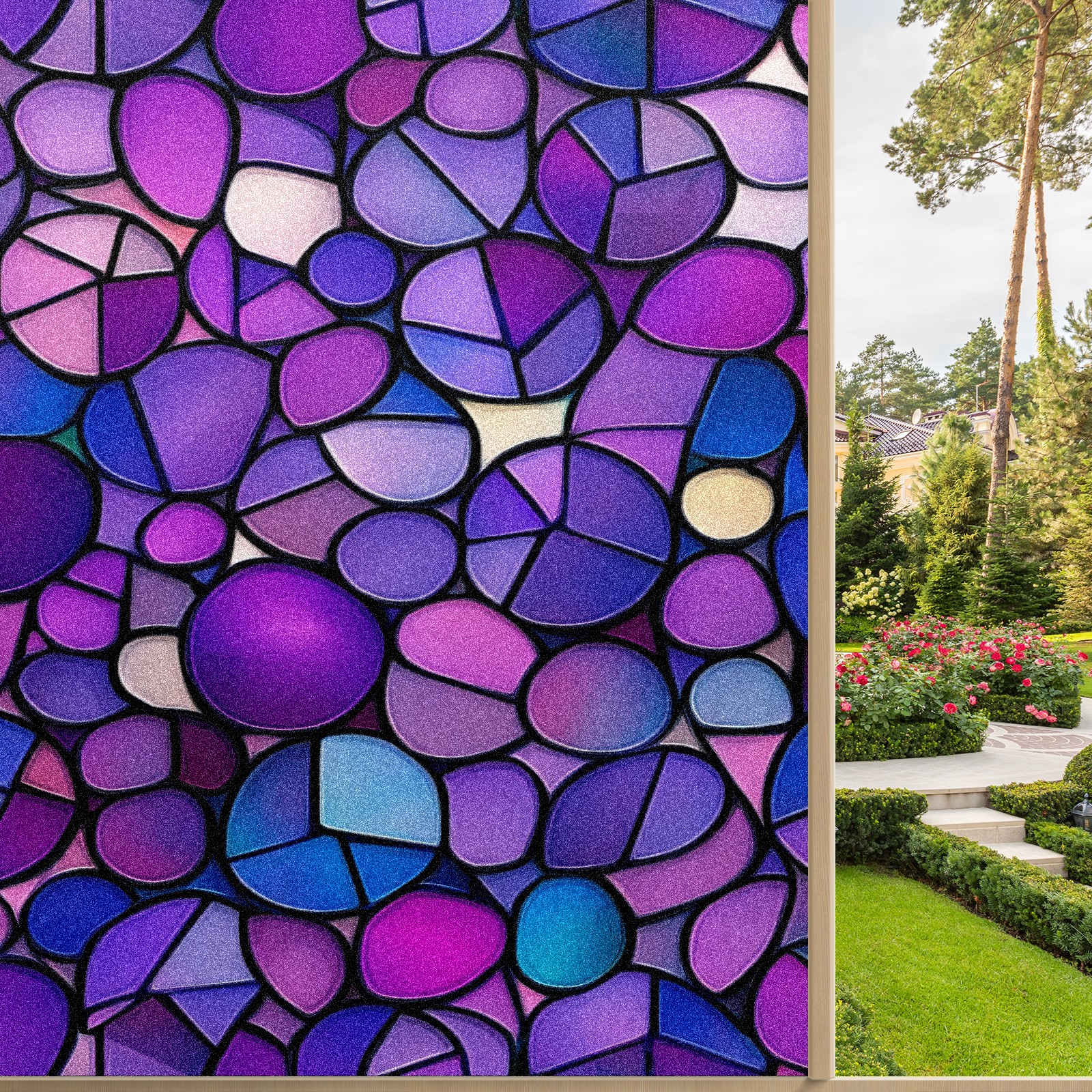 Matte Privacy Window Film | Static Cling, One-Way Glass Insulation Film, UV Blocking & Heat Insulating | Non-Adhesive, Removable for Home, Office & BathroomPurple-stained Glass