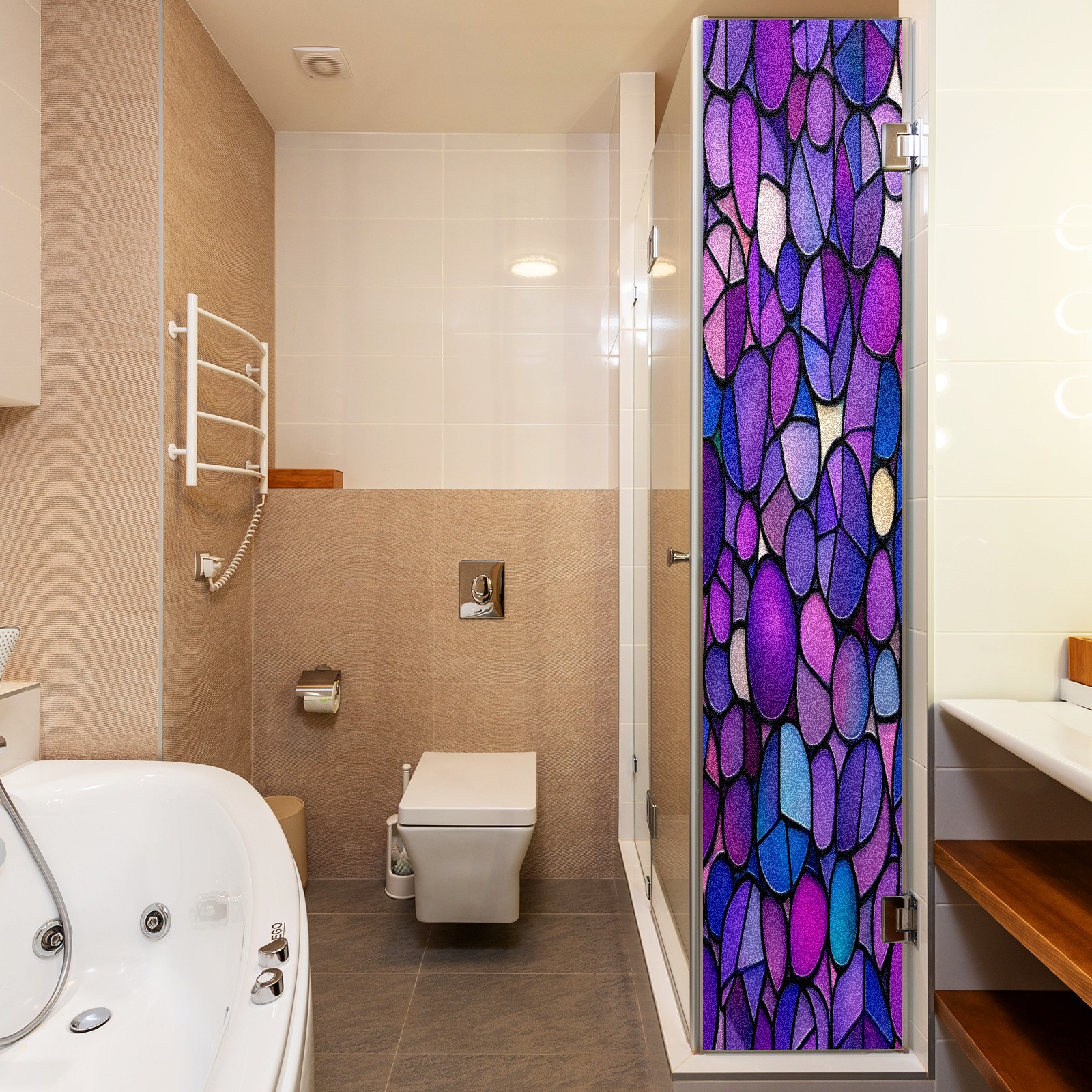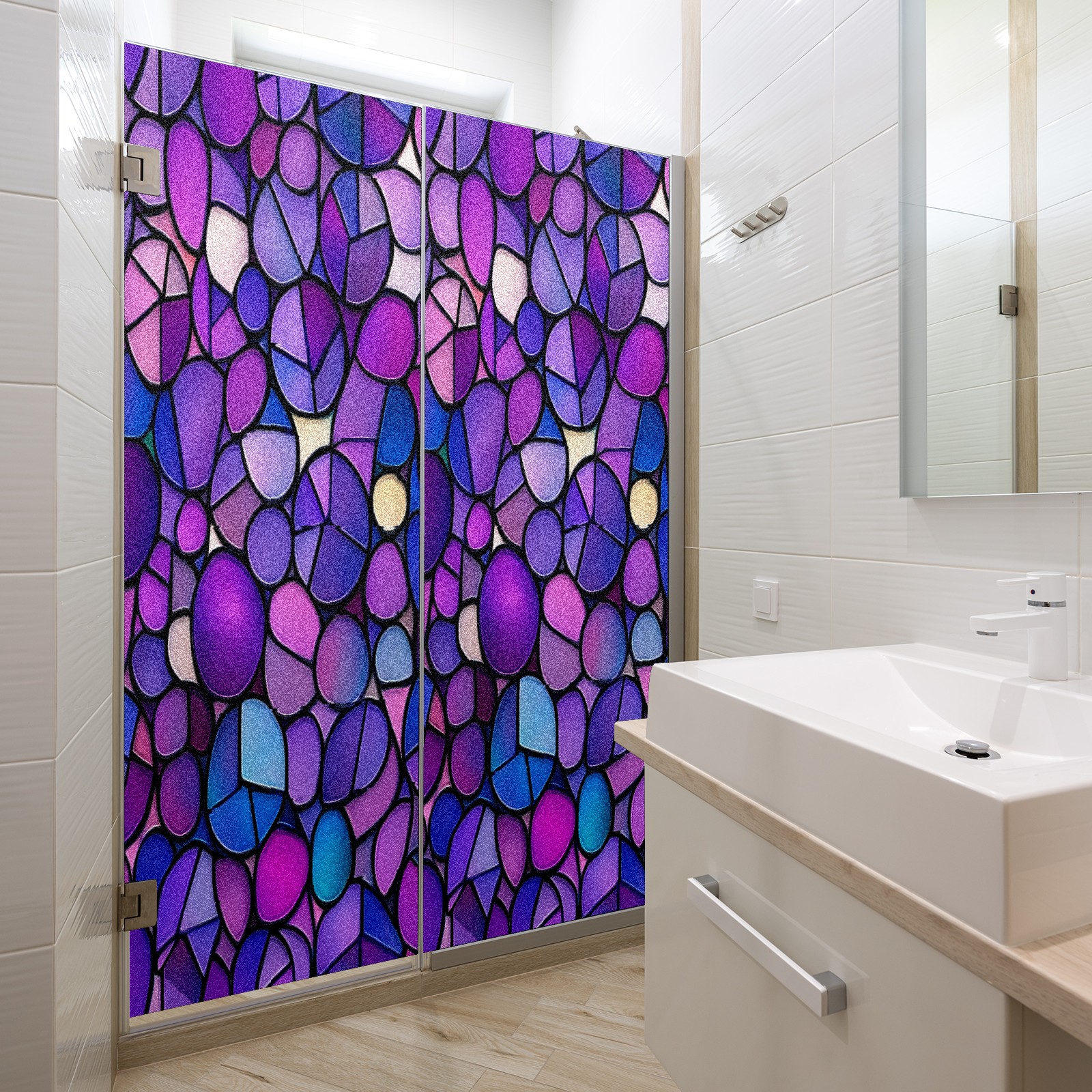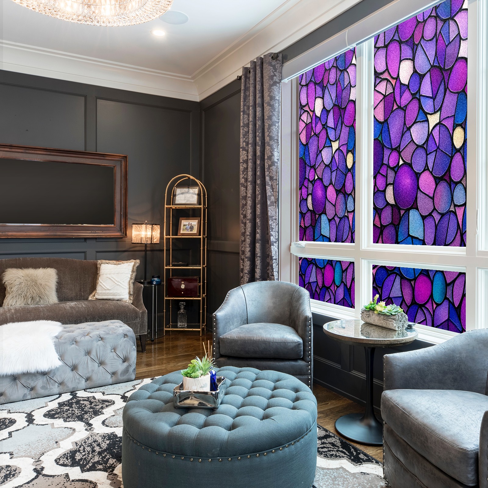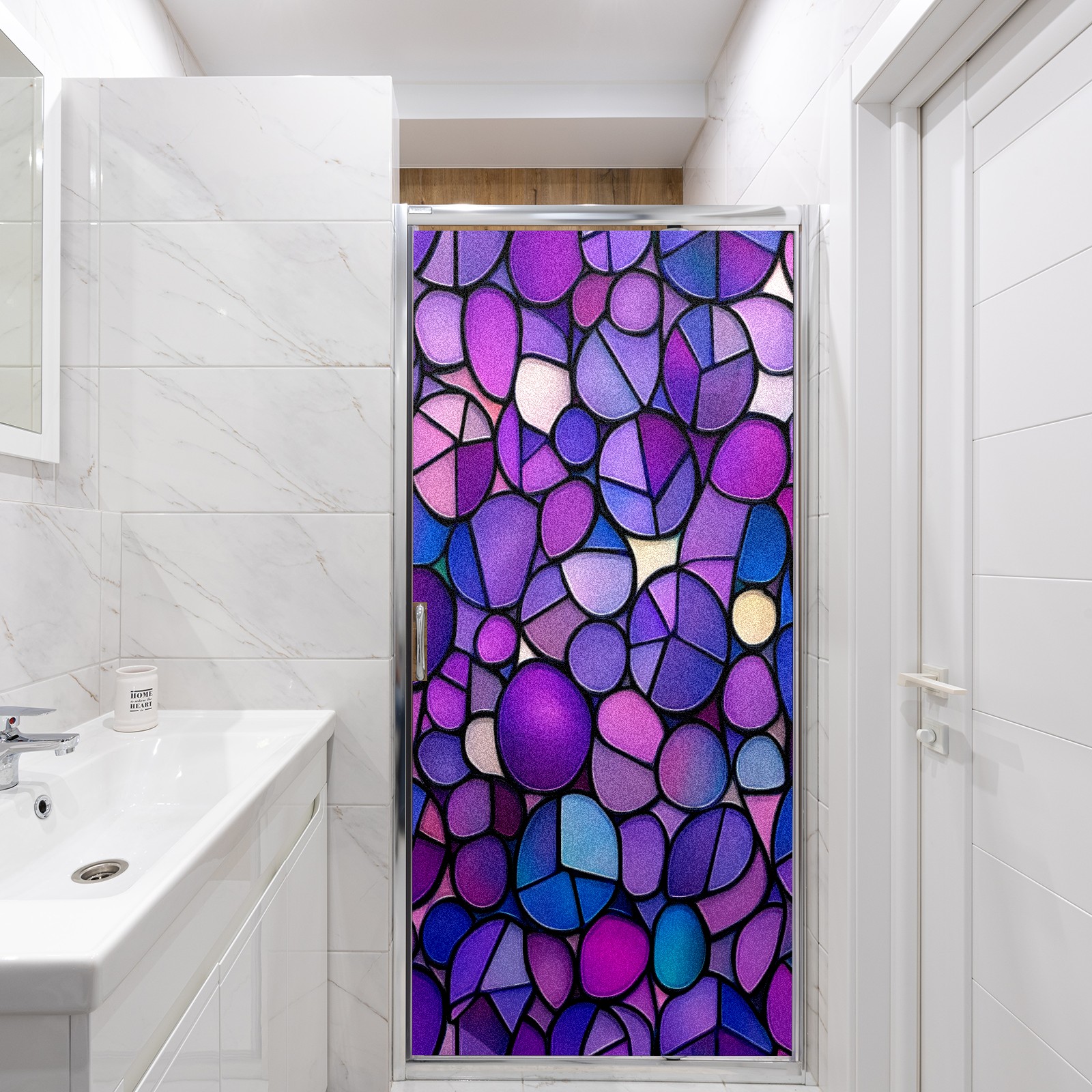 Matte Privacy Window Film | Static Cling, One-Way Glass Insulation Film, UV Blocking & Heat Insulating | Non-Adhesive, Removable for Home, Office & BathroomPurple-stained Glass