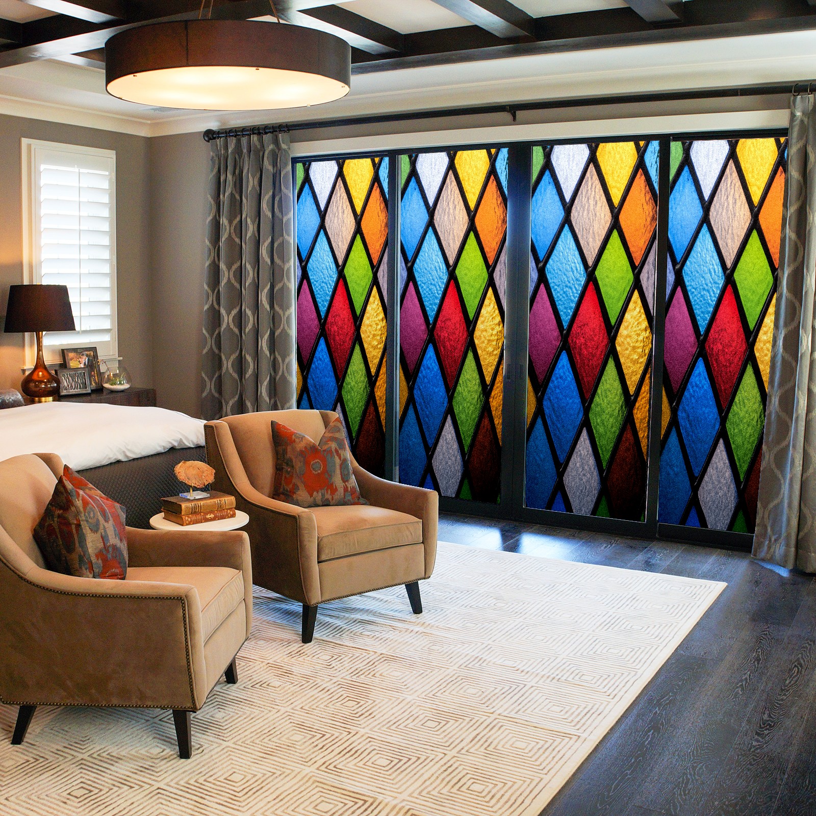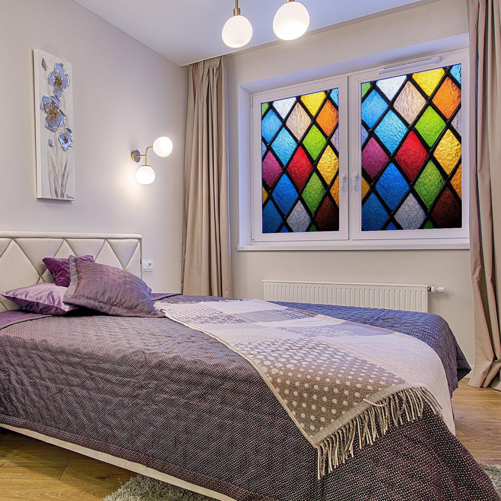 Matte Privacy Window Film | Static Cling, One-Way Glass Insulation Film, UV Blocking & Heat Insulating | Non-Adhesive, Removable for Home, Office & BathroomColorful
