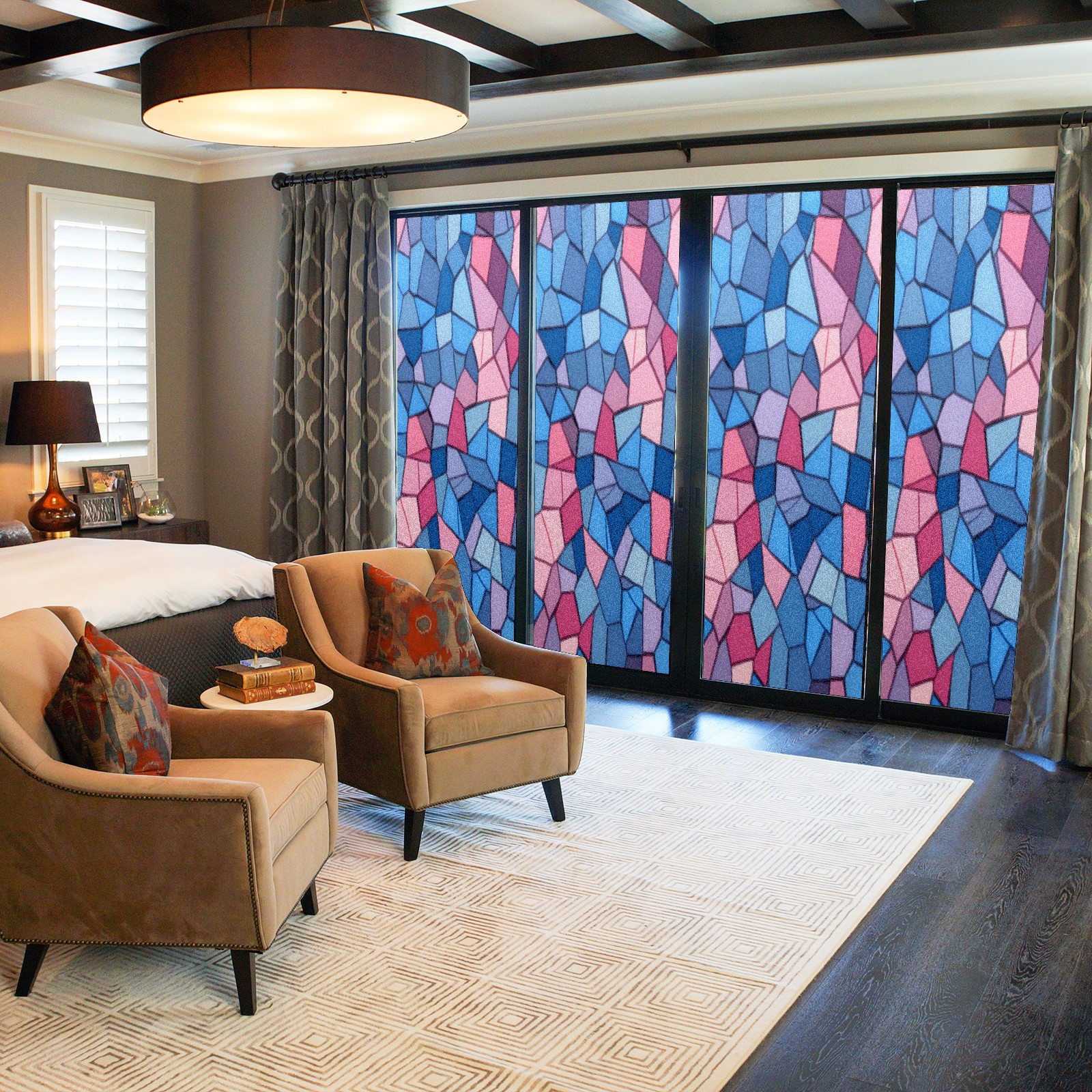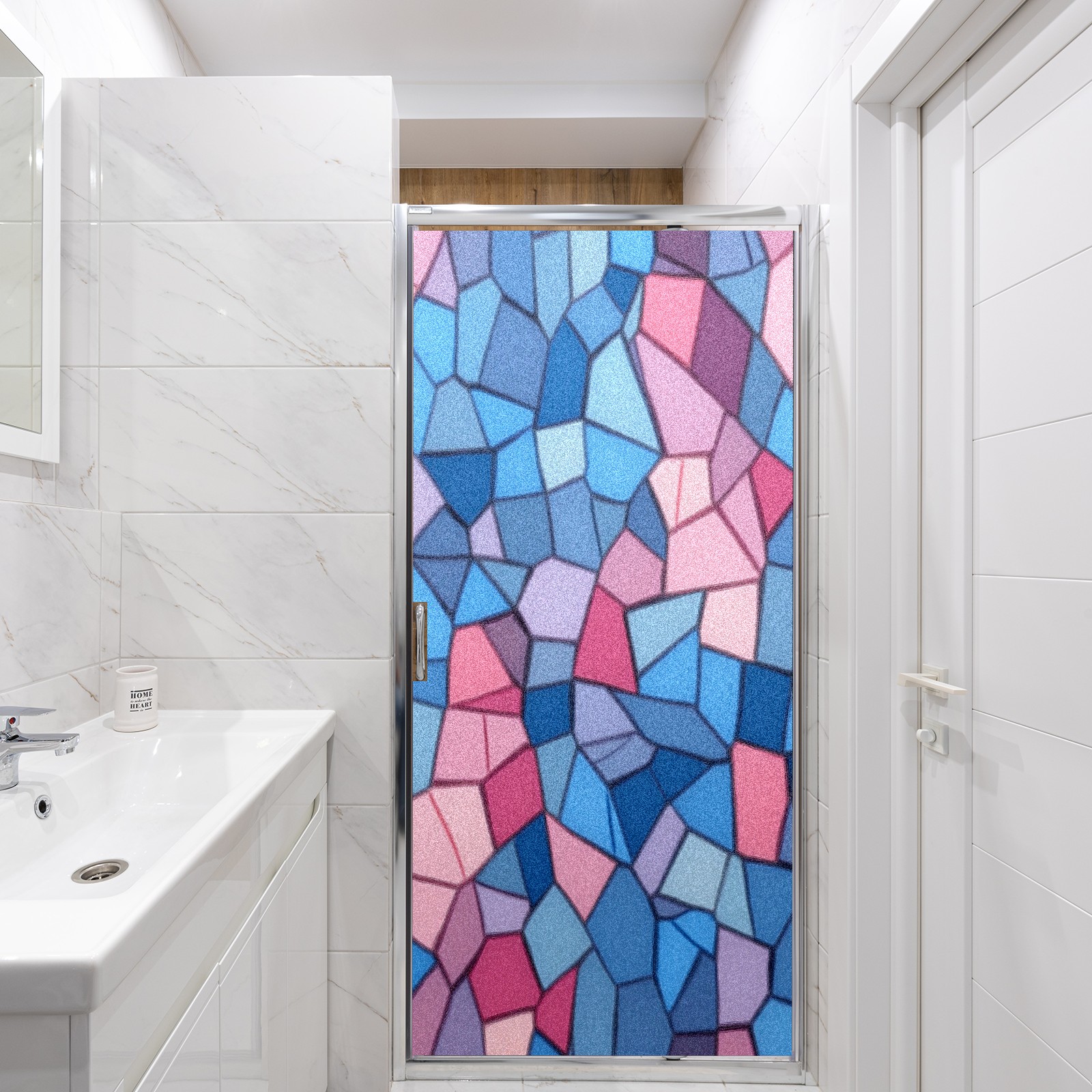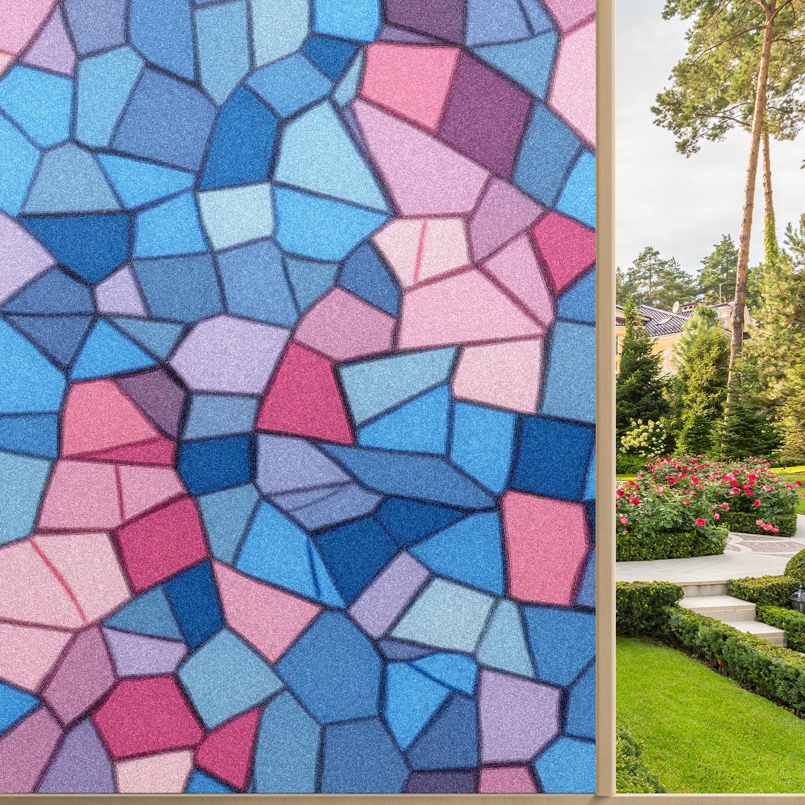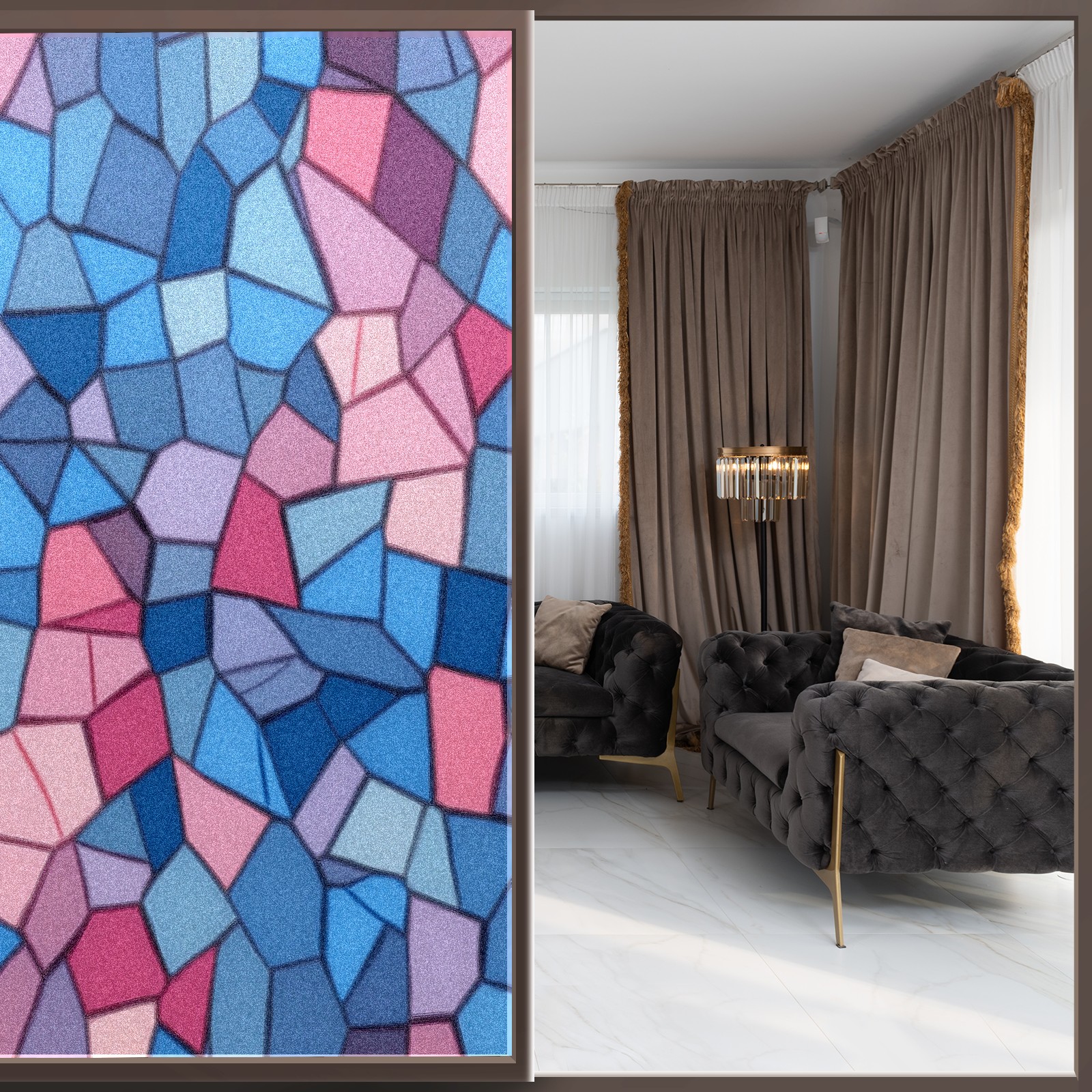 Matte Privacy Window Film | Static Cling, One-Way Glass Insulation Film, UV Blocking & Heat Insulating | Non-Adhesive, Removable for Home, Office & BathroomBlue And Pink