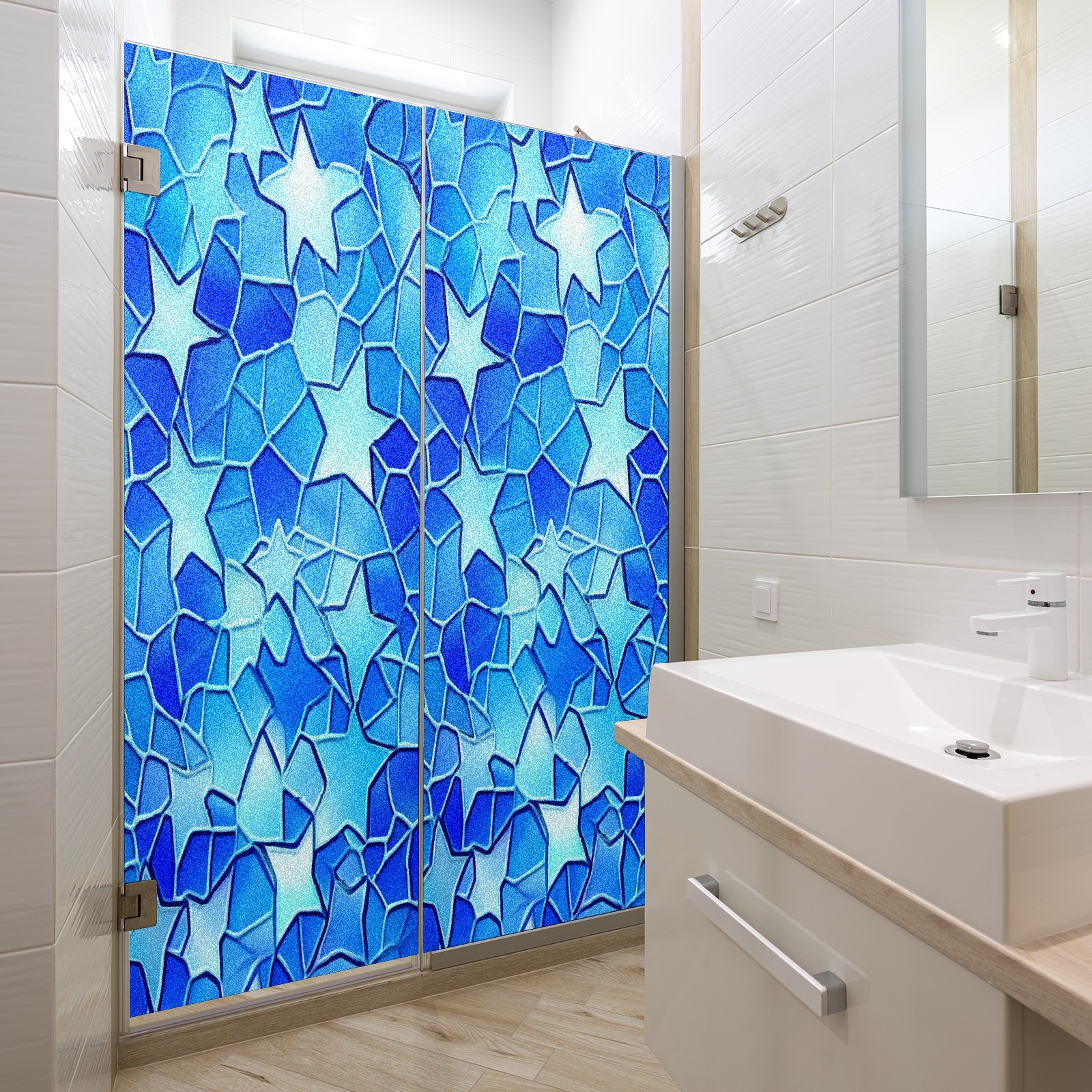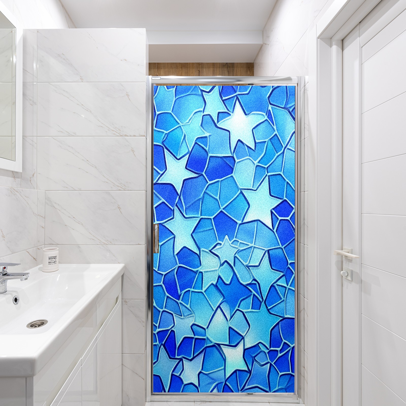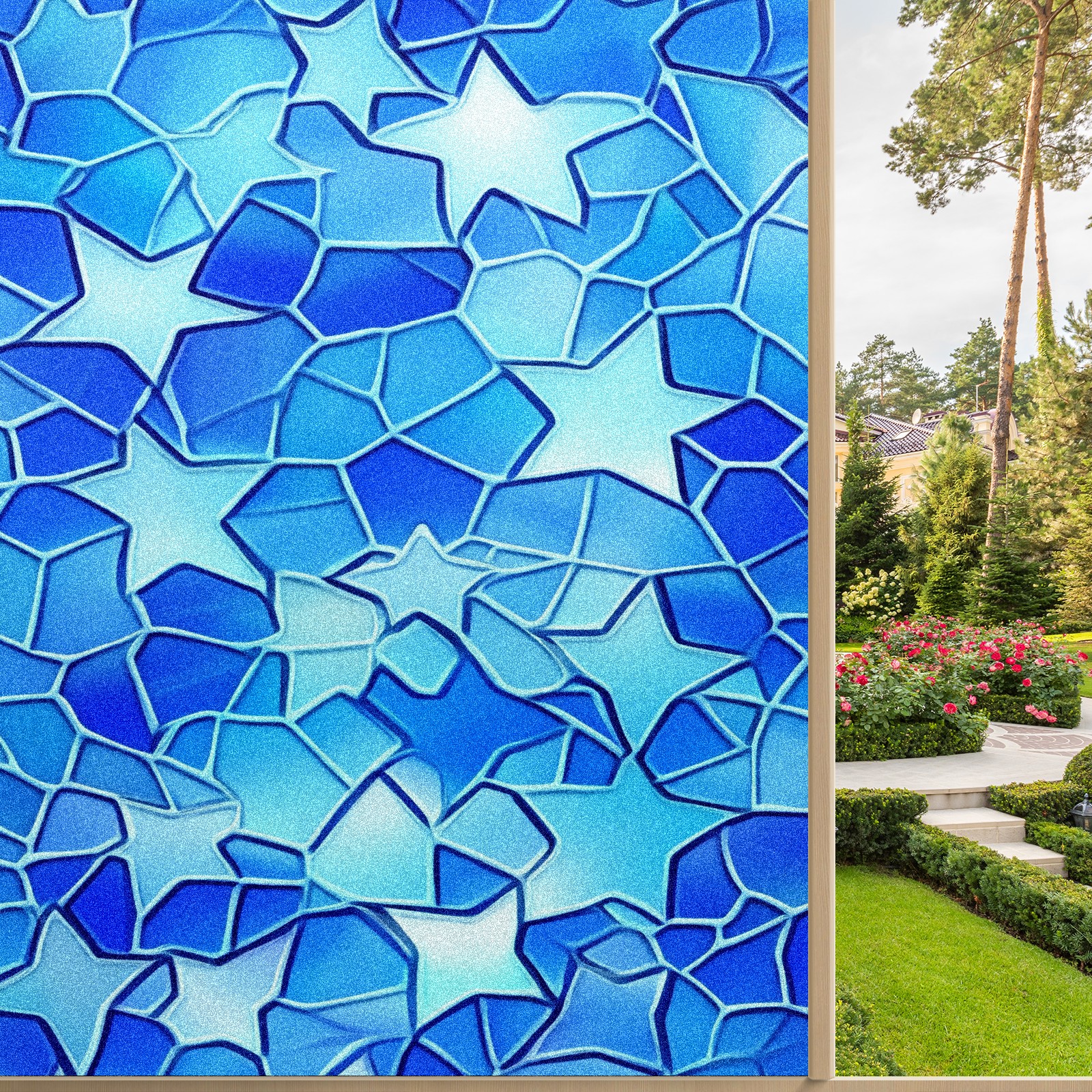 Matte Privacy Window Film | Static Cling, One-Way Glass Insulation Film, UV Blocking & Heat Insulating | Non-Adhesive, Removable for Home, Office & BathroomBlue Stars