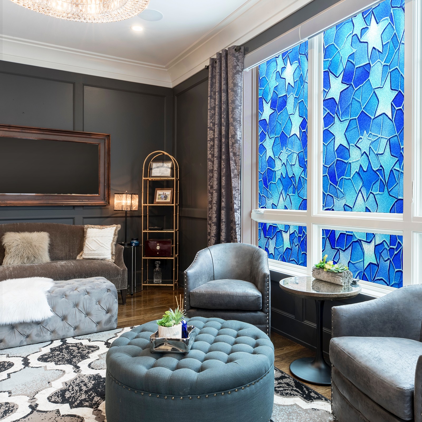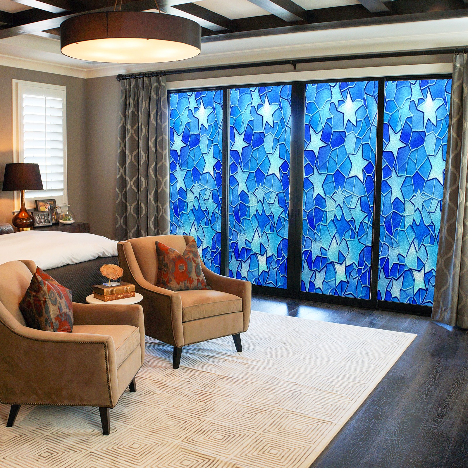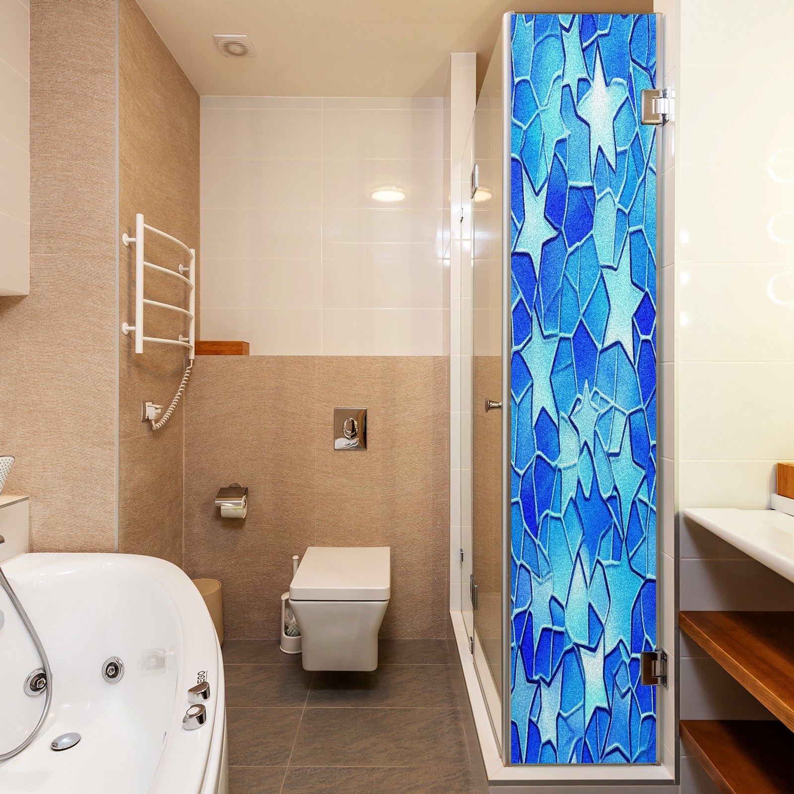 Matte Privacy Window Film | Static Cling, One-Way Glass Insulation Film, UV Blocking & Heat Insulating | Non-Adhesive, Removable for Home, Office & BathroomBlue Stars