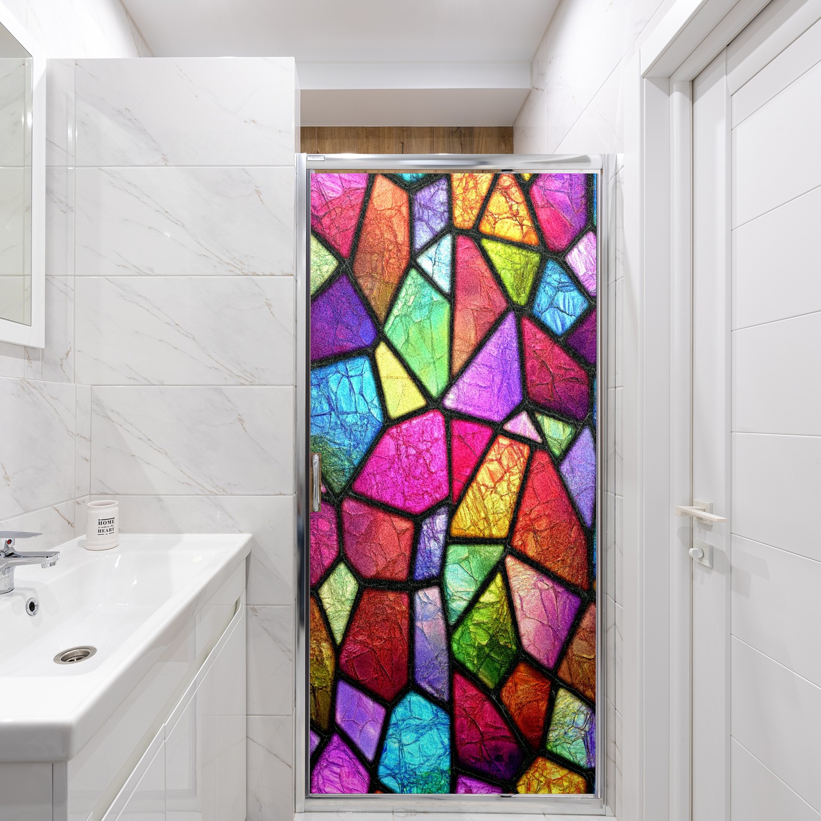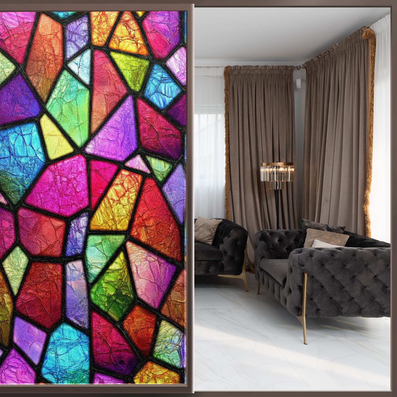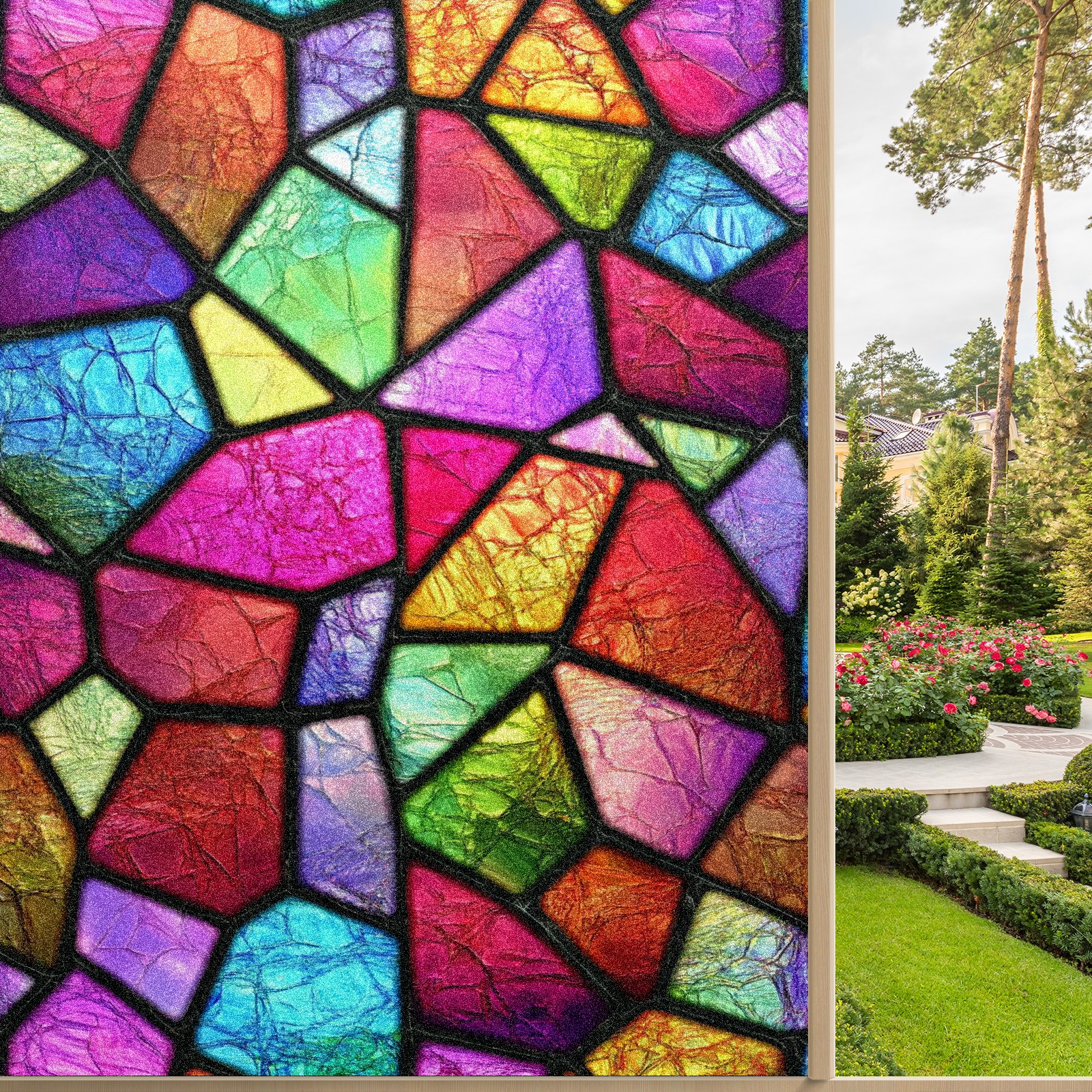 Matte Privacy Window Film | Static Cling, One-Way Glass Insulation Film, UV Blocking & Heat Insulating | Non-Adhesive, Removable for Home, Office & BathroomColorful Stained Glass (3)