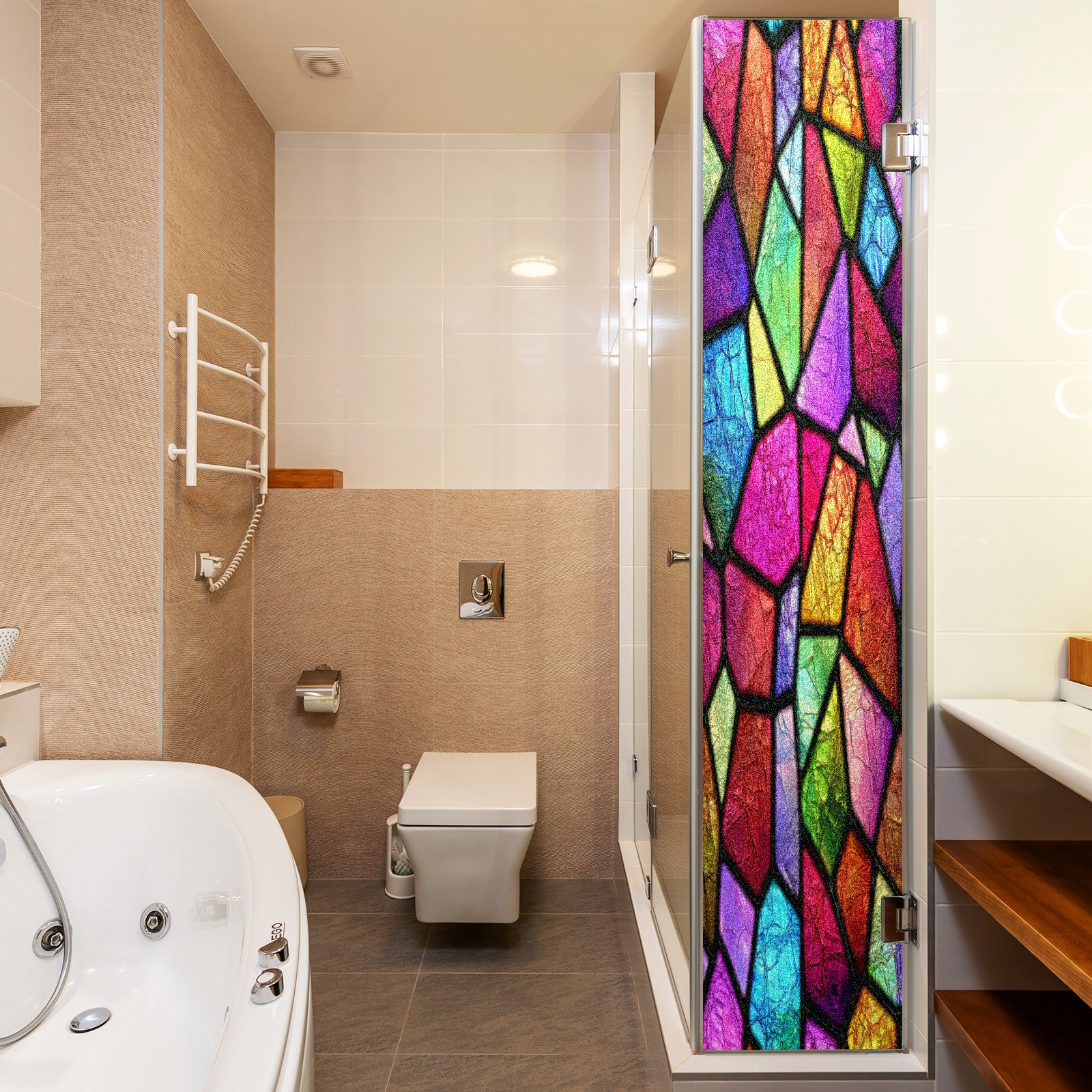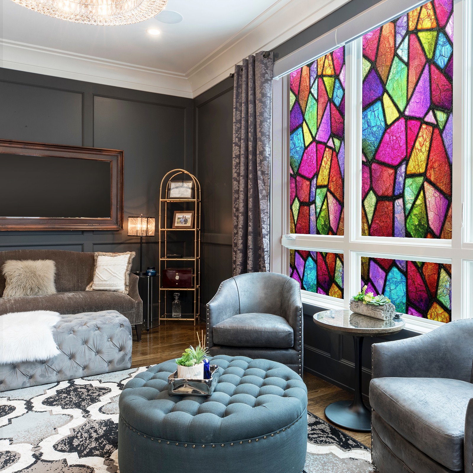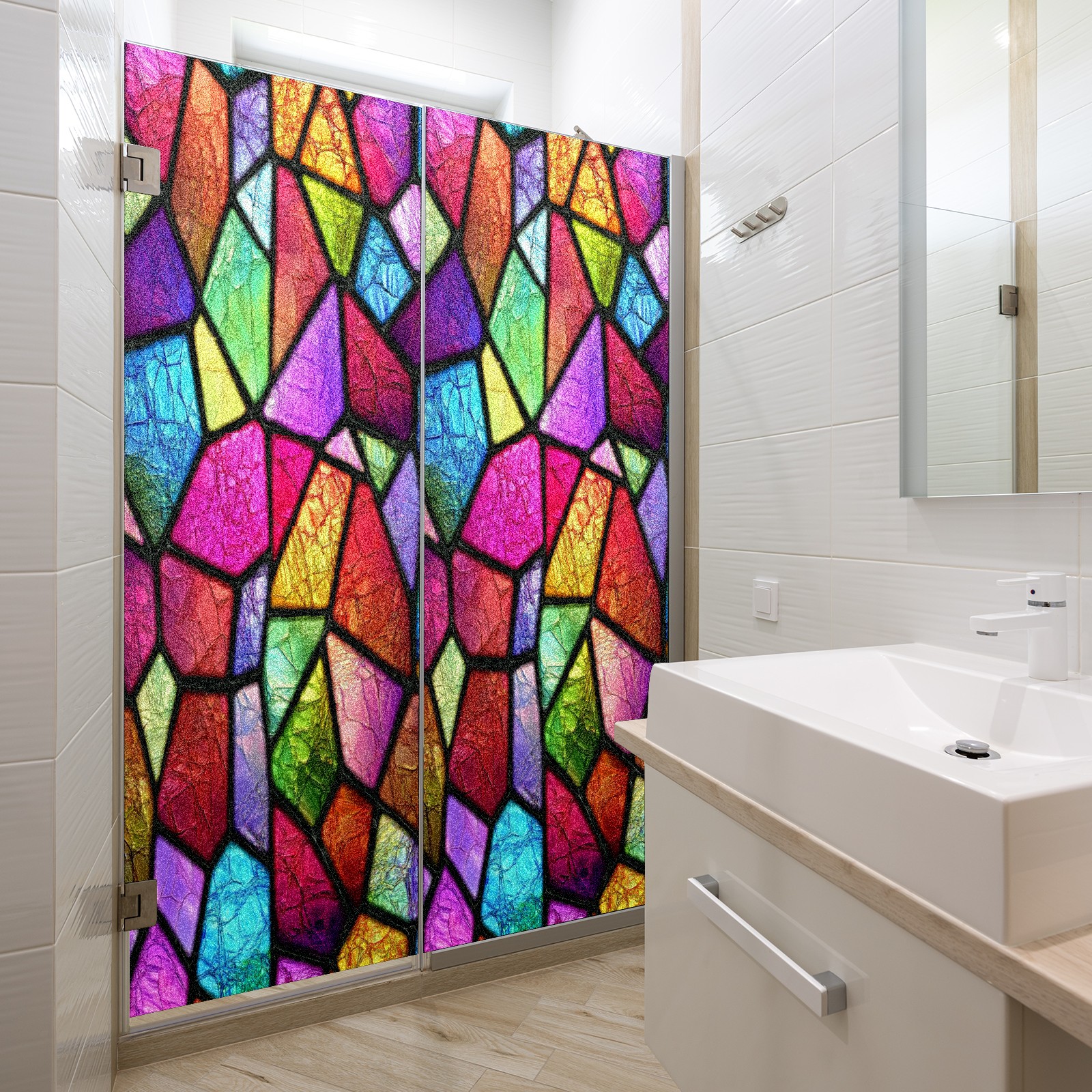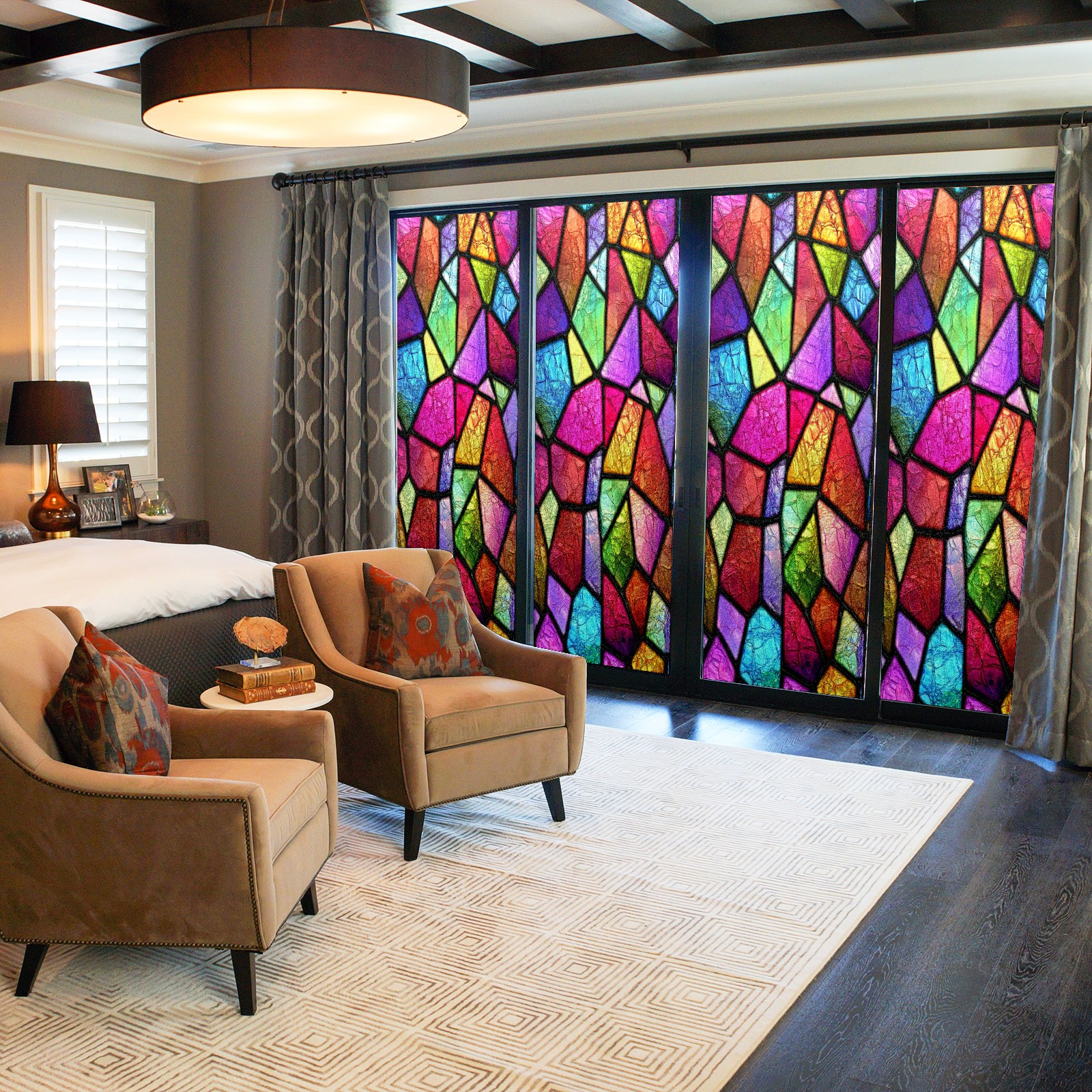 Matte Privacy Window Film | Static Cling, One-Way Glass Insulation Film, UV Blocking & Heat Insulating | Non-Adhesive, Removable for Home, Office & BathroomColorful Stained Glass (3)