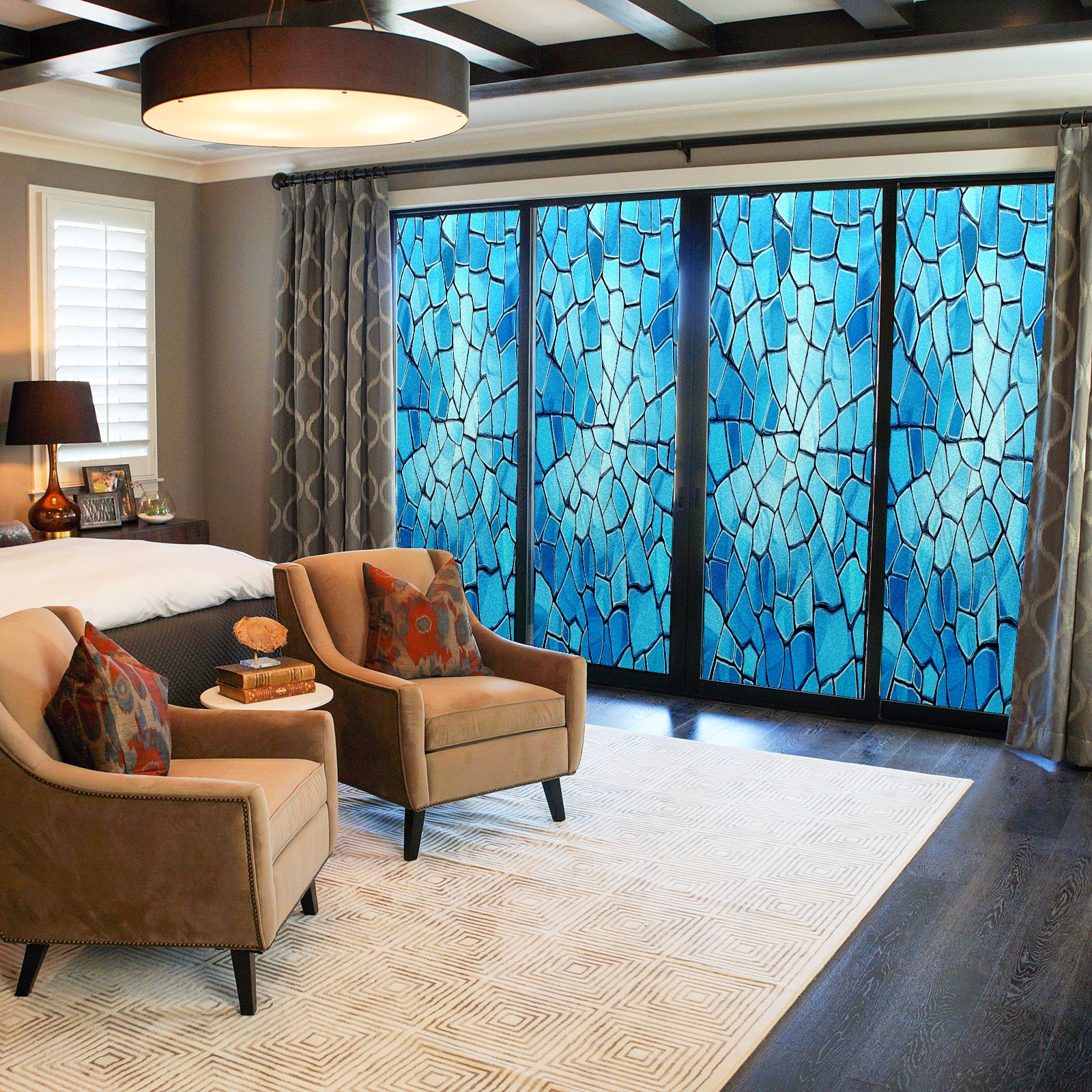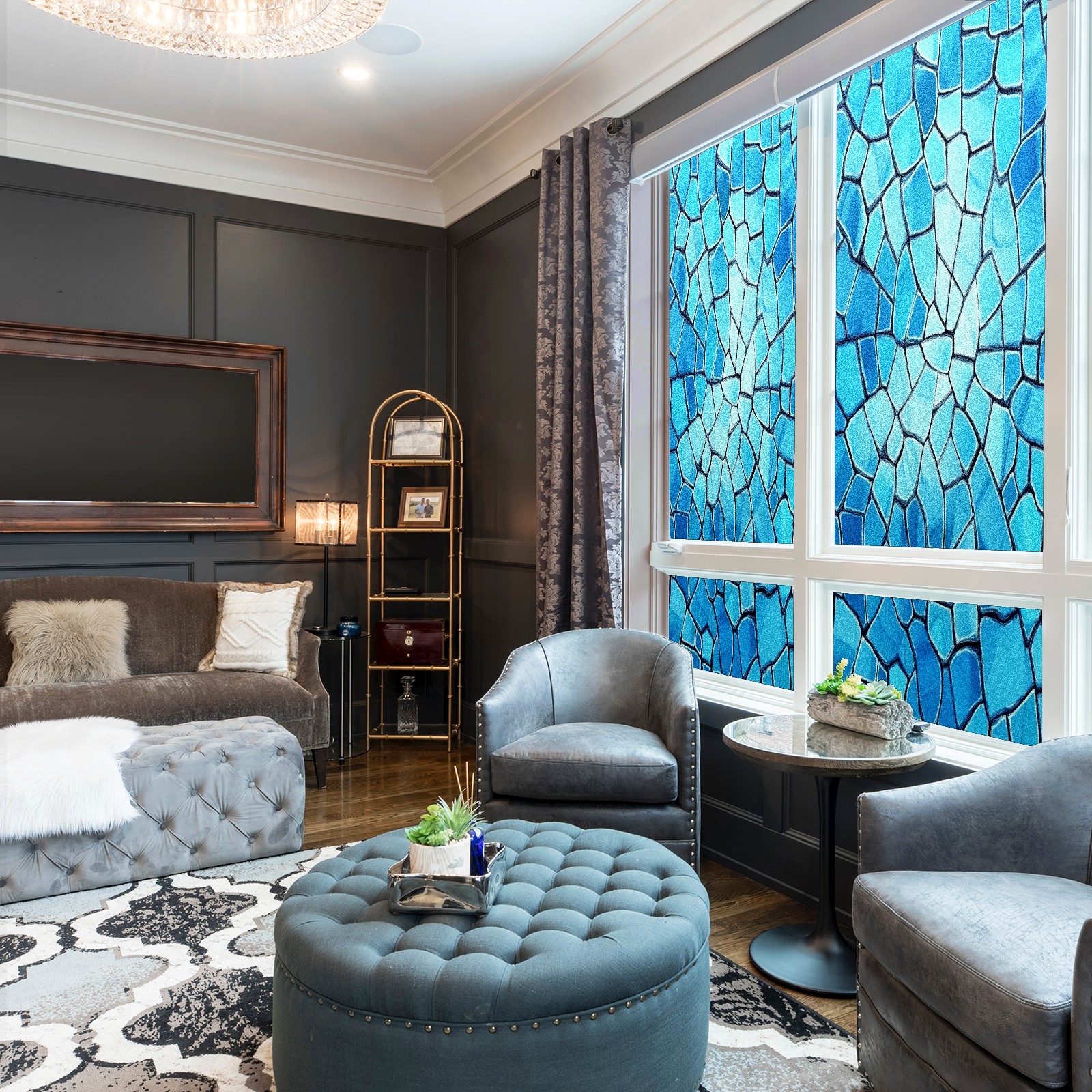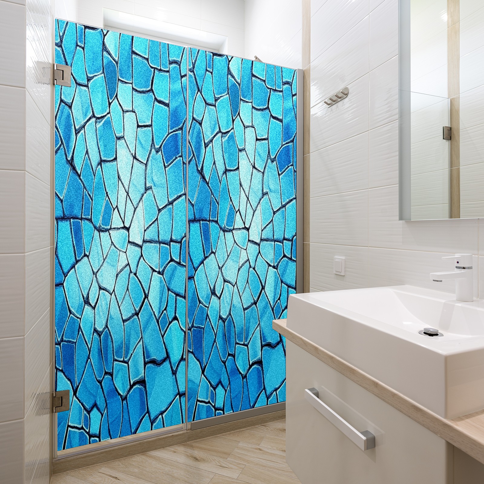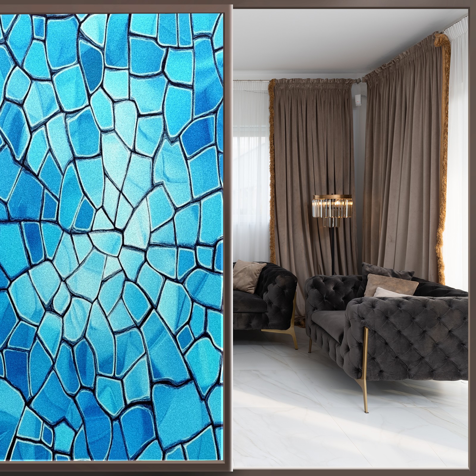 Matte Privacy Window Film | Static Cling, One-Way Glass Insulation Film, UV Blocking & Heat Insulating | Non-Adhesive, Removable for Home, Office & BathroomBlue