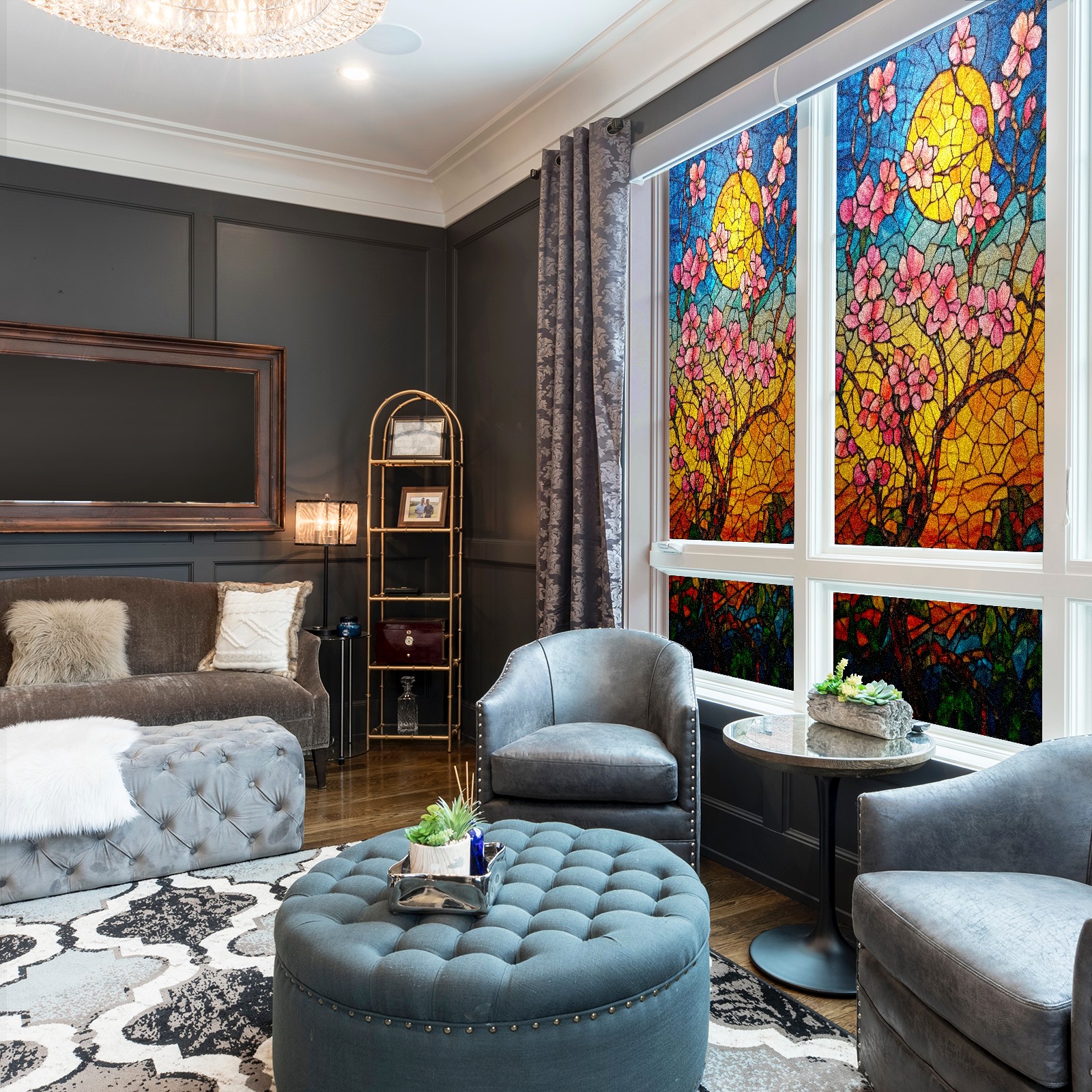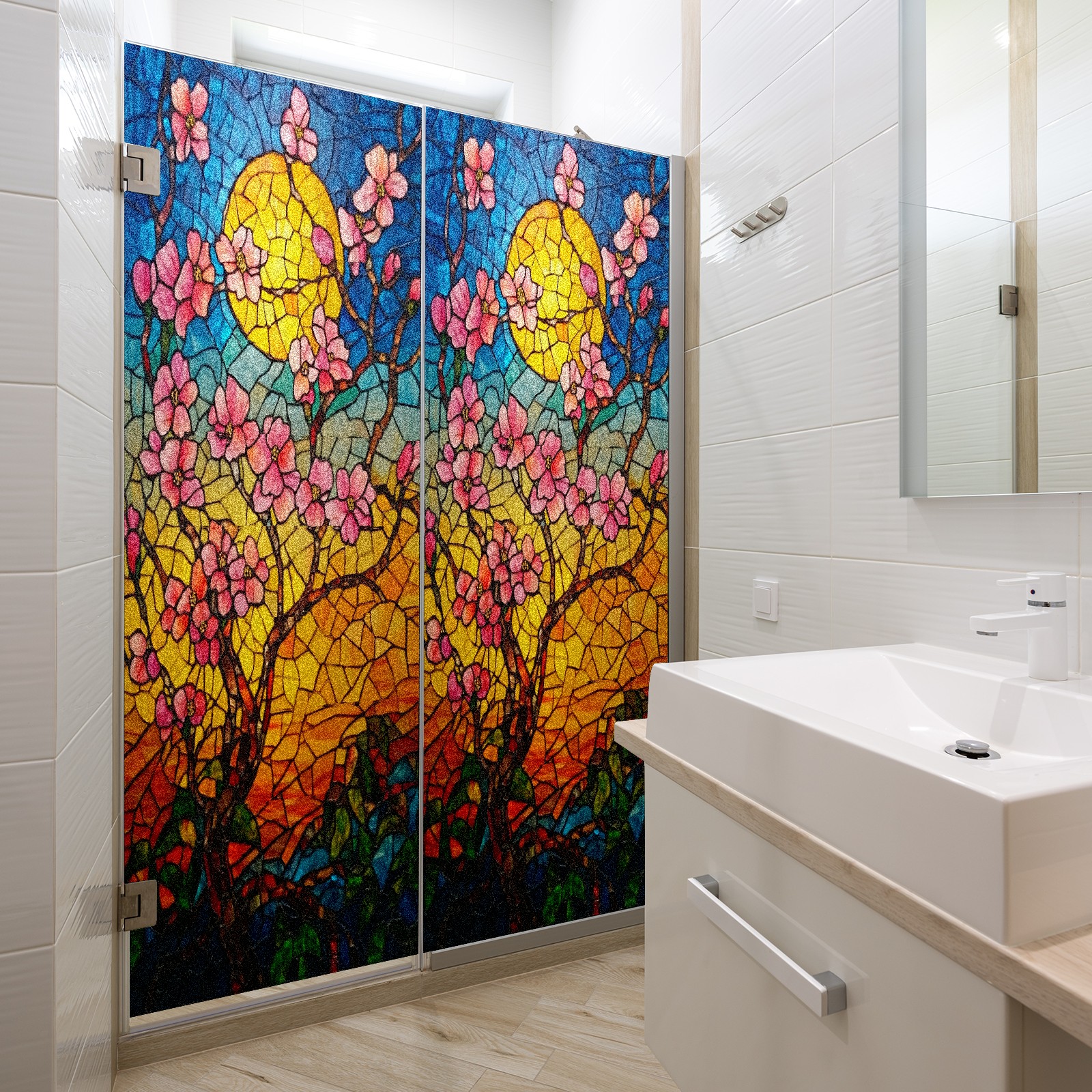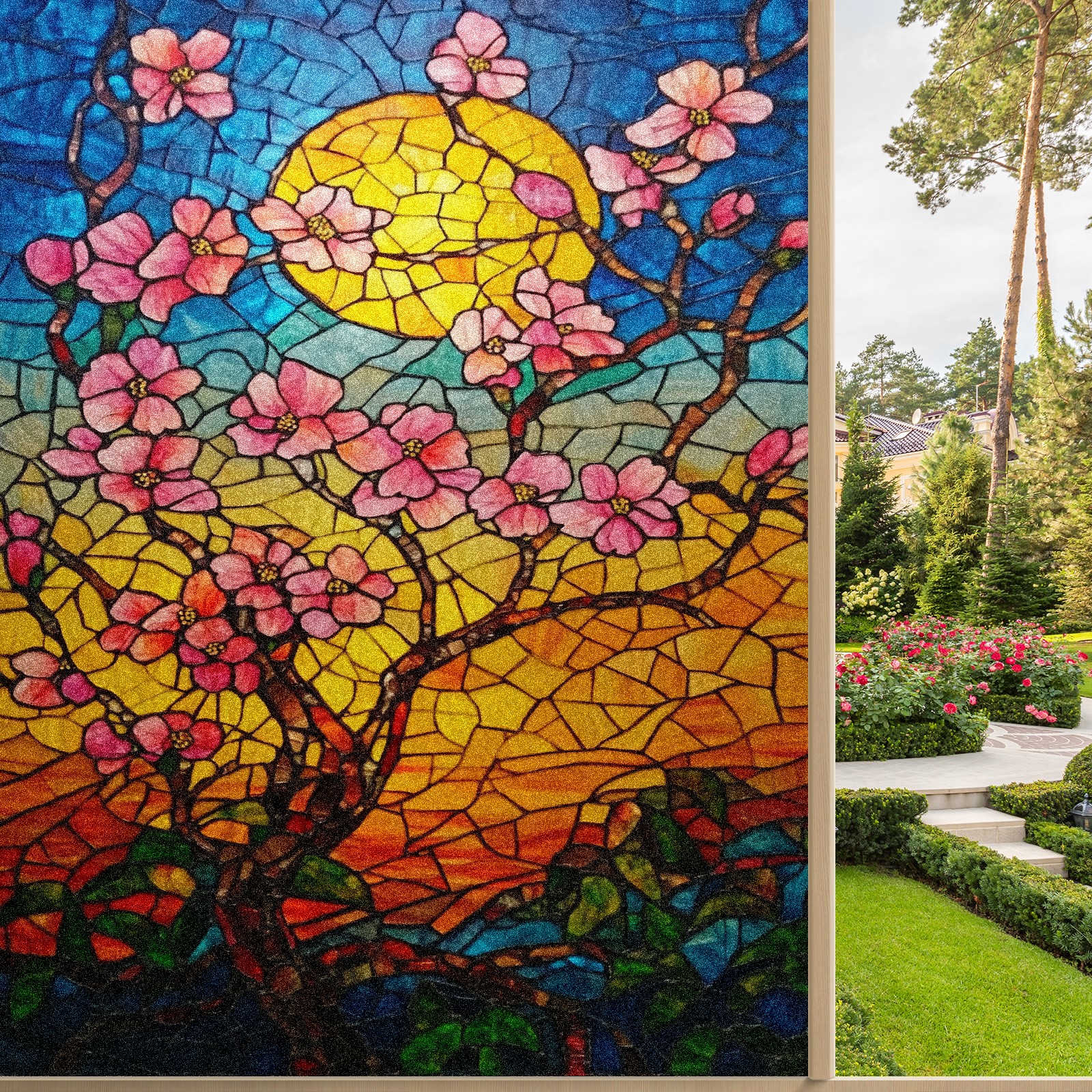 Matte Privacy Window Film | Static Cling, One-Way Glass Insulation Film, UV Blocking & Heat Insulating | Non-Adhesive, Removable for Home, Office & BathroomCherry Blossoms