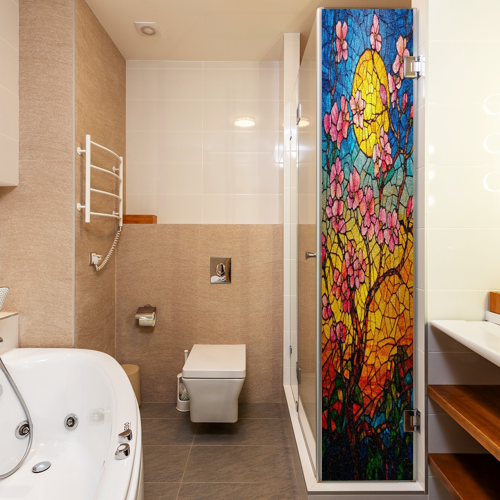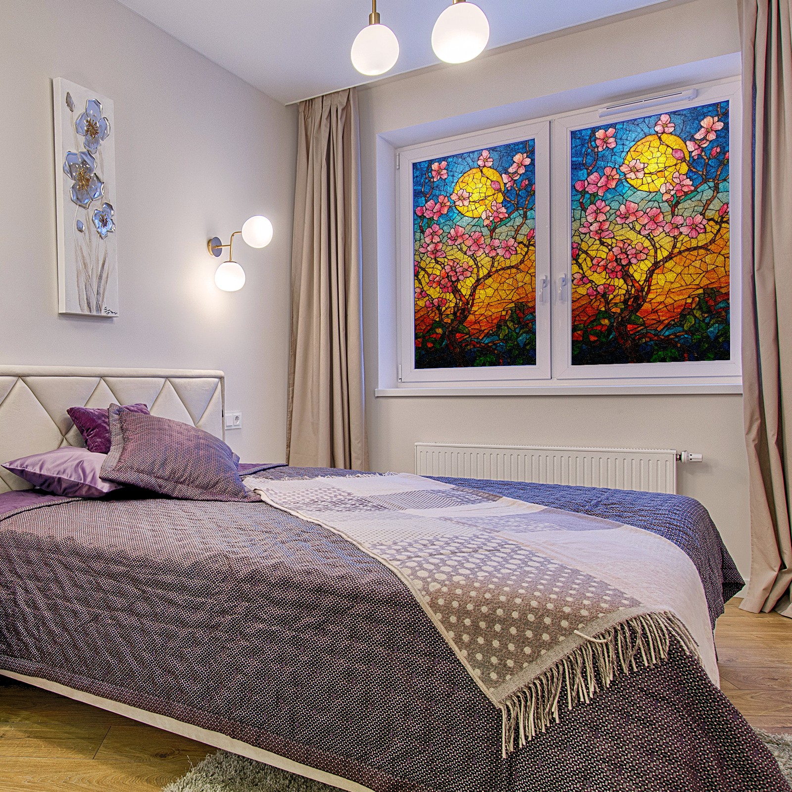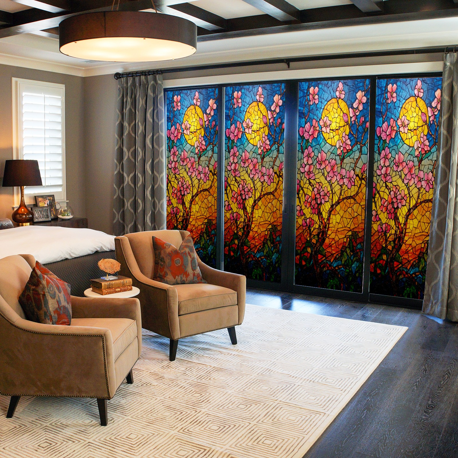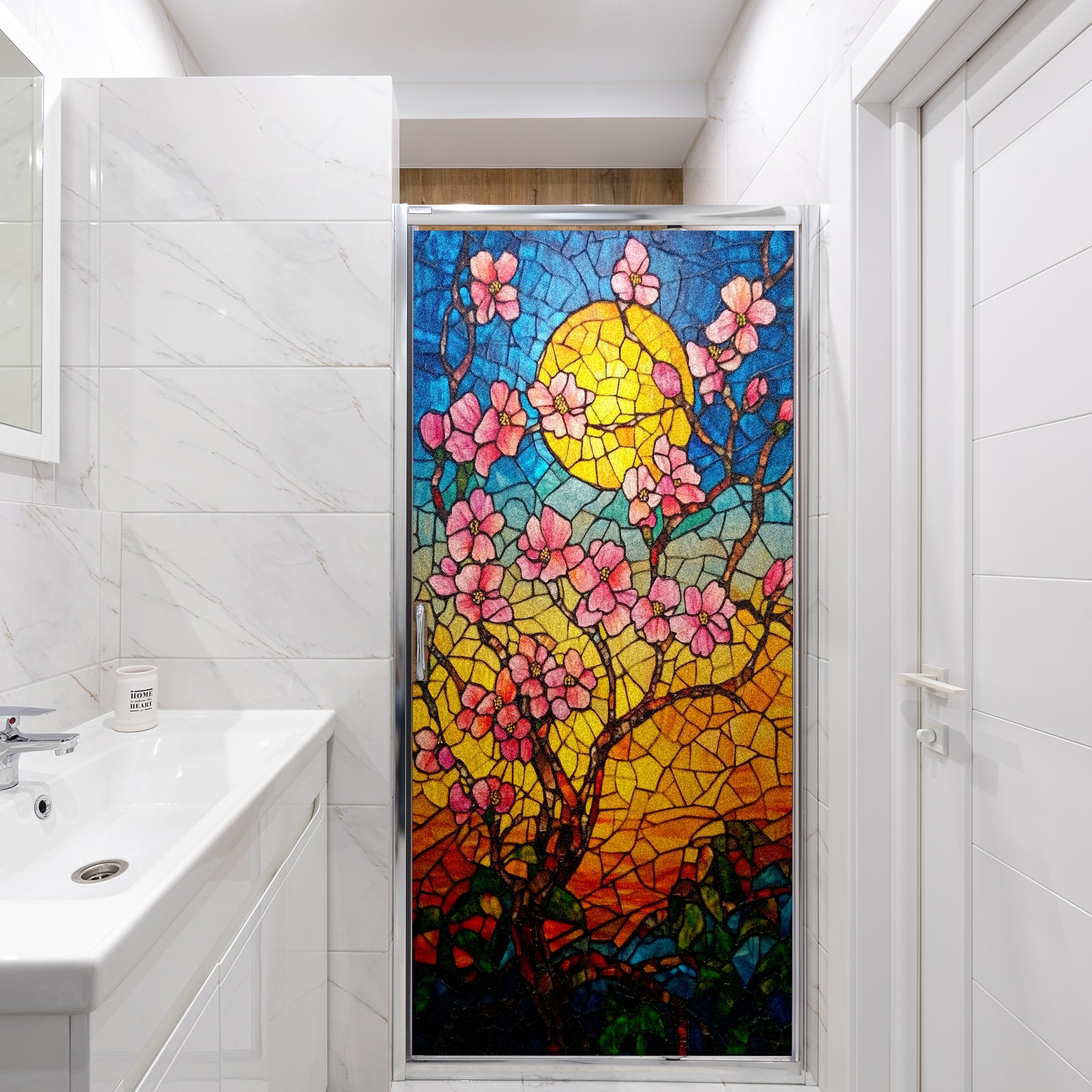 Matte Privacy Window Film | Static Cling, One-Way Glass Insulation Film, UV Blocking & Heat Insulating | Non-Adhesive, Removable for Home, Office & BathroomCherry Blossoms