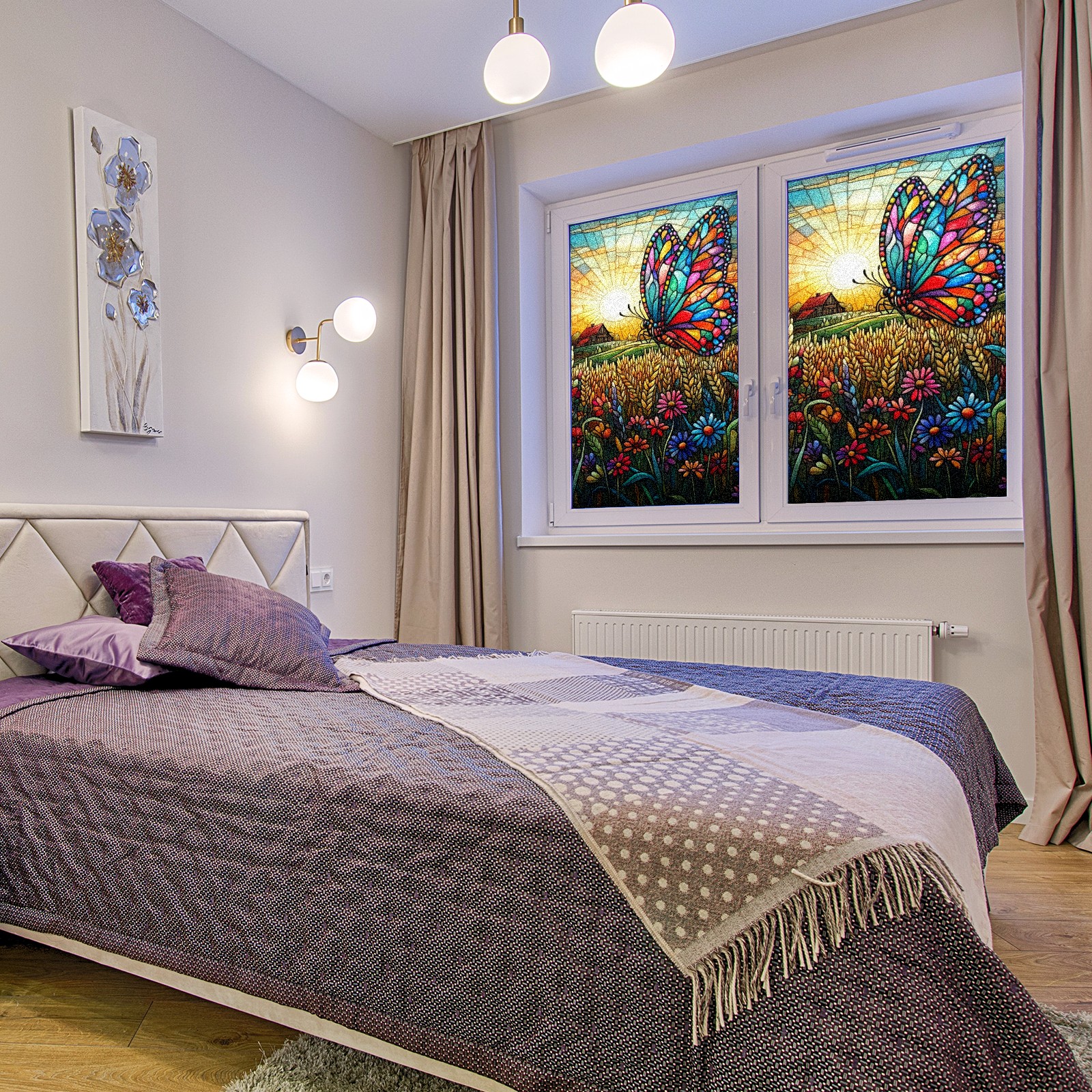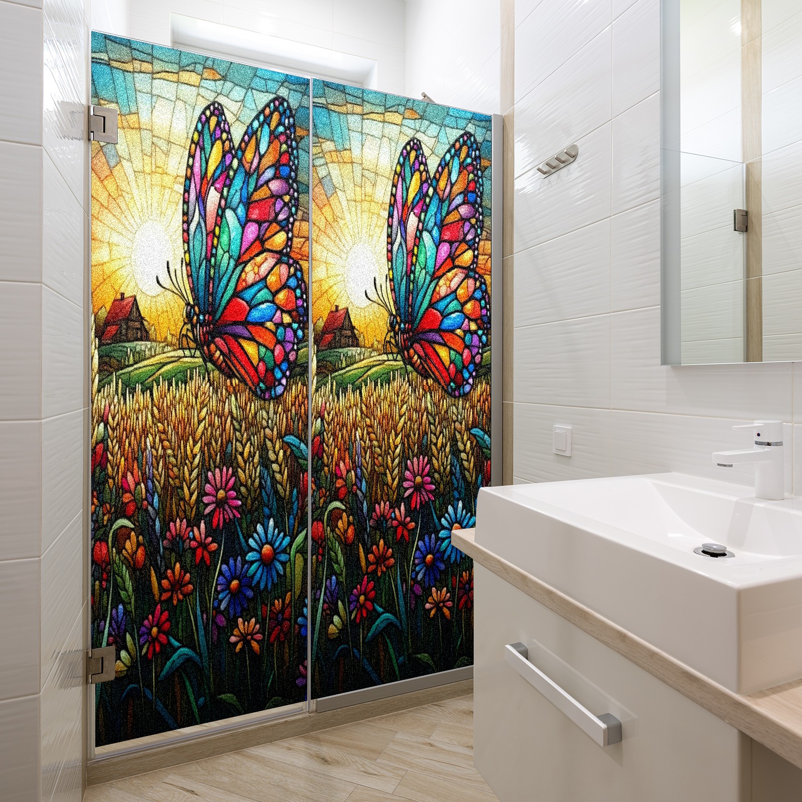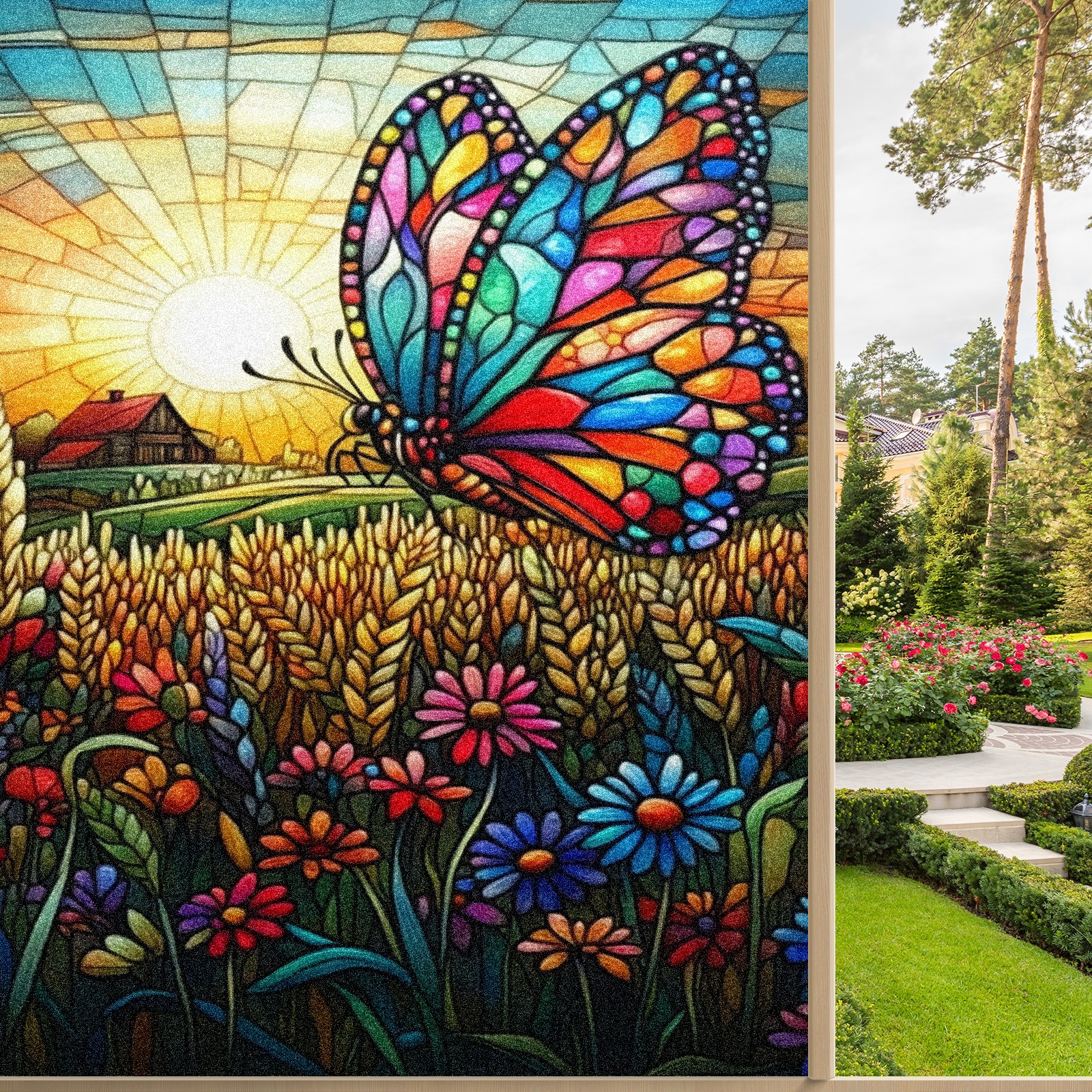 Matte Privacy Window Film | Static Cling, One-Way Glass Insulation Film, UV Blocking & Heat Insulating | Non-Adhesive, Removable for Home, Office & BathroomColorful Butterfly