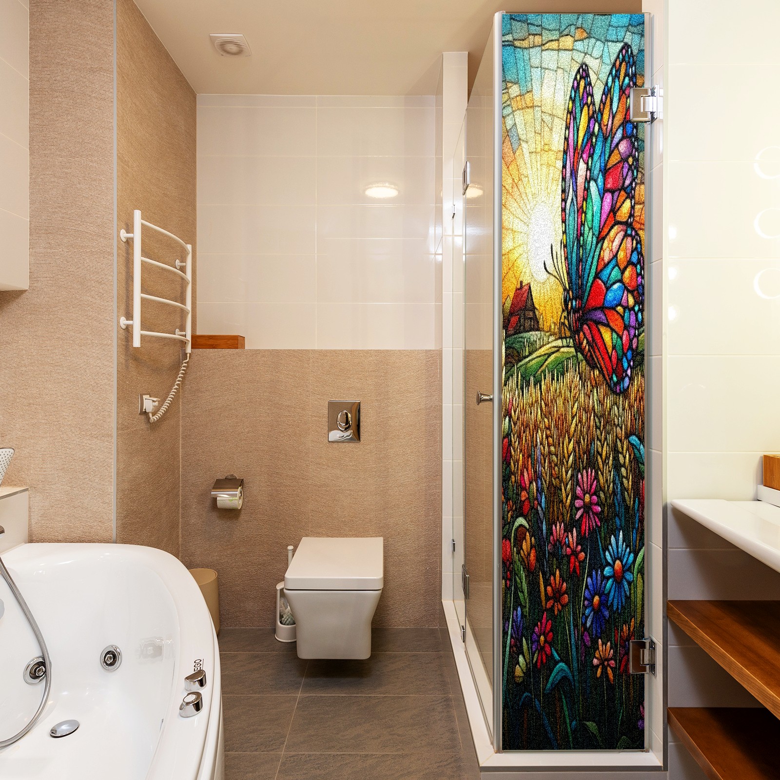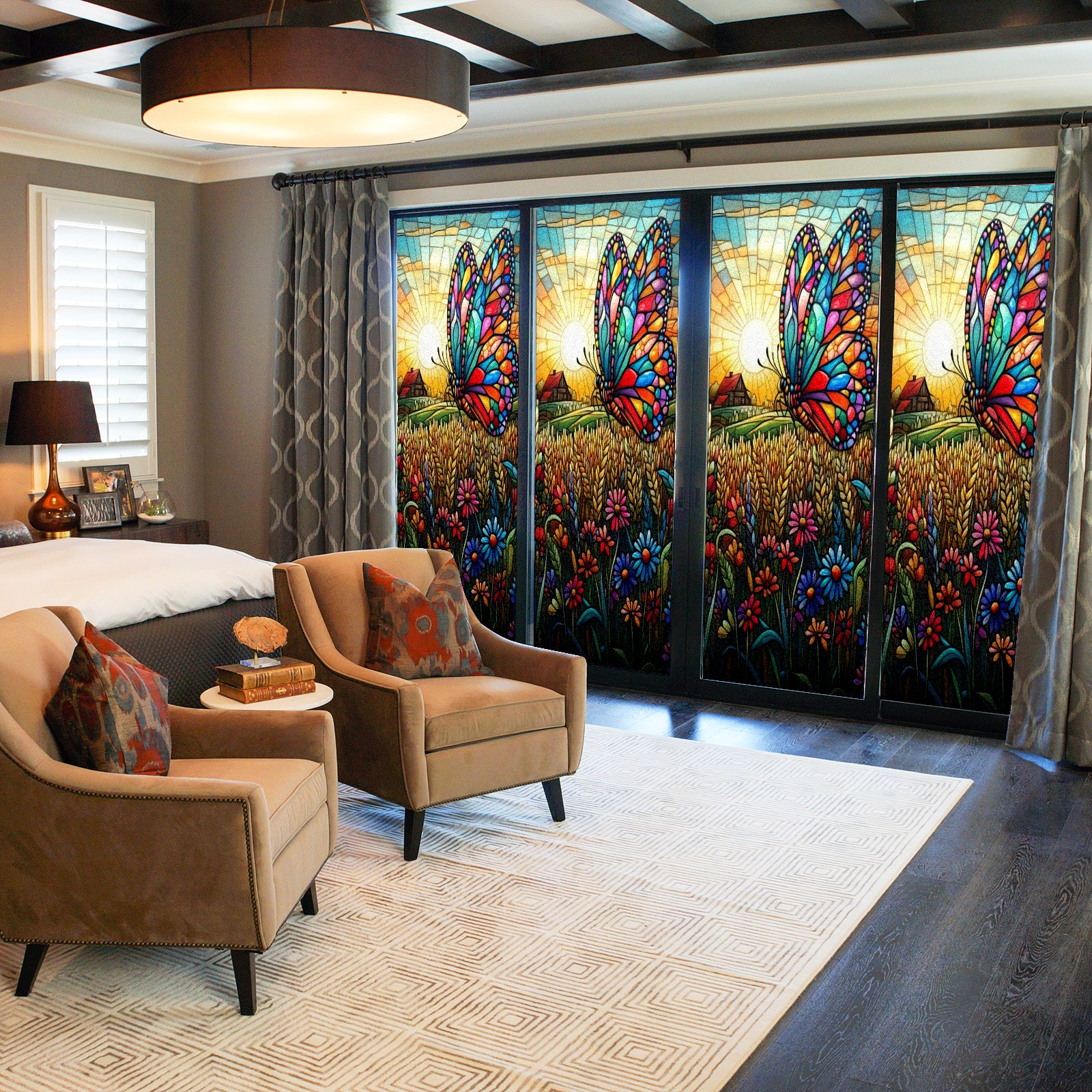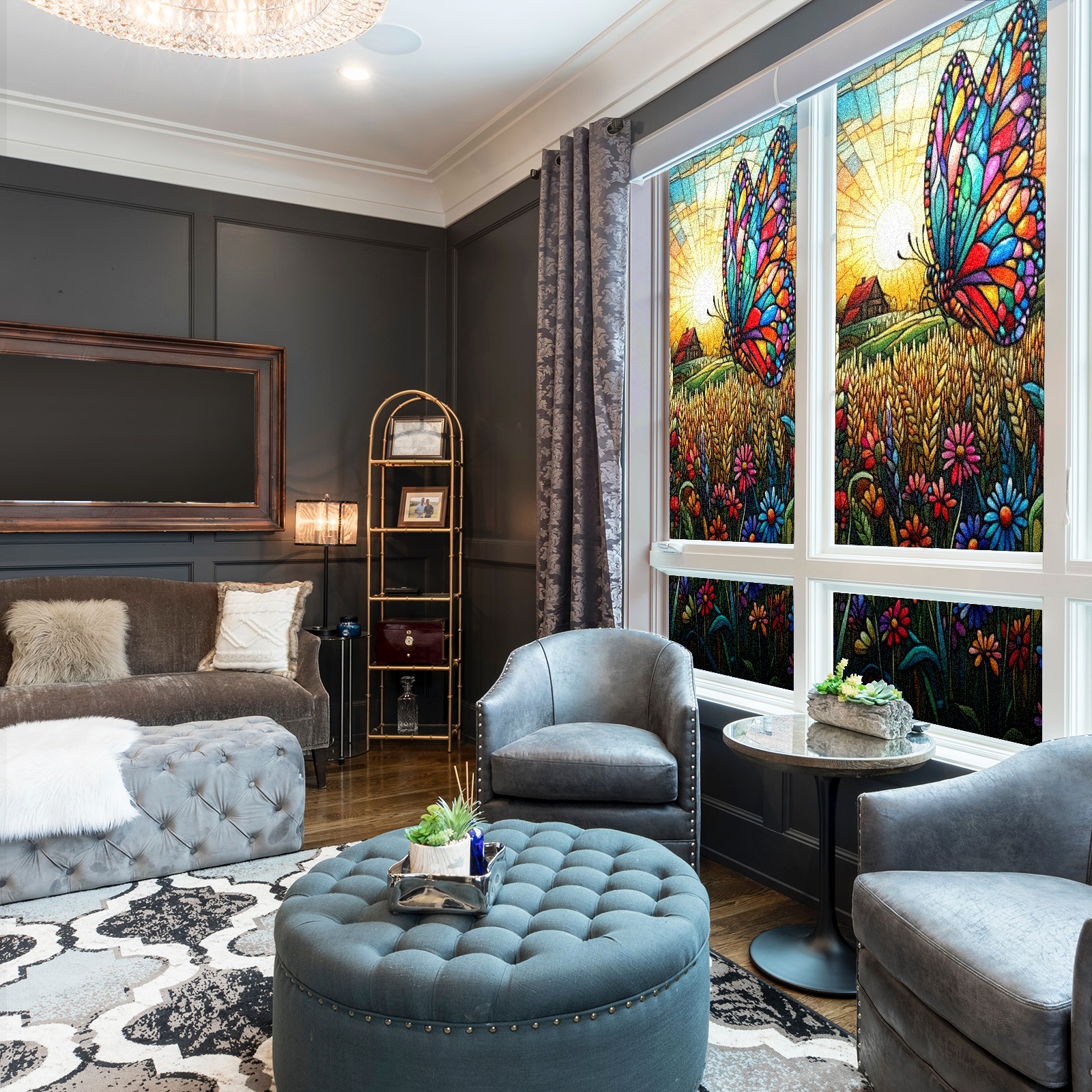Matte Privacy Window Film | Static Cling, One-Way Glass Insulation Film, UV Blocking & Heat Insulating | Non-Adhesive, Removable for Home, Office & BathroomColorful Butterfly