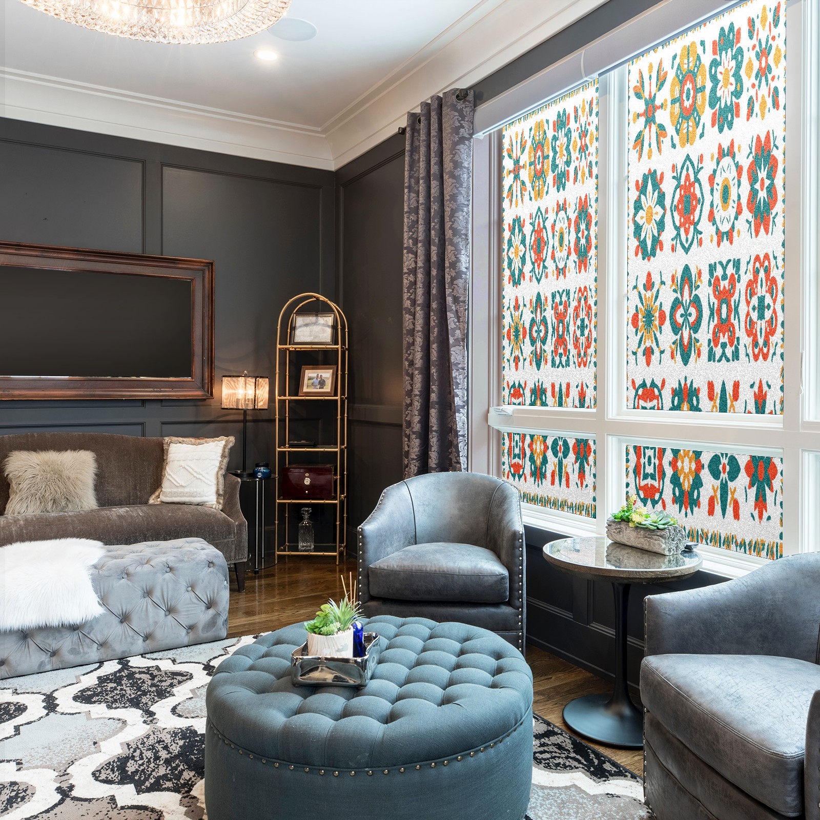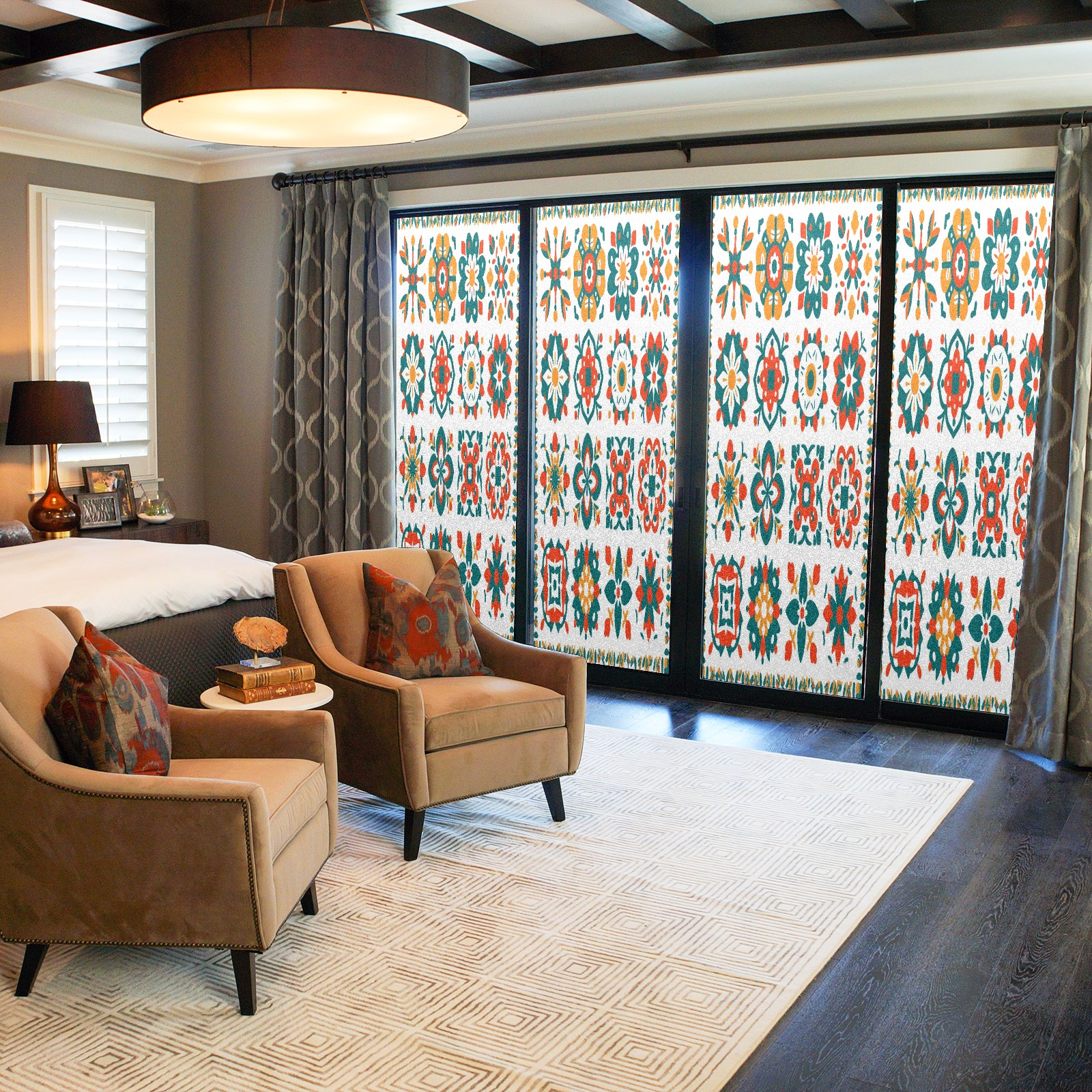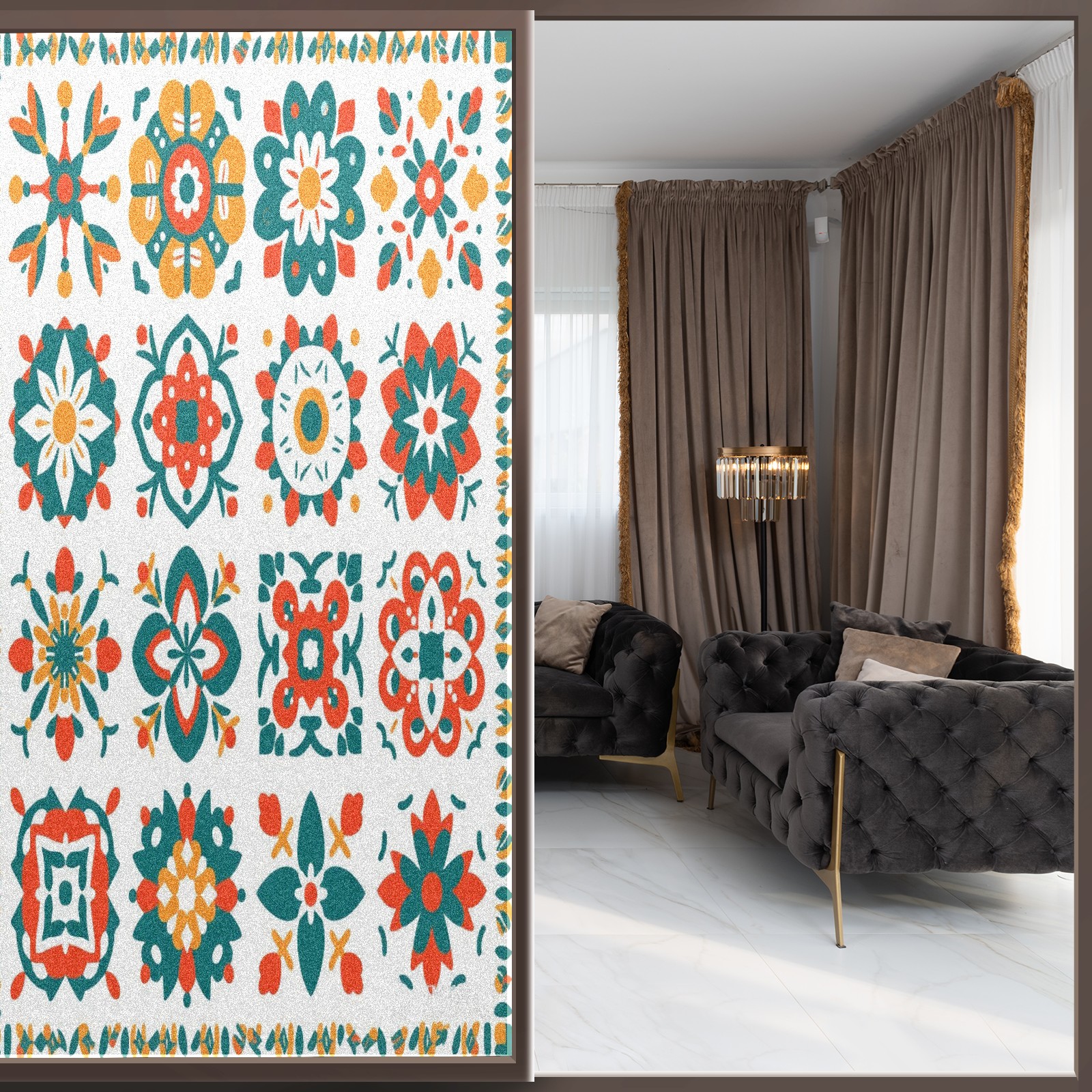 • <p>Our film is made of food-grade PET material, safe and odorless, mother and baby families can rest assured that the use of explosion-proof impact resistance more peace of mind. High-definition full-sheet printing, delicate pattern does not fade, easy to enhance the tone of the home, suitable for a variety of decorative styles. Single-sided frosted design, effective protection of privacy, clear view during the day, night anti-peeping without embarrassment. Electrostatic adsorption installation, glue-free without leaving marks, can be repeatedly adjusted for use. It can also block ultraviolet rays, sunscreen insulation, protect furniture from fading, energy saving and more comfortable!&nbsp;&nbsp;</p>