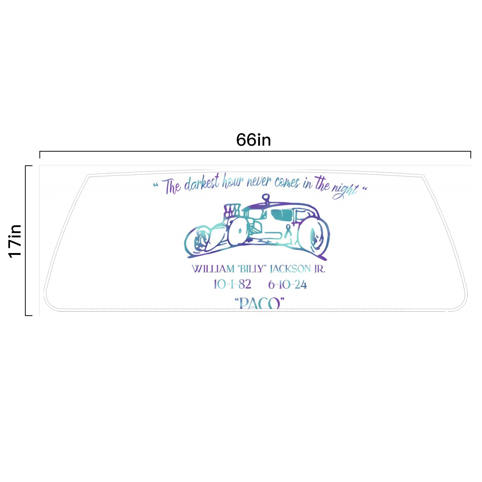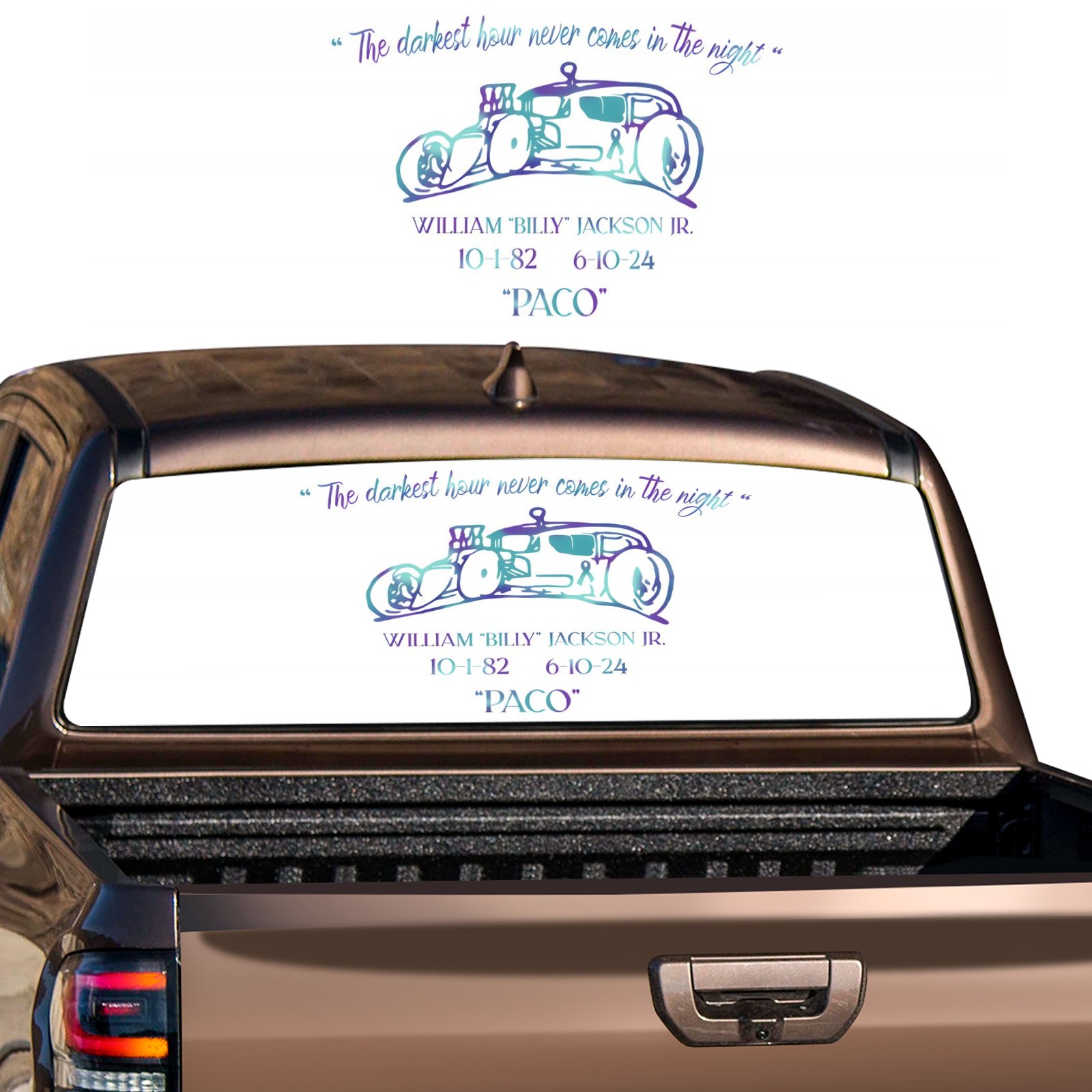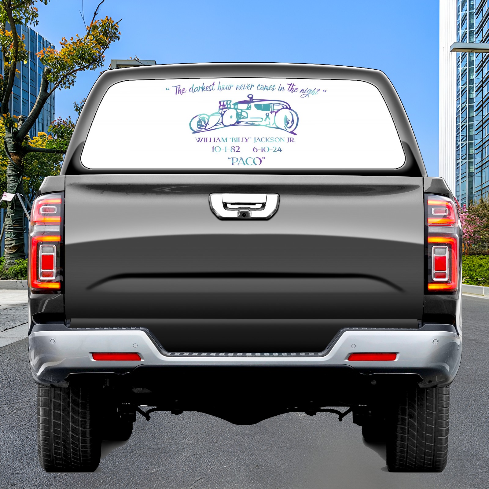 <p><strong>Truck Rear Window Graphics Decals Pickup Trucks Back Window Film Stickers 66" x 22" Perforated Vinyl Wrap Stickers Decorations for Car Rear Window</strong></p><p><strong><br /></strong></p><p><strong>Features :</strong></p><p>- Size of the rear window decals for trucks is 66x22 Inches (168x56cm).</p><p>- High quality perforated vinyl window film, one way vision sticker.</p><p>- Perforated is see through from the inside but not from outside.</p><p>- Clear printing, waterproof and durable.</p><p>- The car back window graphics stickers fits most truck and makes your vehicle more beautiful. </p><p><br /></p><p><strong>【Installation Instructions】</strong></p><p><strong>1. CLEAN SURFACE -</strong> Clean the rear window thoroughly and make sure the surface clean.</p><p><strong>2. STICK THE DECALS -</strong> Tear off the paper on the back and stick the decal on the window.</p><p><strong>3. SCRAPE OFF AIR BUBBLES -</strong> Use a squeegee or other card to scrape off the excess air bubbles.</p><p><strong>4. TRIM THE EXCESS -</strong> Use a knife to cut off the excess stickers of the window, finally complete.</p><p><br /></p><p>1. Please measure the size before purchasing, back window graphics decal for truck can be cut to your desired size.</p><p>2.The graphics stickers for truck back window is a great gift for yourself also can as a birthday / halloween / christmas gift for your friends and family.</p>