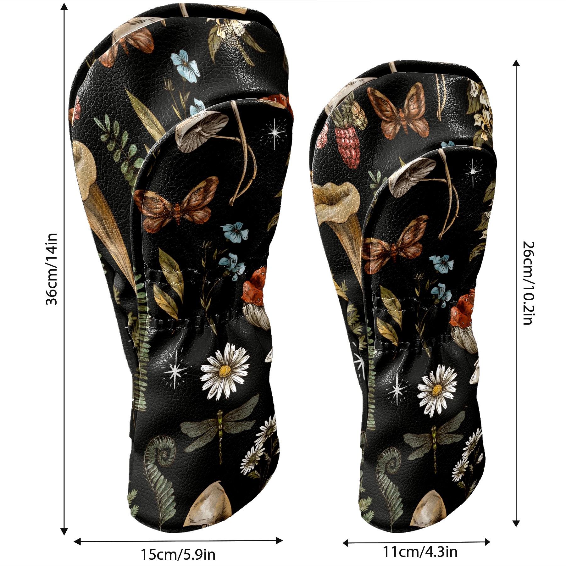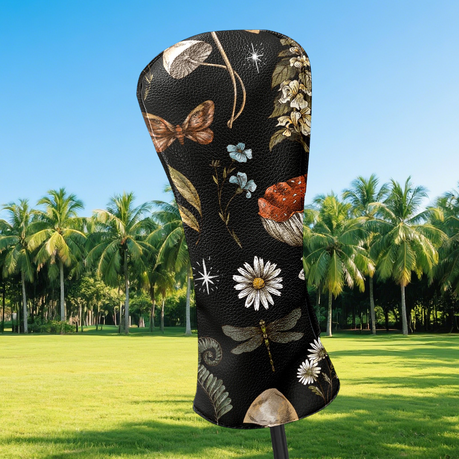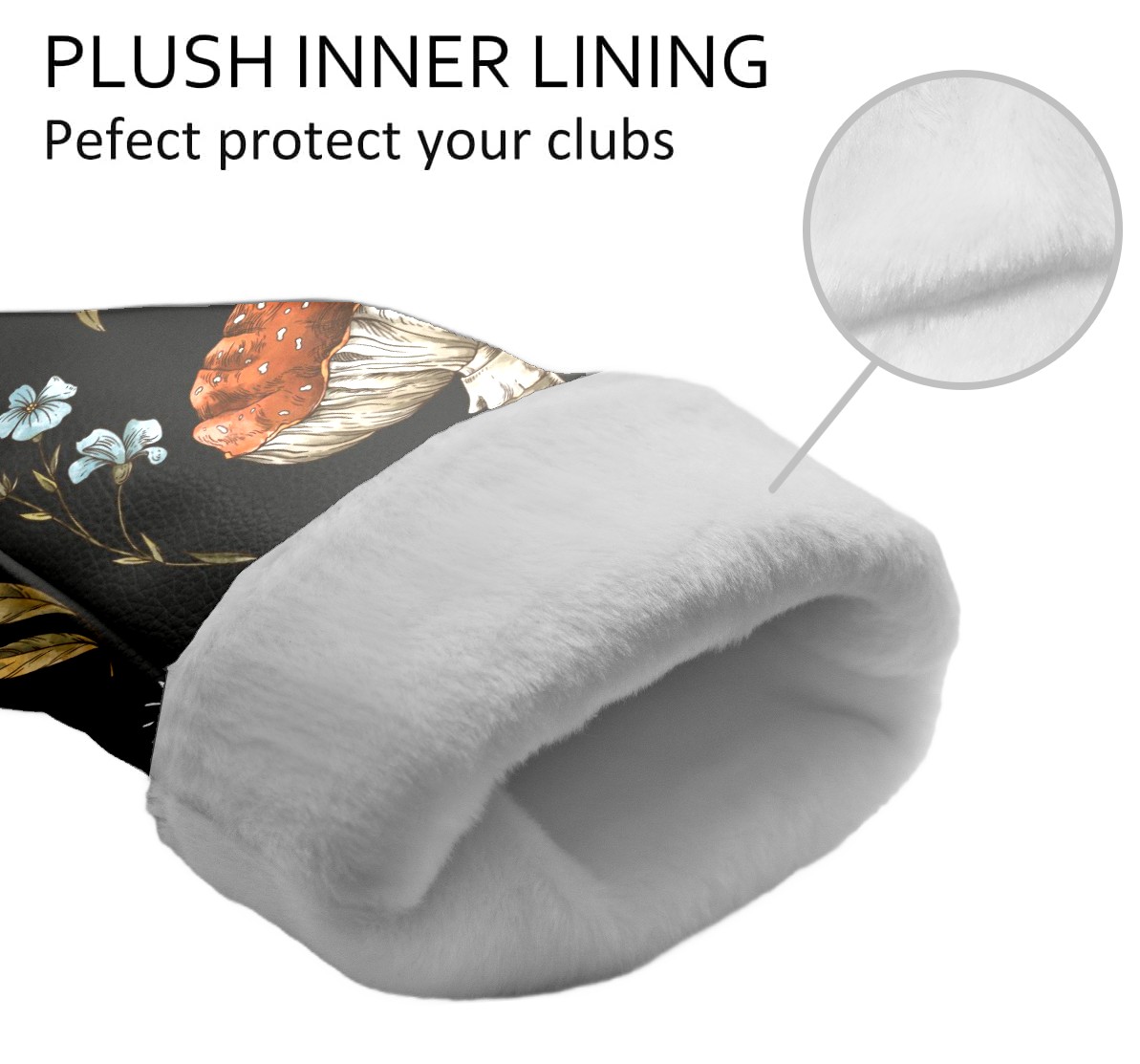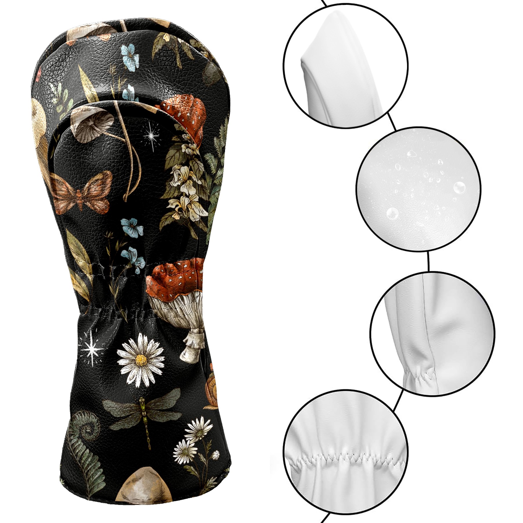 Black Golf Club Head Cover Golf Accessories Head Covers Set for Driver & Fairway Woods Vintage Botanical Mushrooms