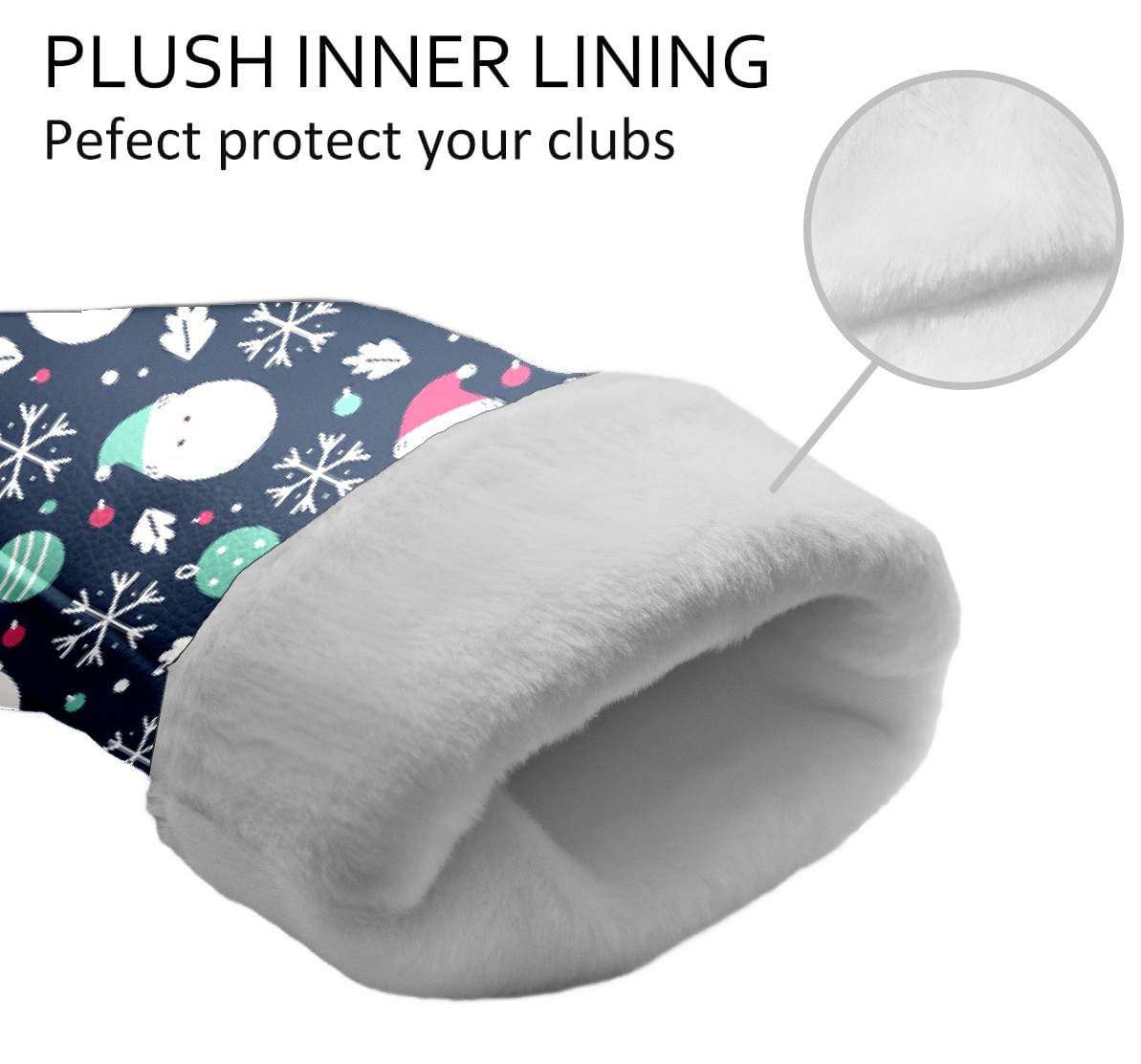 Black Golf Club Head Cover Golf Accessories Head Covers Set for Driver & Fairway Woods Snowman And Snowflake