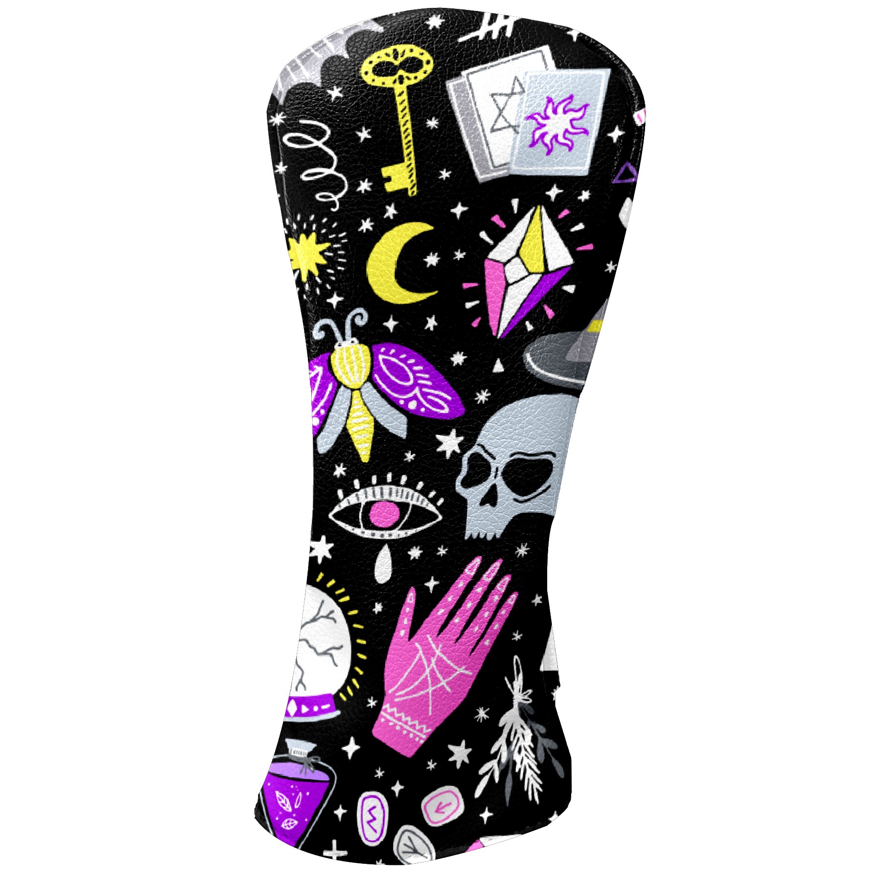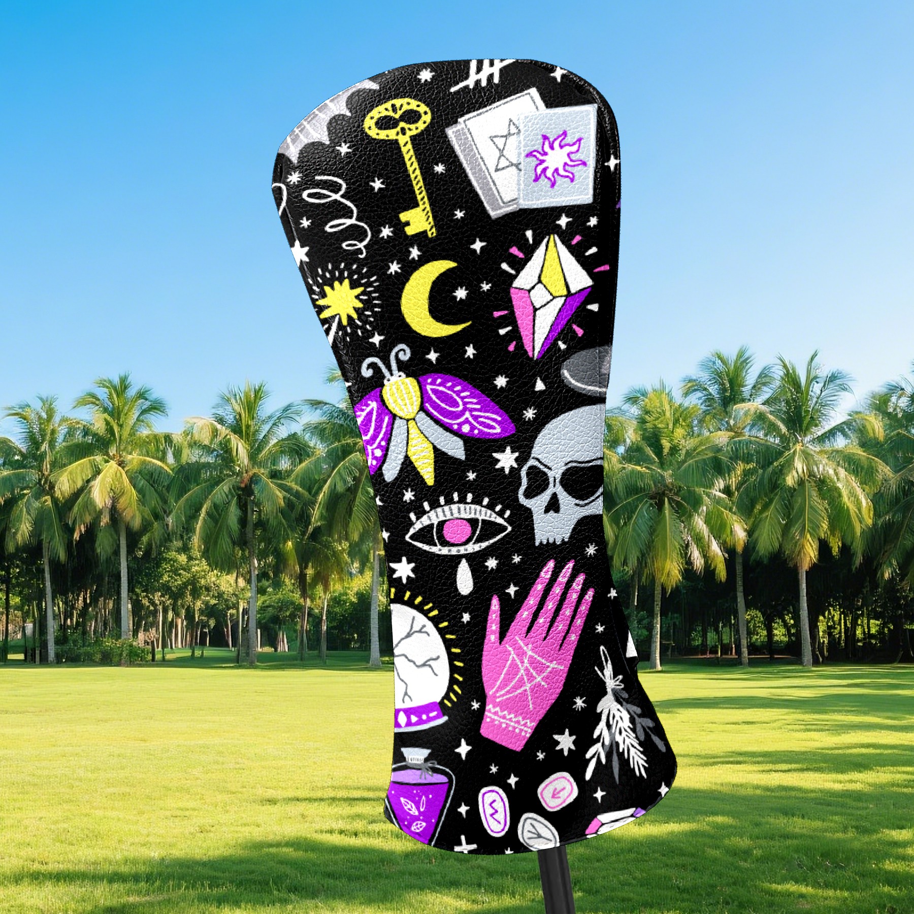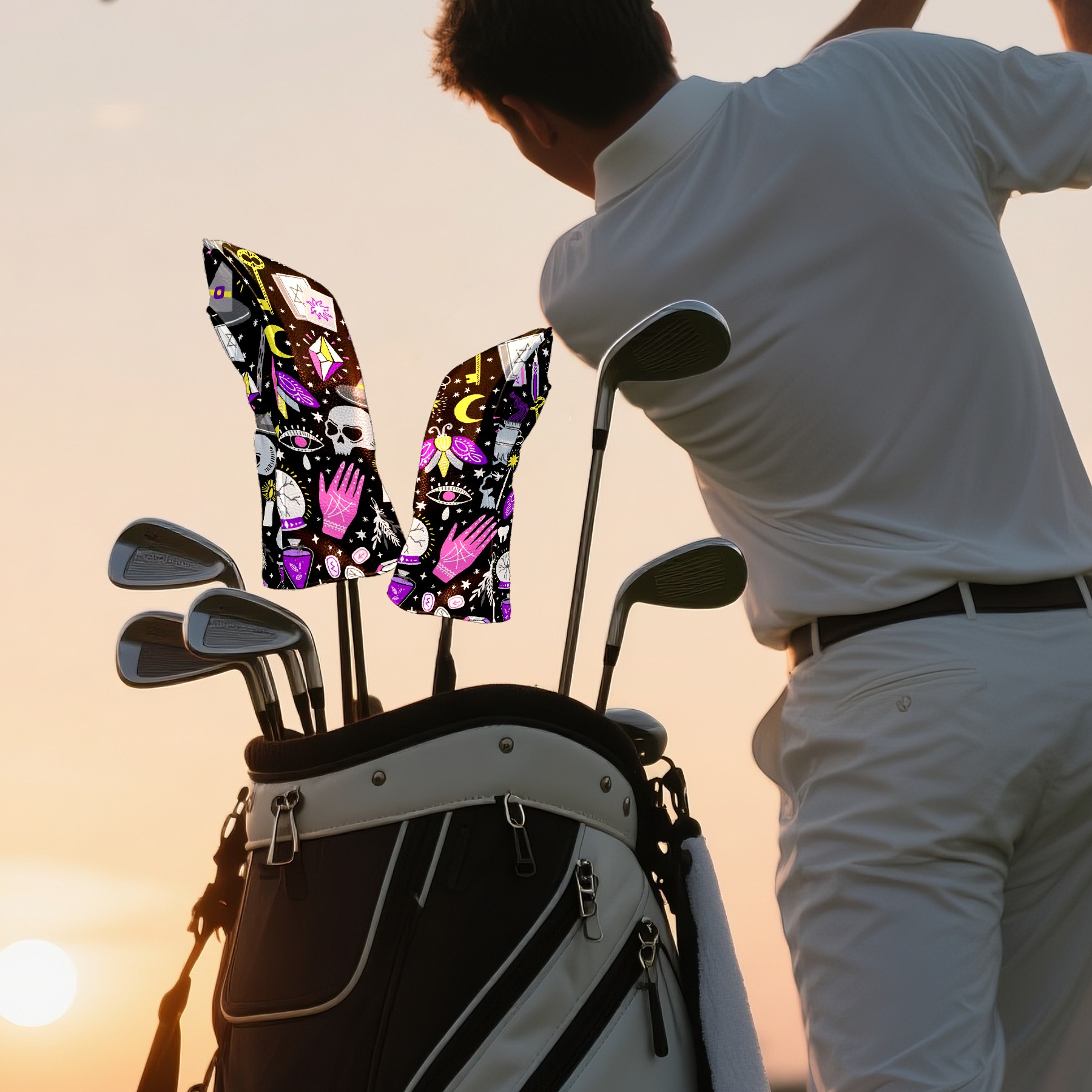 Black Golf Club Head Cover Golf Accessories Head Covers Set for Driver & Fairway Woods Halloween Bat Skull Witch