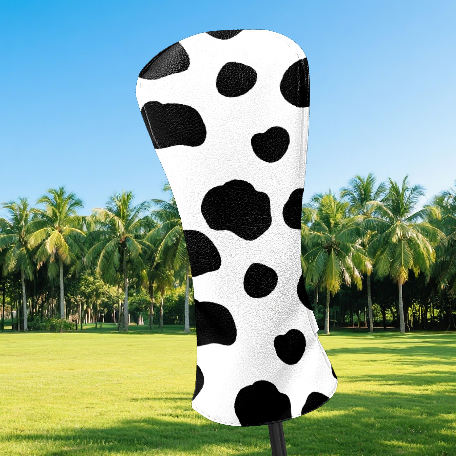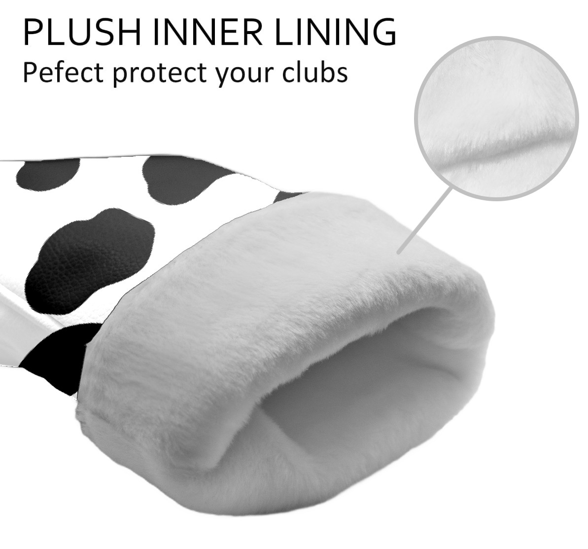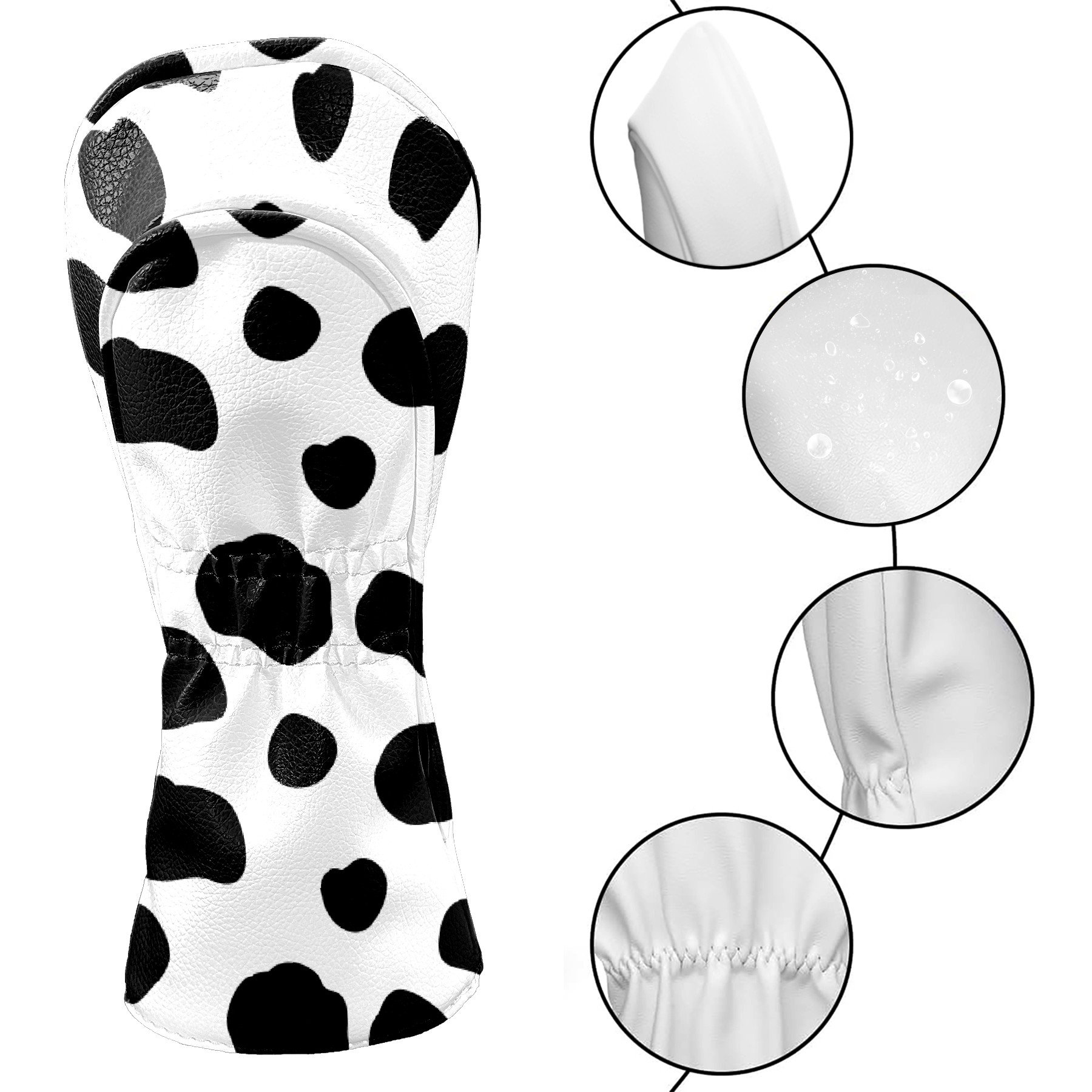 Black Golf Club Head Cover Golf Accessories Head Covers Set for Driver & Fairway Woods Black And White Cow Print