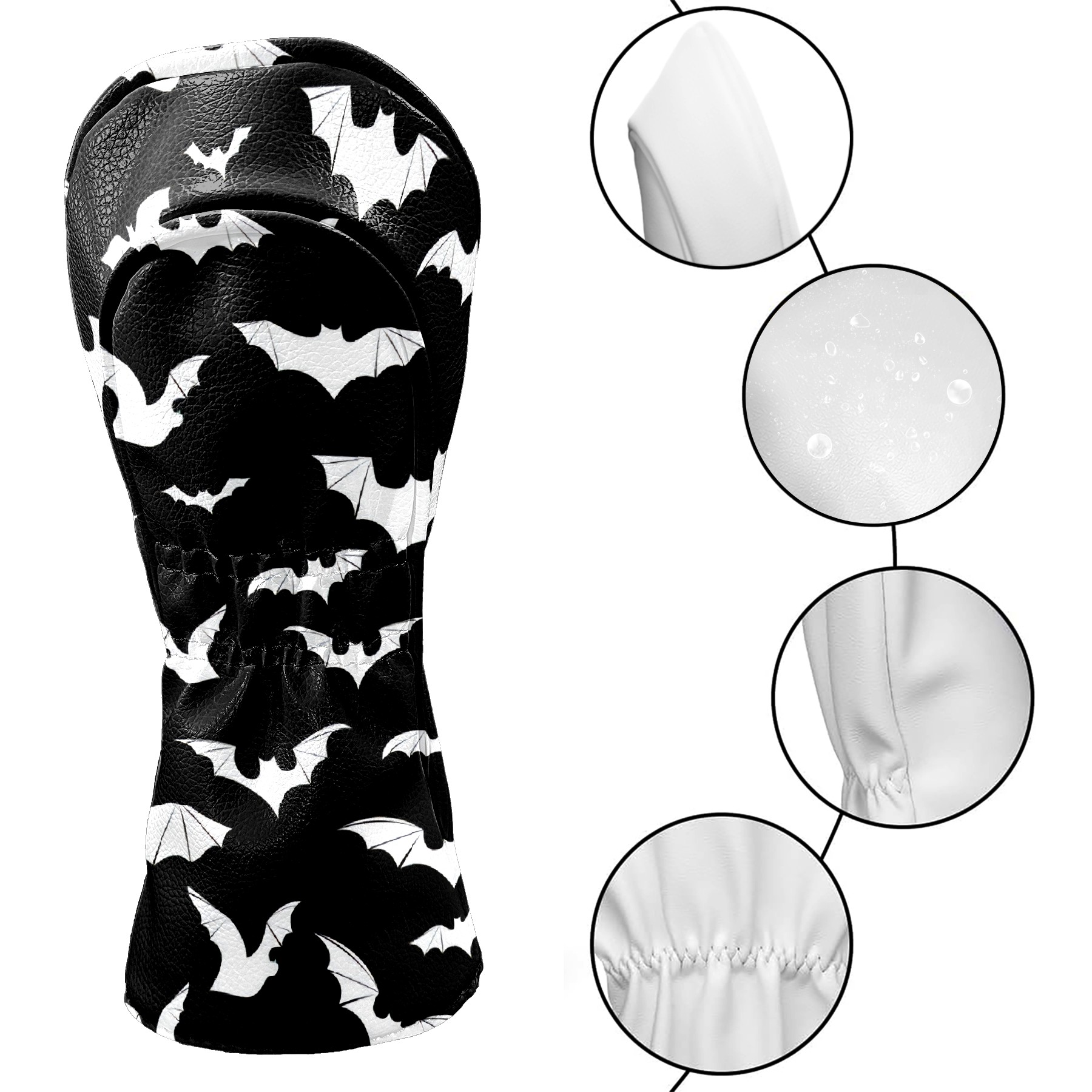 Black Golf Club Head Cover Golf Accessories Head Covers Set for Driver & Fairway Woods Black And White Goth Bats
