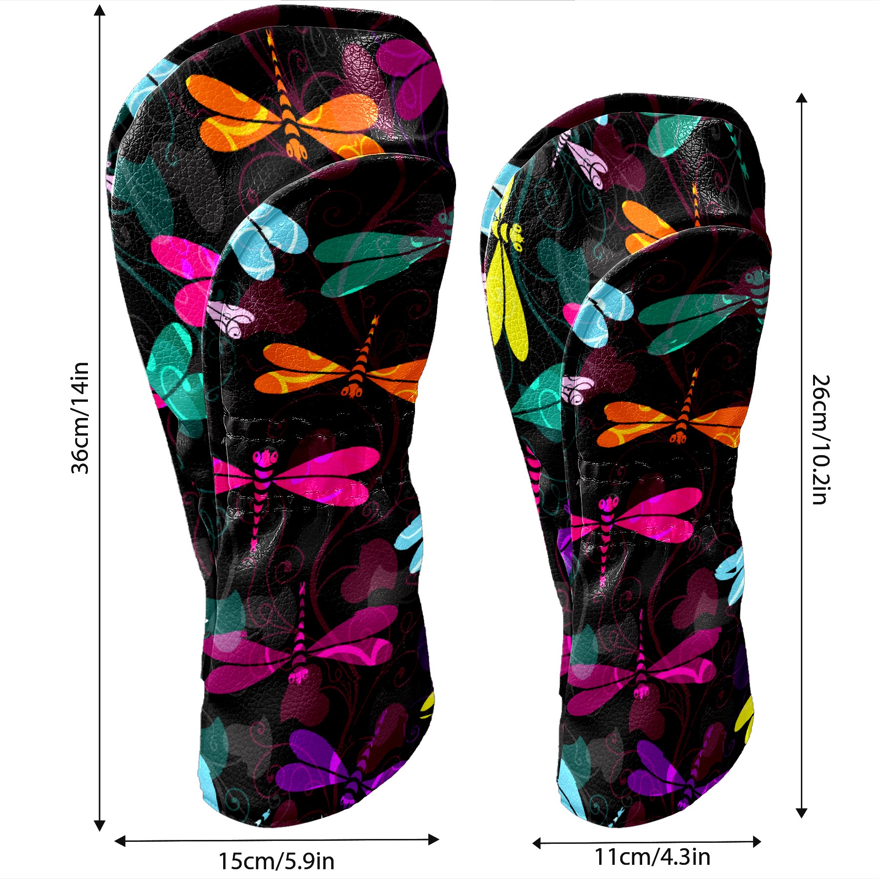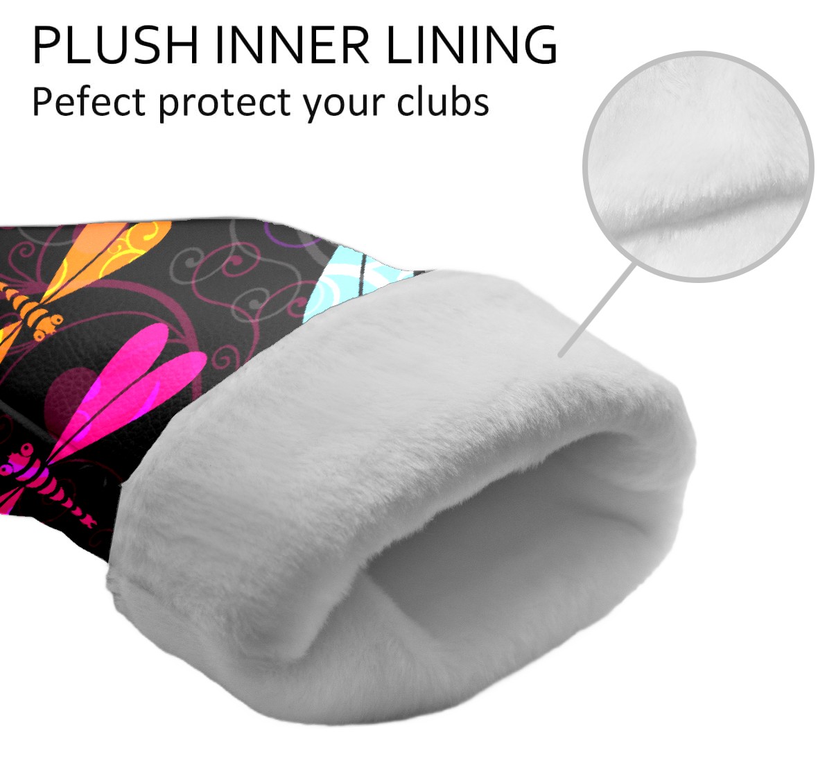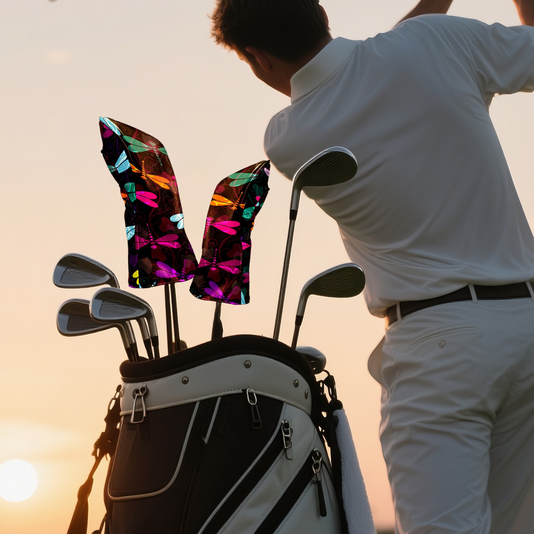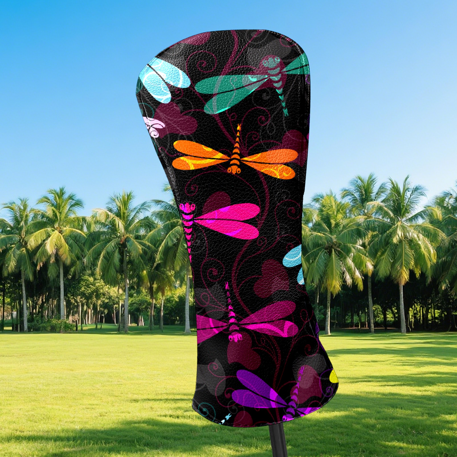 Black Golf Club Head Cover Golf Accessories Head Covers Set for Driver & Fairway Woods Colorful Insect Dragonfly Pattern