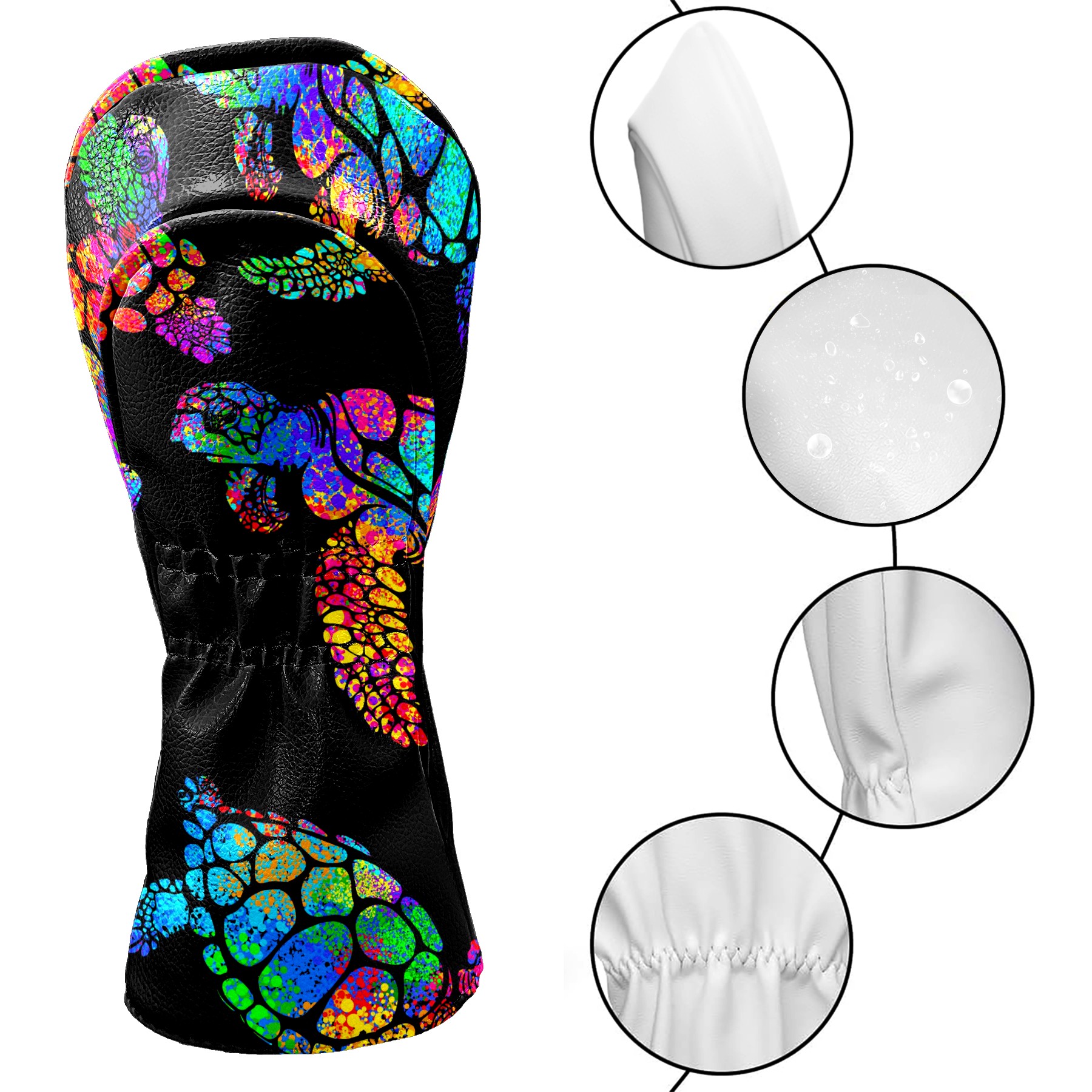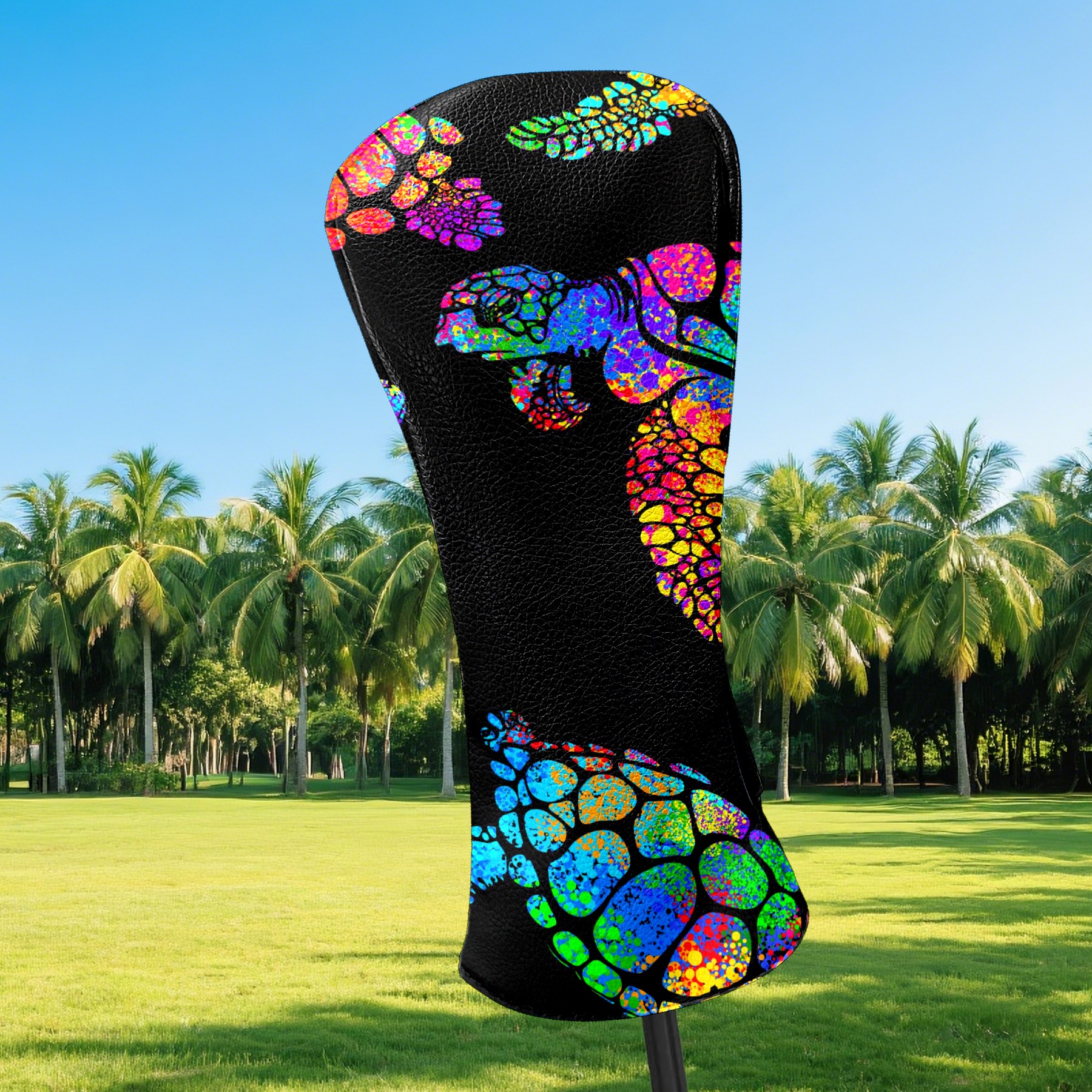 Black Golf Club Head Cover Golf Accessories Head Covers Set for Driver & Fairway Woods Colorful Sea Turtle Animal