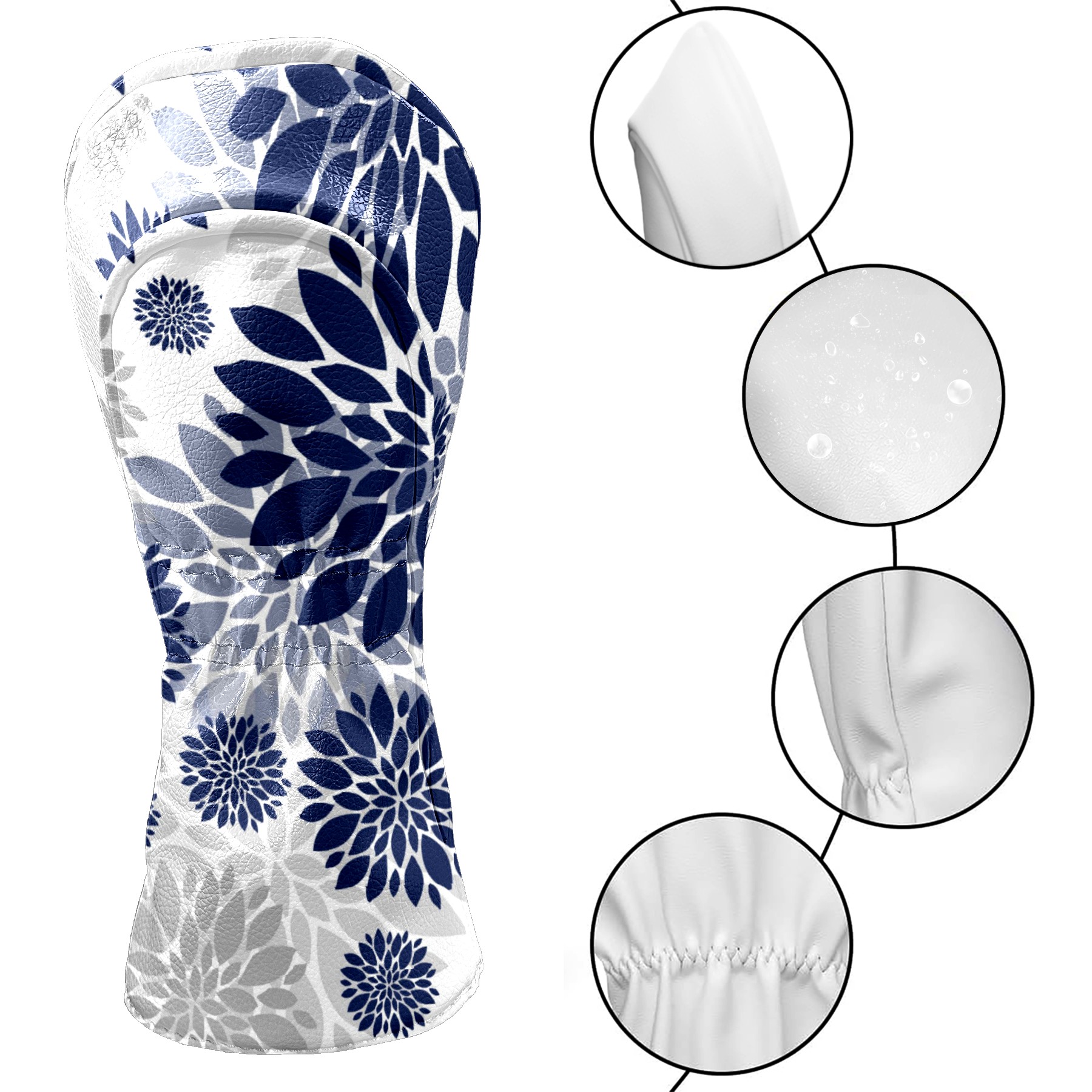 Black Golf Club Head Cover Golf Accessories Head Covers Set for Driver & Fairway Woods Navy Blue Gray Dahlia Flower Floral