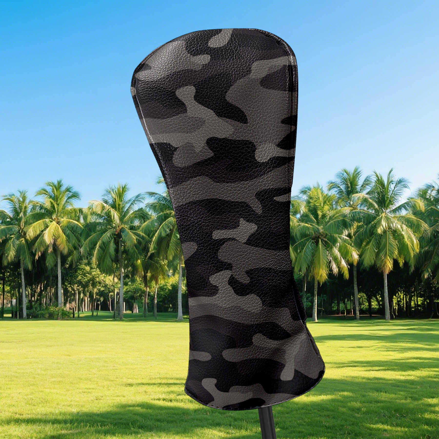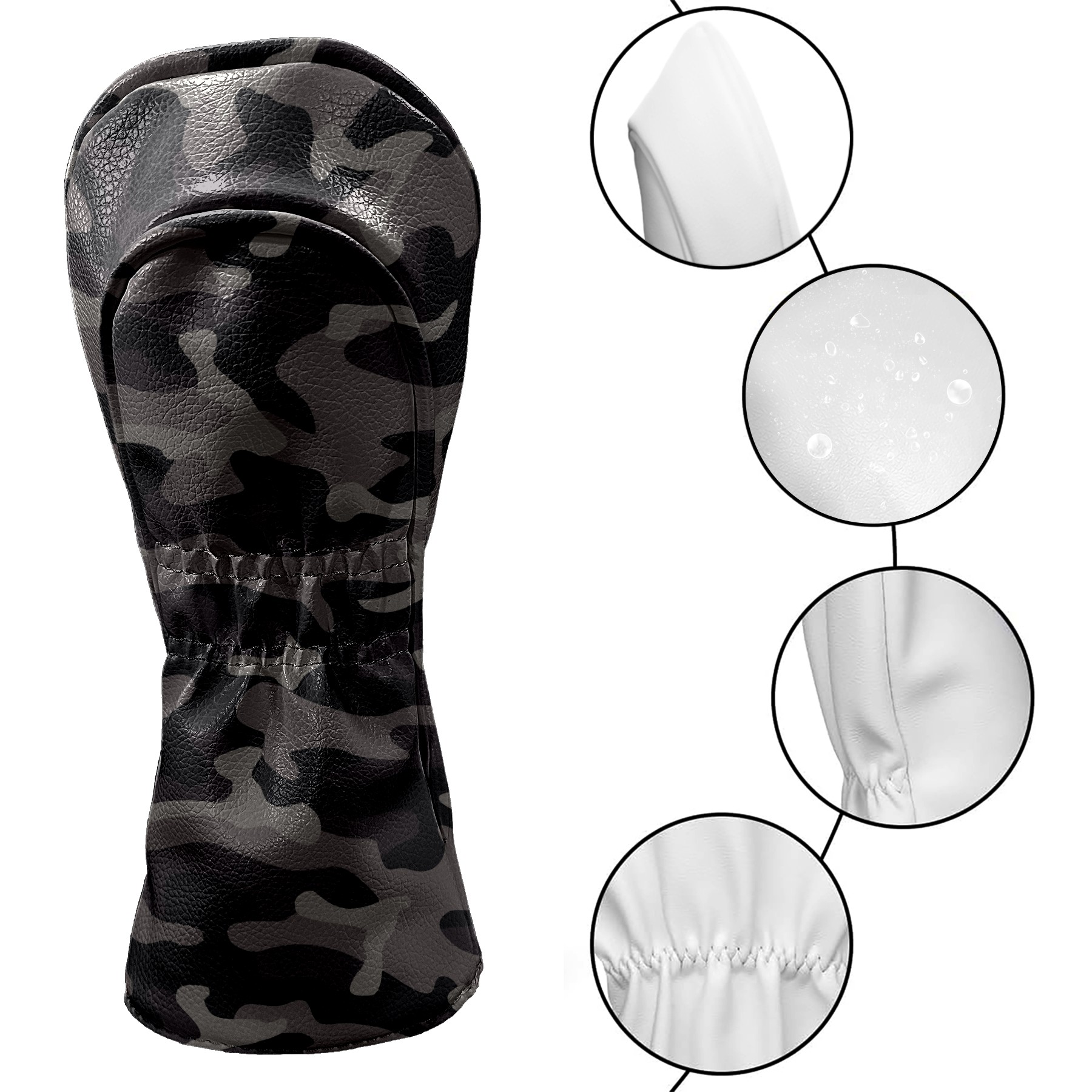 Black Golf Club Head Cover Golf Accessories Head Covers Set for Driver & Fairway Woods Dark Grey Camouflage Seamless Pattern