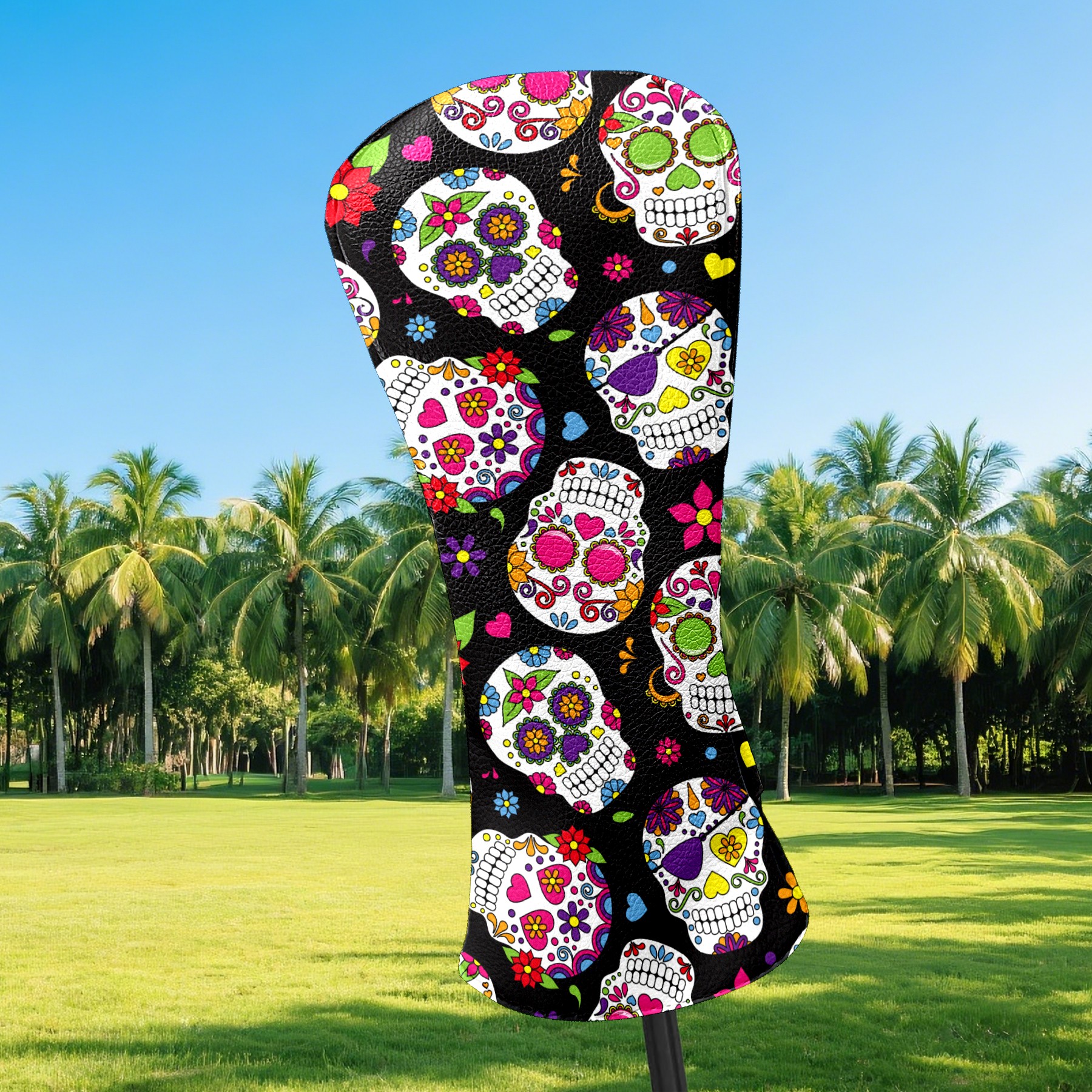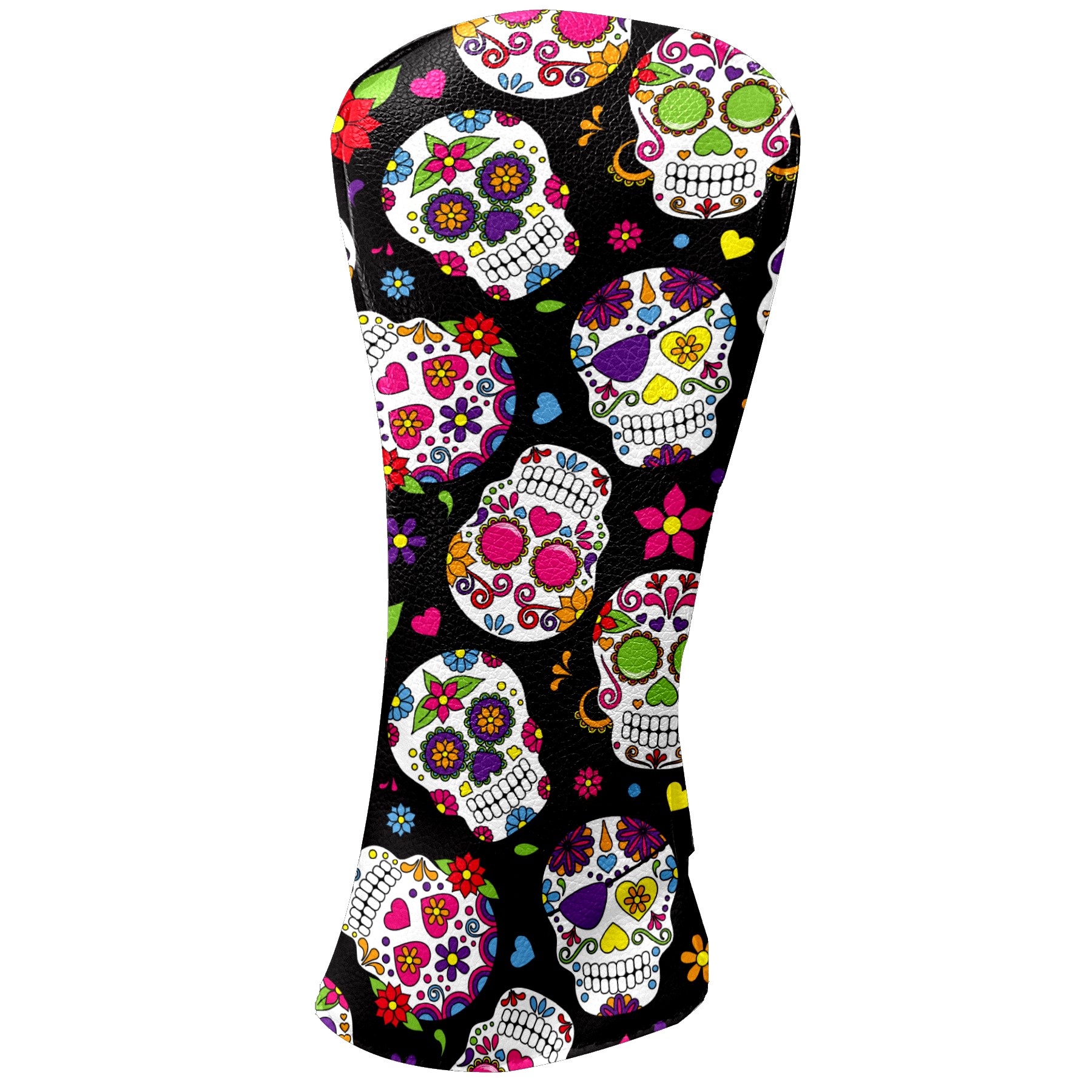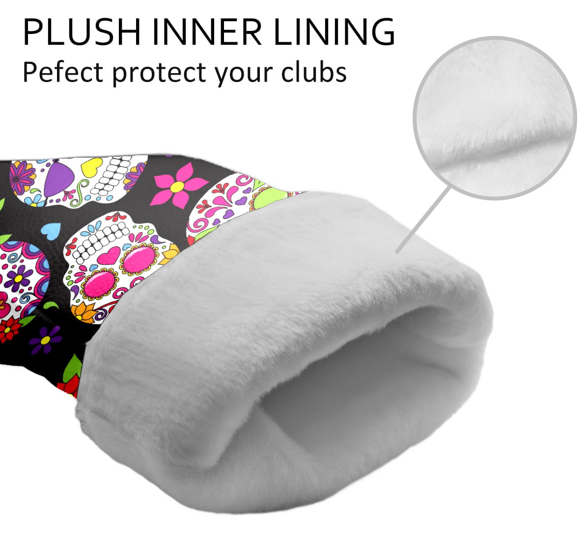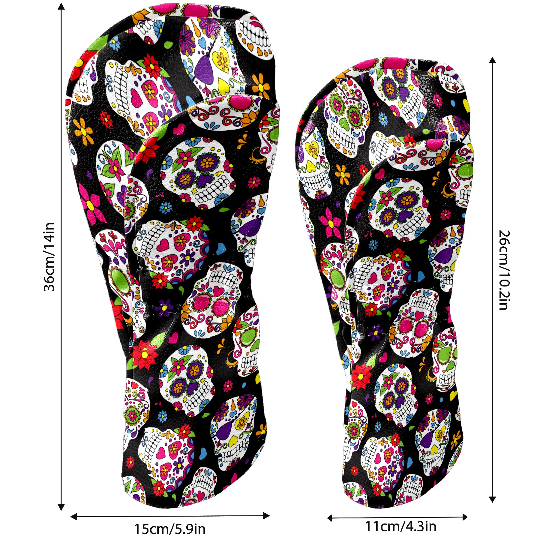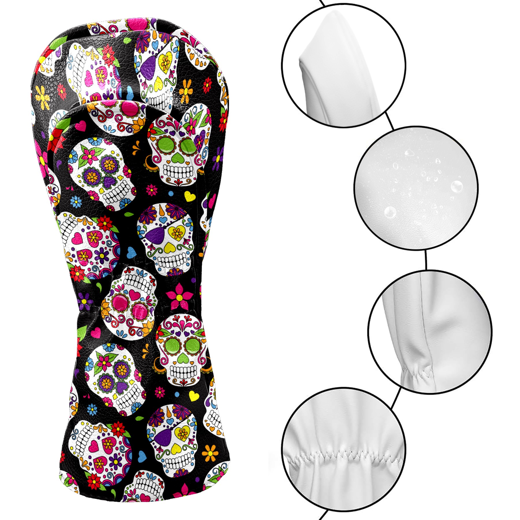 Black Golf Club Head Cover Golf Accessories Head Covers Set for Driver & Fairway Woods Colorful Sugar Skulls