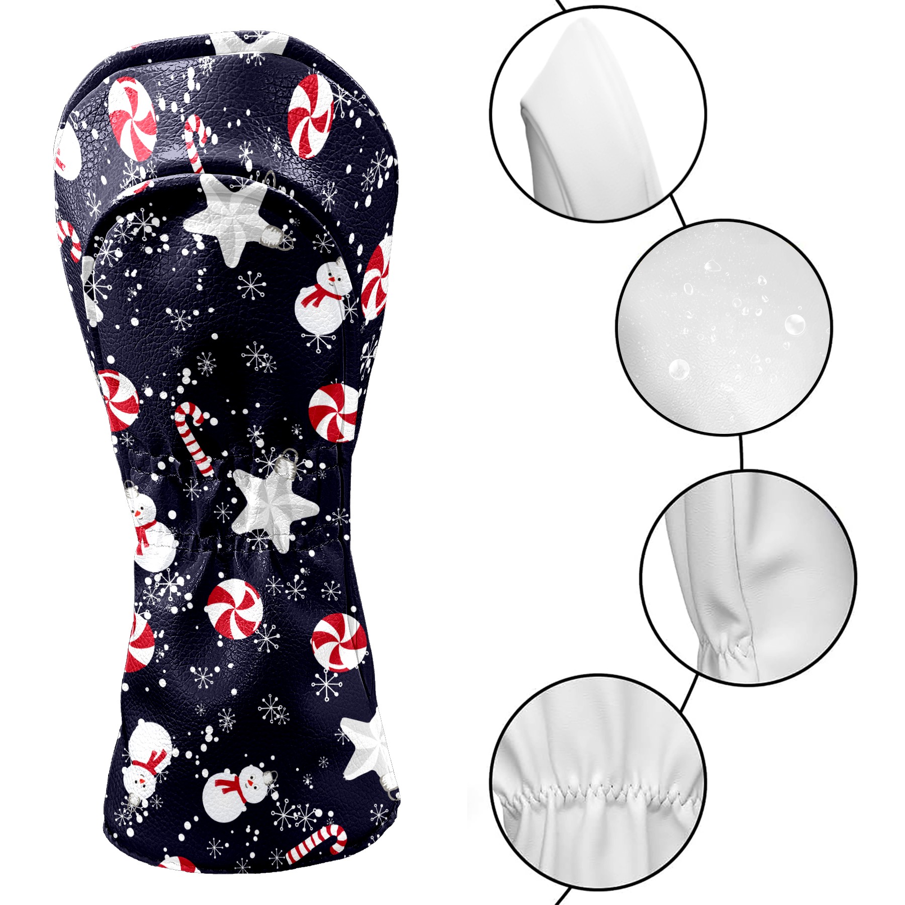 Black Golf Club Head Cover Golf Accessories Head Covers Set for Driver & Fairway Woods Christmas Snowflakes Snowman