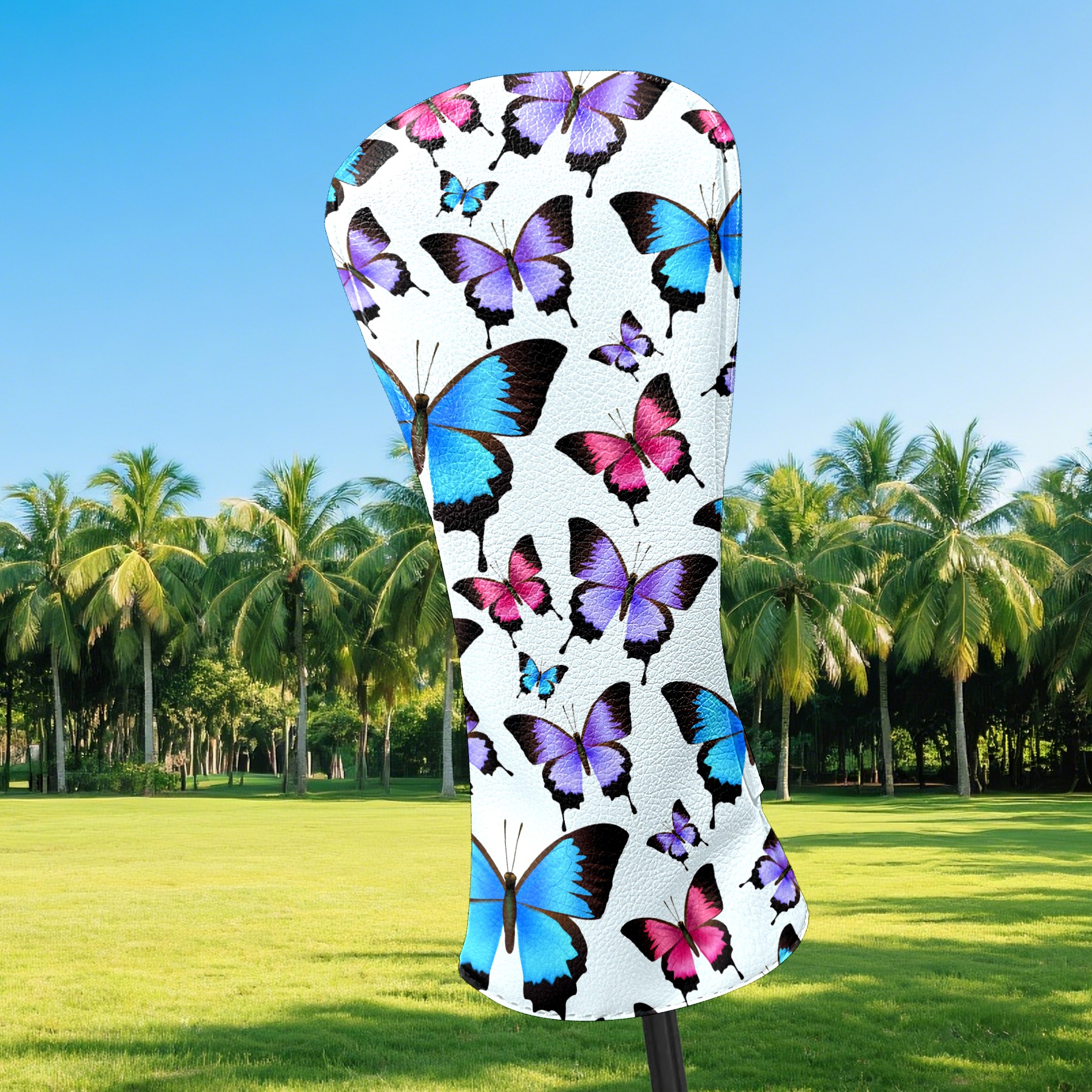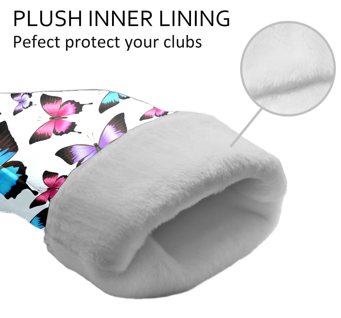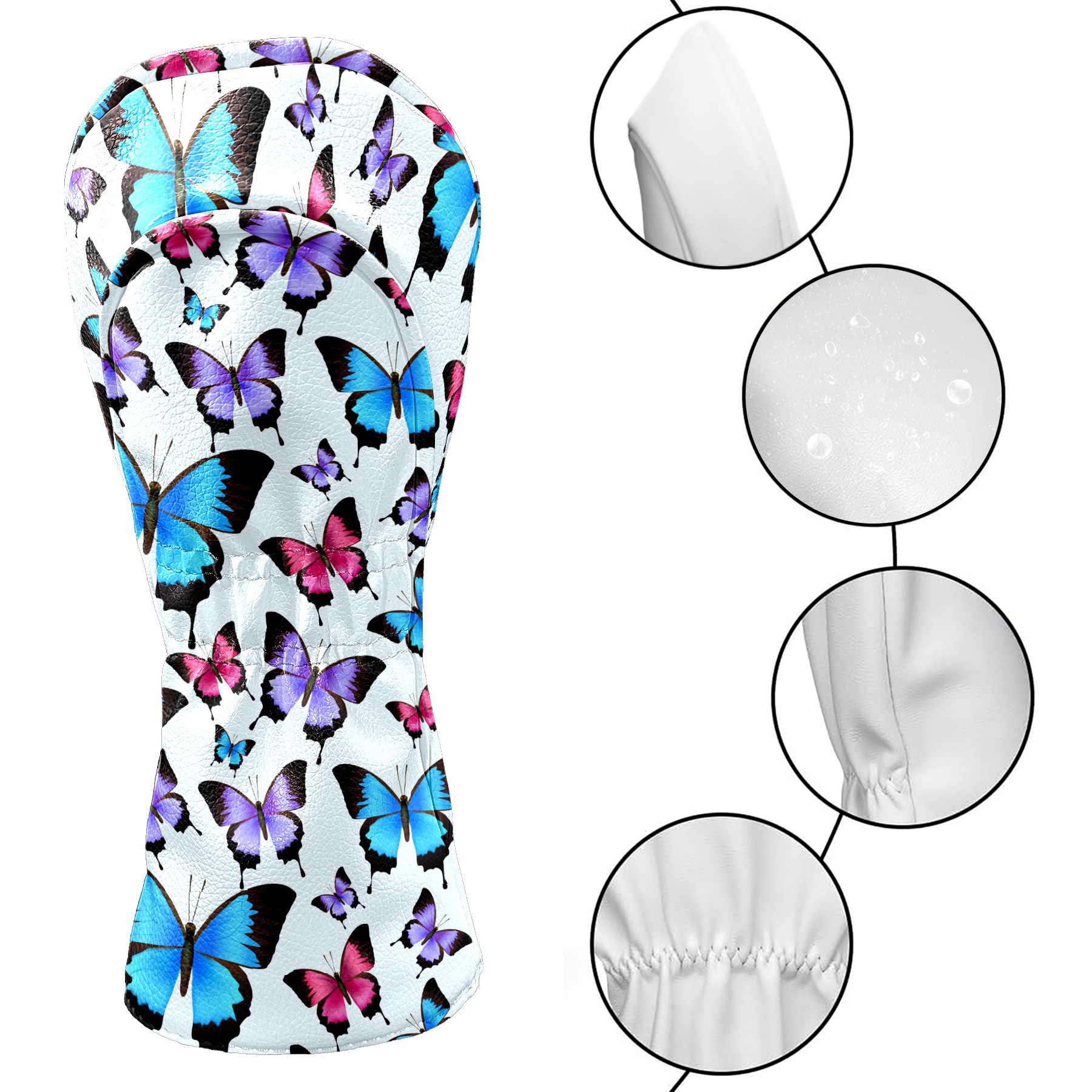 Black Golf Club Head Cover Golf Accessories Head Covers Set for Driver & Fairway Woods Colorful Butterflies