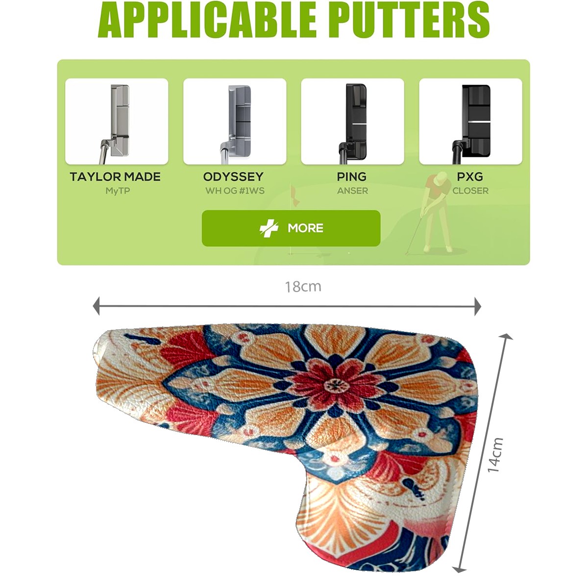 Golf Head Covers Blade Putter Cover, Protective Covers for Golf Clubs, Ideal Golf Accessories Gift for Men Women (Dark Blue Red Mandala)