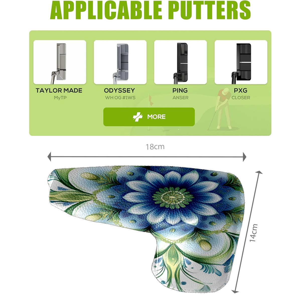 Golf Head Covers Blade Putter Cover, Protective Covers for Golf Clubs, Ideal Golf Accessories Gift for Men Women (Green Blue Mandala)