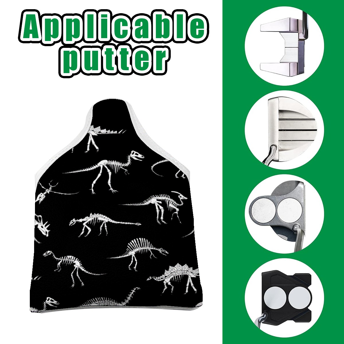 Black Golf Club Head Cover Golf Accessories Head Covers Set for Driver & Fairway Woods Black And White Dinosaur Skeleton