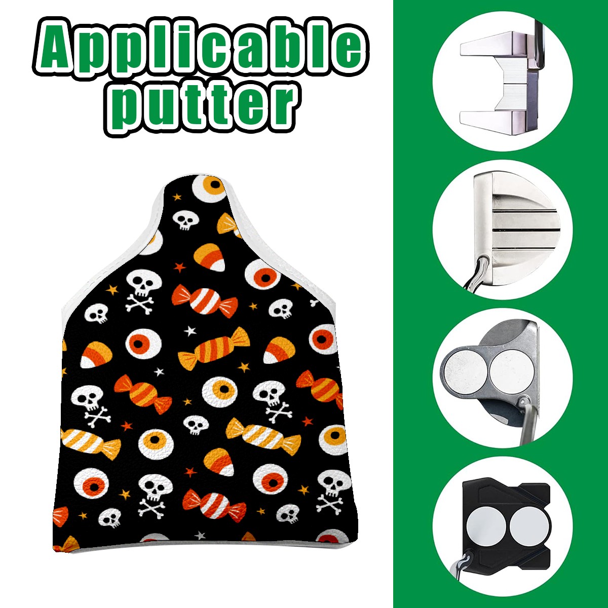 Black Golf Club Head Cover Golf Accessories Head Covers Set for Driver & Fairway Woods Halloween Funny Eyes Skull Candies Pattern