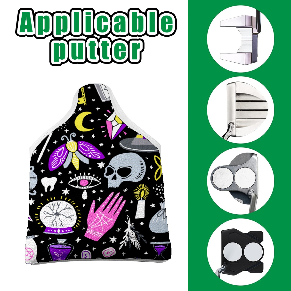 Black Golf Club Head Cover Golf Accessories Head Covers Set for Driver & Fairway Woods Halloween Bat Skull Witch