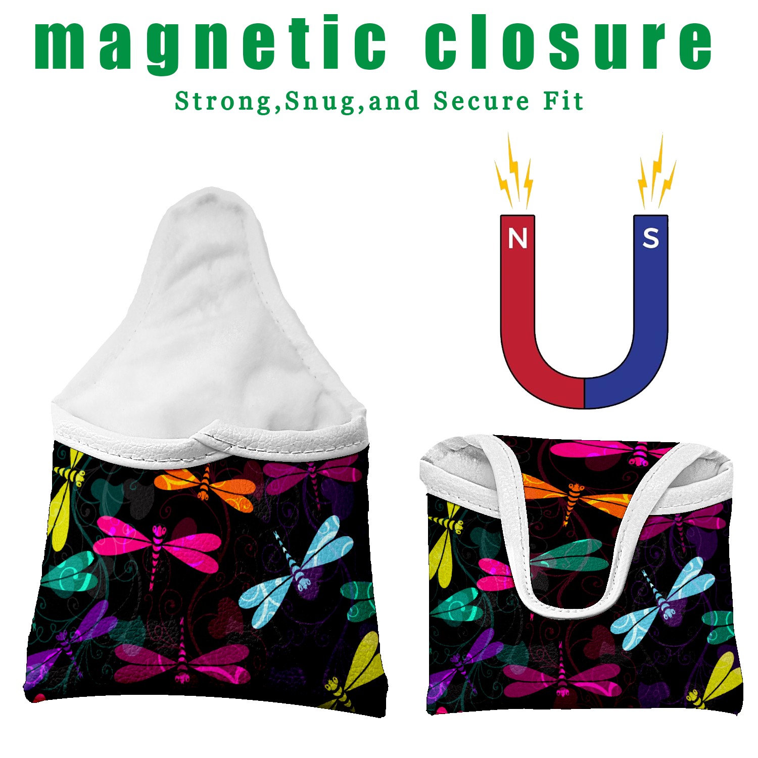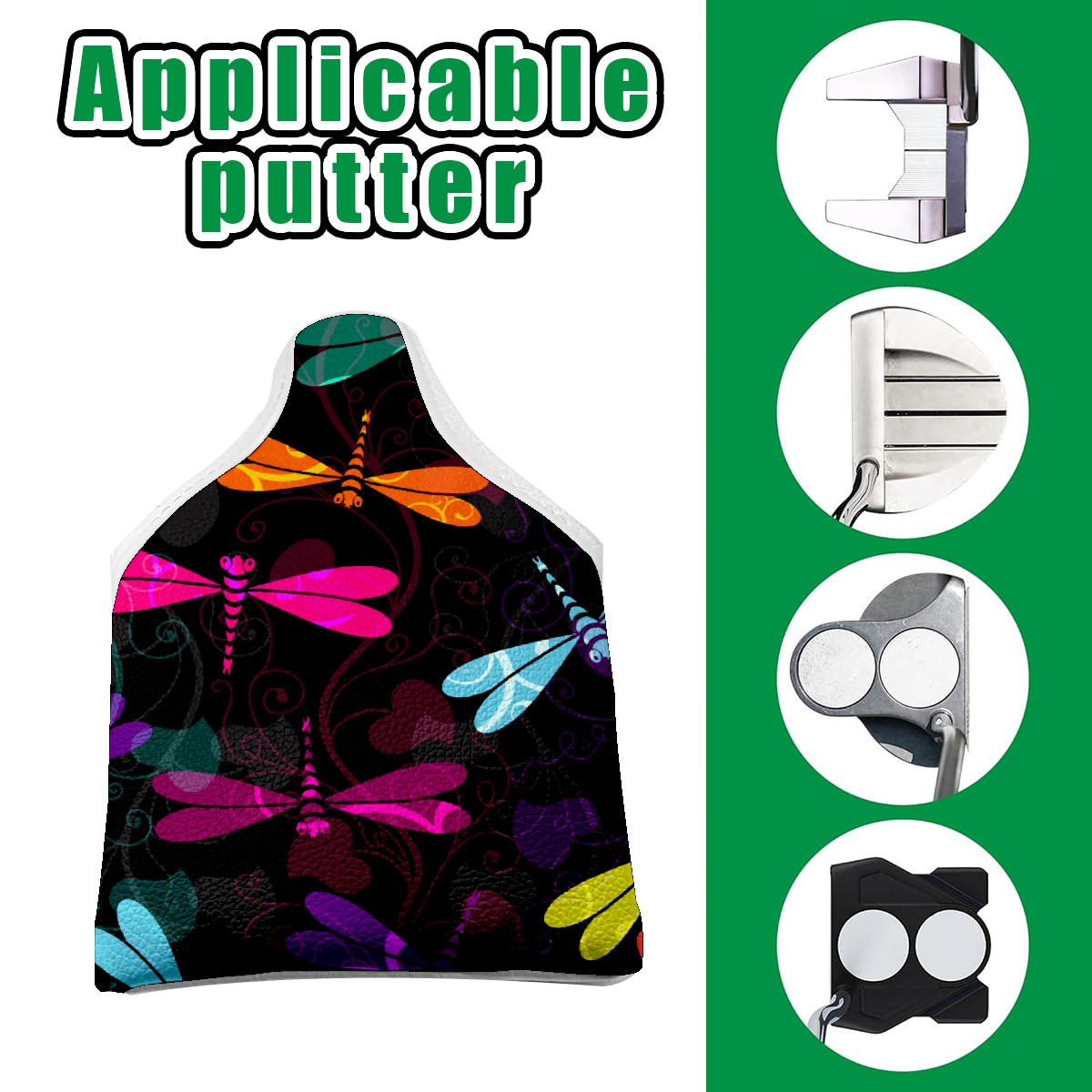 Black Golf Club Head Cover Golf Accessories Head Covers Set for Driver & Fairway Woods Colorful Insect Dragonfly Pattern