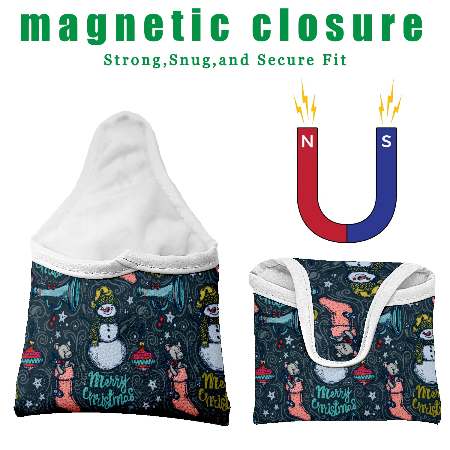Black Golf Club Head Cover Golf Accessories Head Covers Set for Driver & Fairway Woods Hand Drawn Christmas Snowman