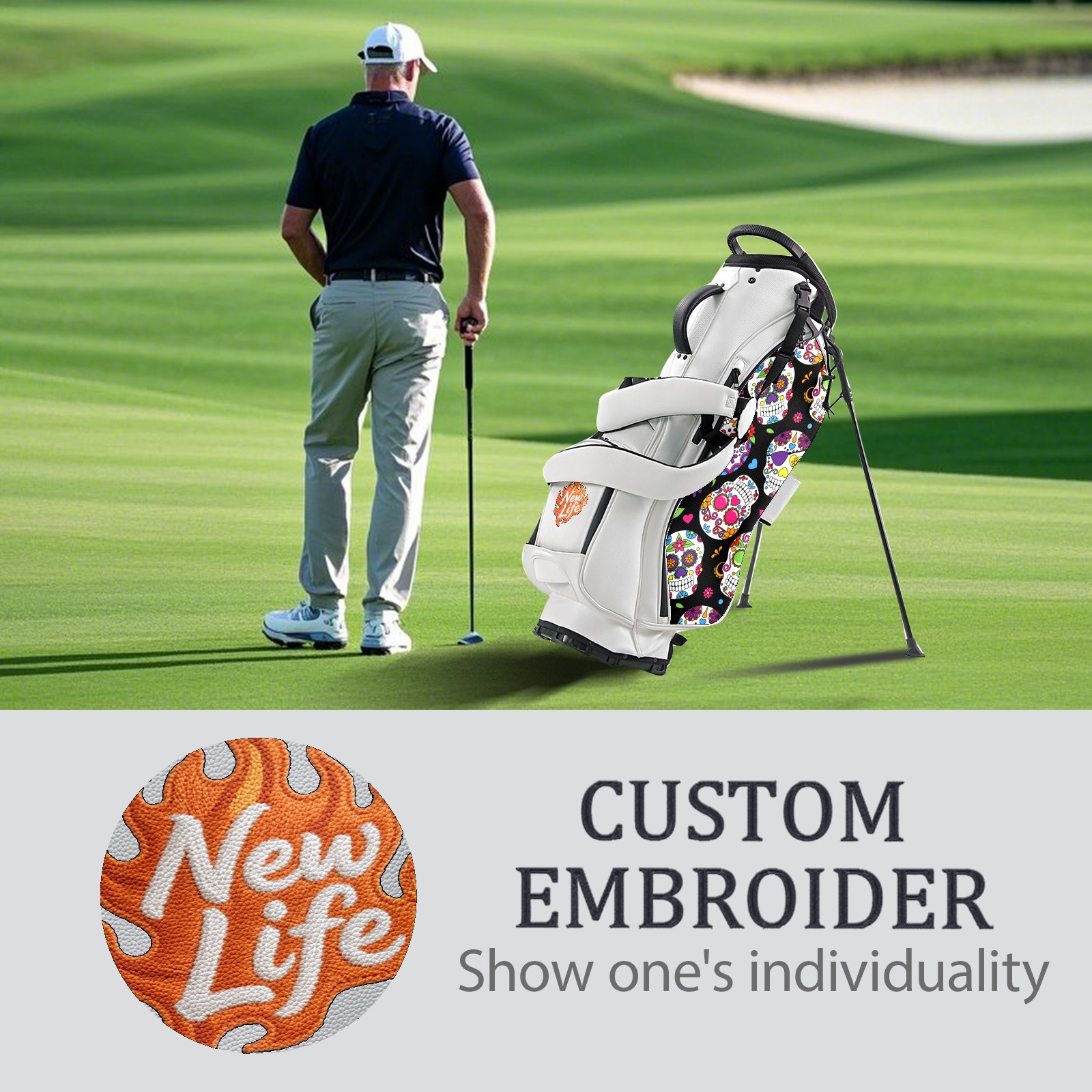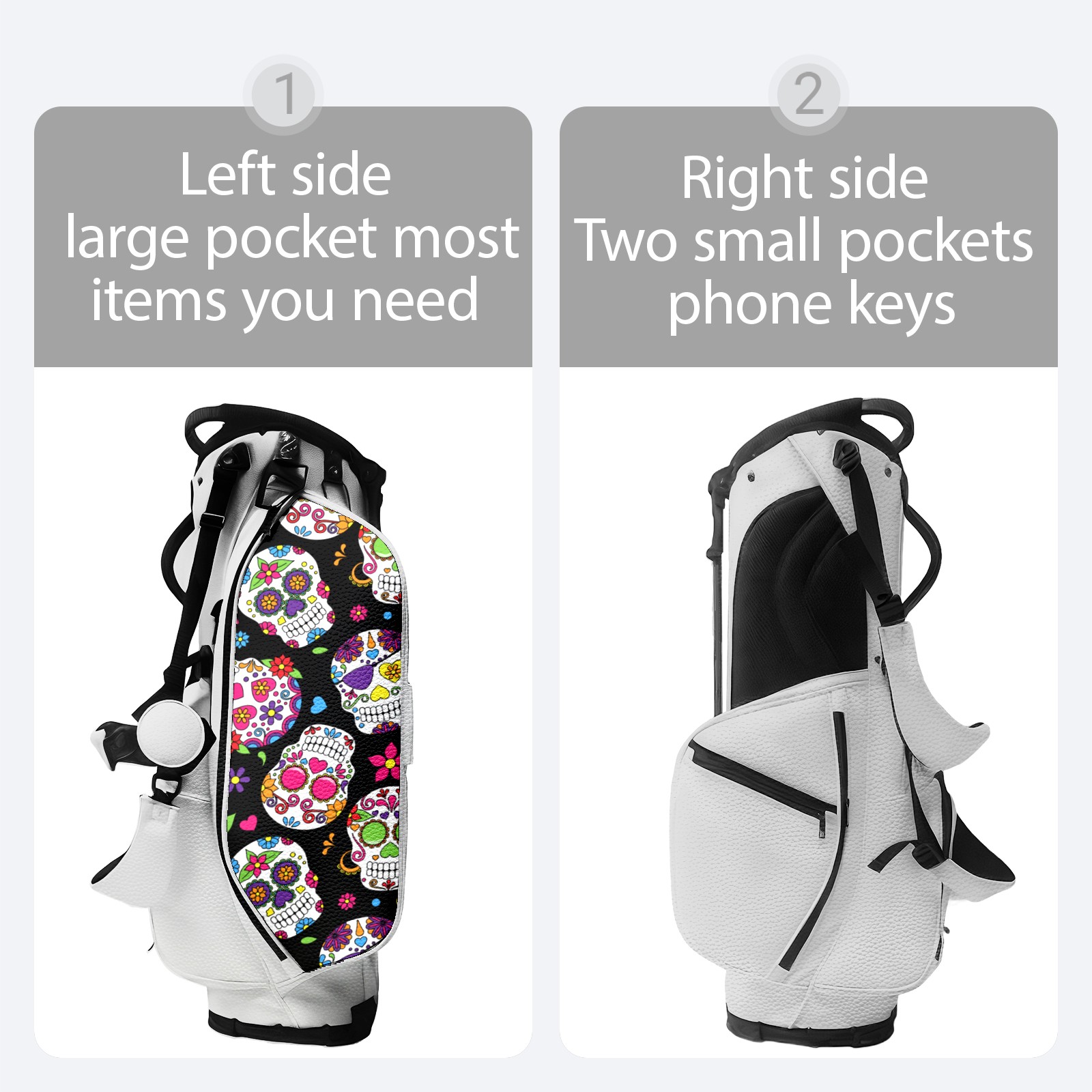 Golf Stand Bag - 14/5 Way Top Dividers, 8 Pockets, Waterproof for Men & Women PU Leather, Customizable , Black/White,golf bags for menMexican Skull