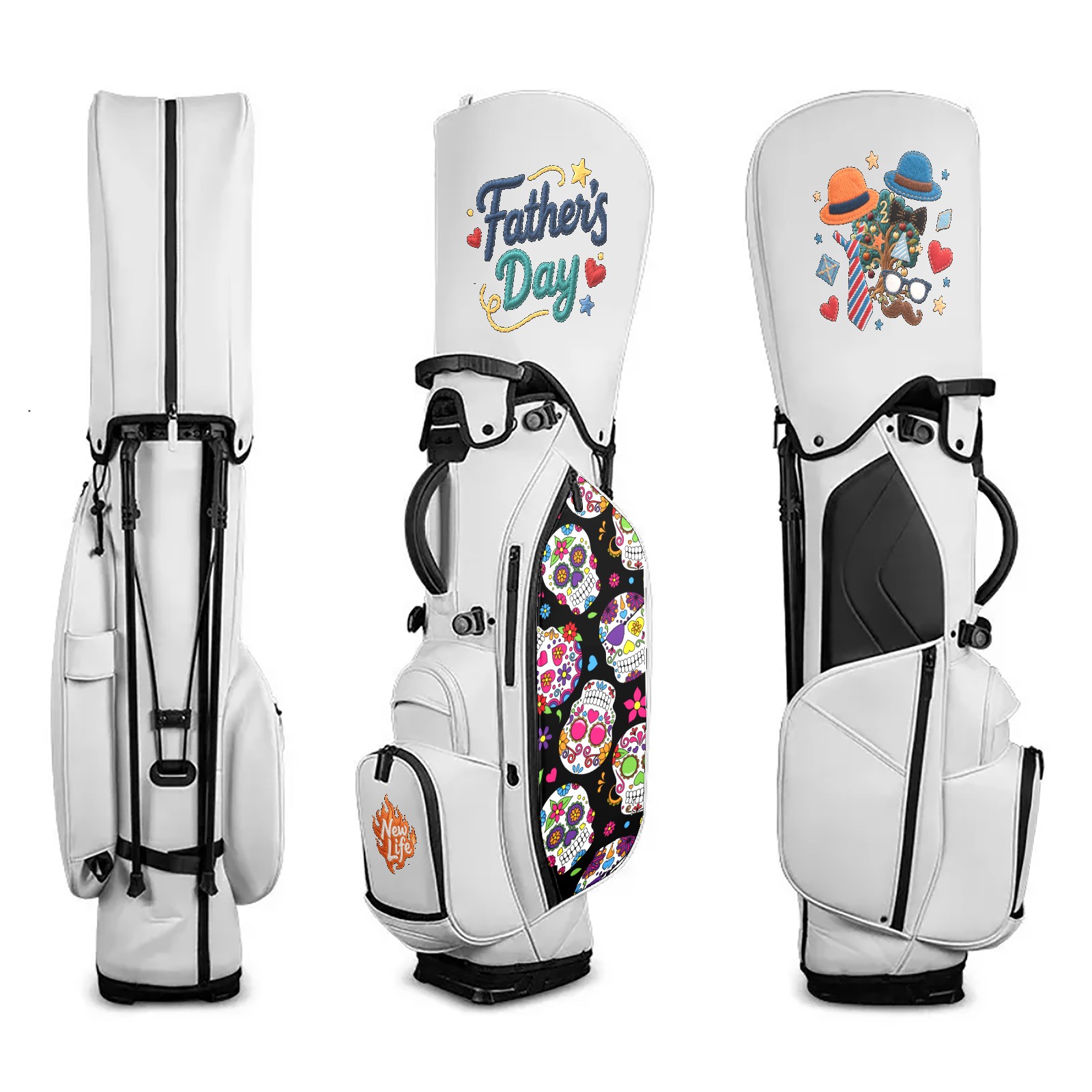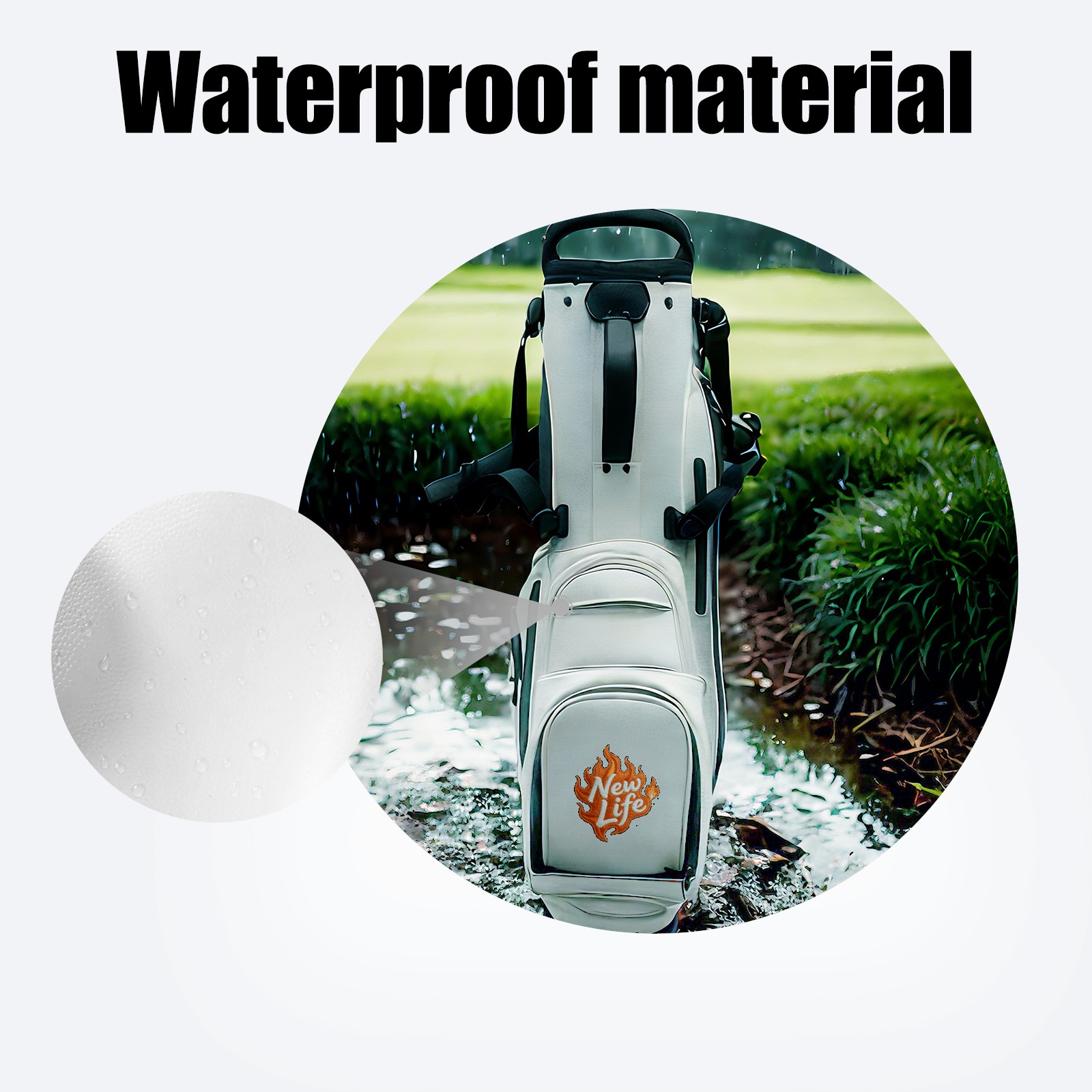 <p>The Golf Stand Bag, designed specifically for golf enthusiasts, offers a choice of 5 - way and 14 - way top dividers. Its 5/14 - compartment design with independent full - size club compartments safeguards clubs from collisions. Equipped with a rain cover, waterproof zippered pockets (tested to resist moderate to heavy rain), and a high - performance cooler pouch that can keep drinks cold for hours, it ensures a convenient golfing experience. The bag features thickened, breathable neoprene shoulder straps and an adjustable chest buckle, reducing shoulder fatigue by 35% compared to regular bags, and its automatic aluminum alloy stand provides stable support on various terrains. Crafted from top - tier, water - resistant litchi - grain PU leather, with double - stitched edges, reliable zippers tested for over 15,000 cycles, and anti - abrasion bottom studs, it guarantees durability. You can personalize it with embroidery on the front pocket and rain cover side (15*15cm area), and it comes in classic black and white, with a matte finish and litchi - grain texture that combines business and leisure styles. Measuring 130 cm in height, 37 cm in width, and 31 cm in depth (including rain cover) and 90 cm x 31 cm x 37 cm (excluding rain cover), it strikes a balance between storage and portability, capable of holding 14 standard - sized clubs and other essentials, and it also includes a dust cover. It's truly the perfect choice for golfers.<br></p>